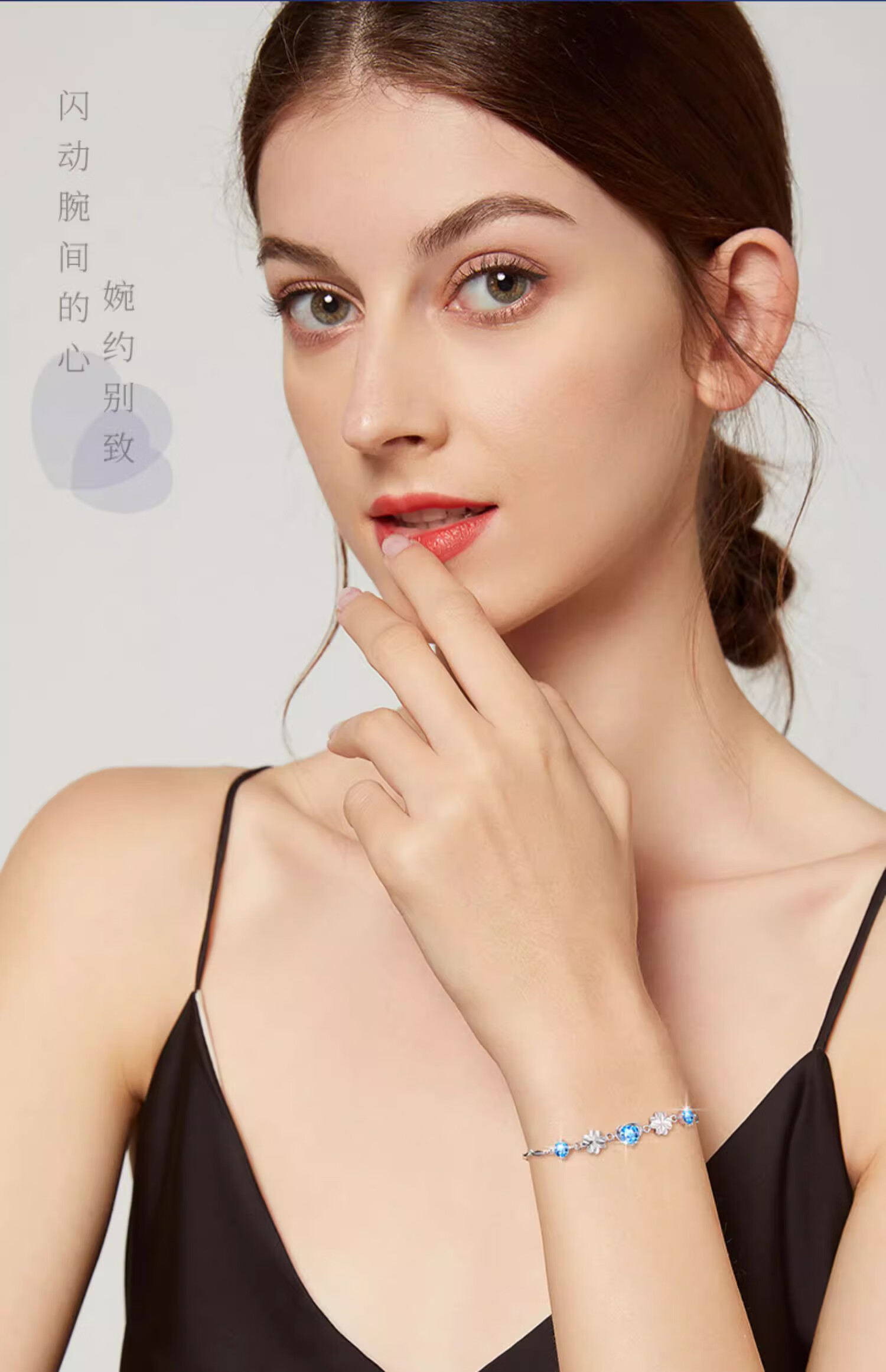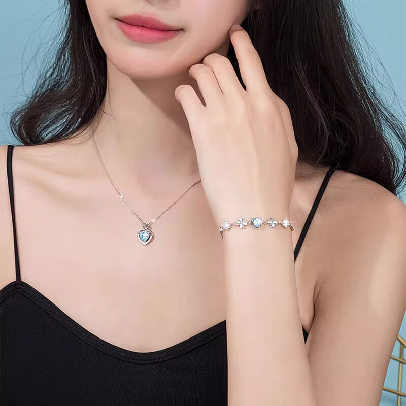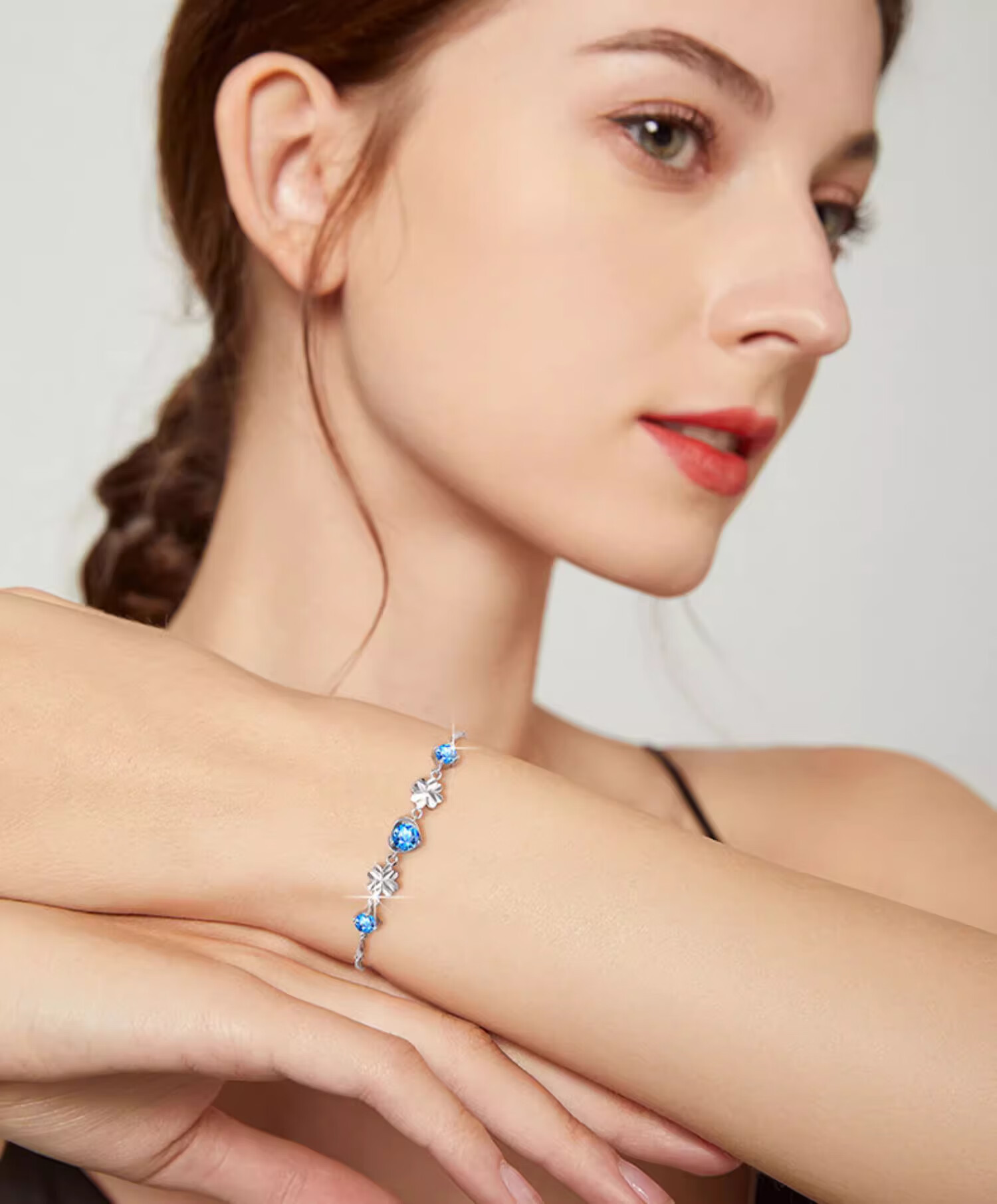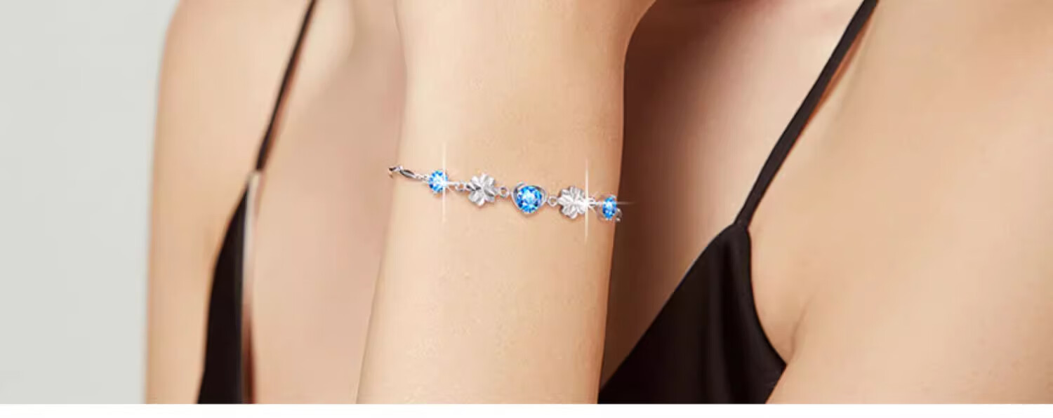 MZMZ platinum bracelet women's four-leaf clover pt950 platinum necklace set as birthday and anniversary gift for girlfriend and wife, light luxury model, four-leaf clover bracelet, white diamond