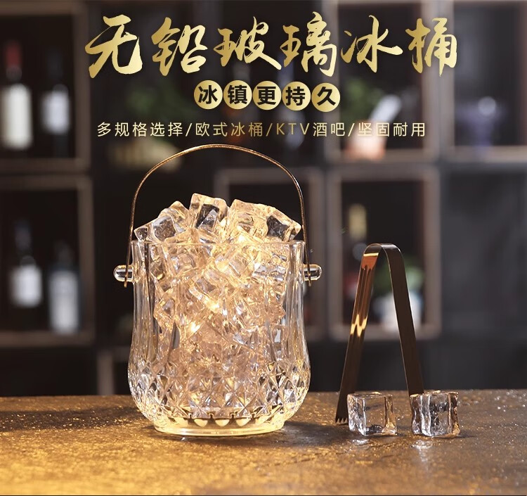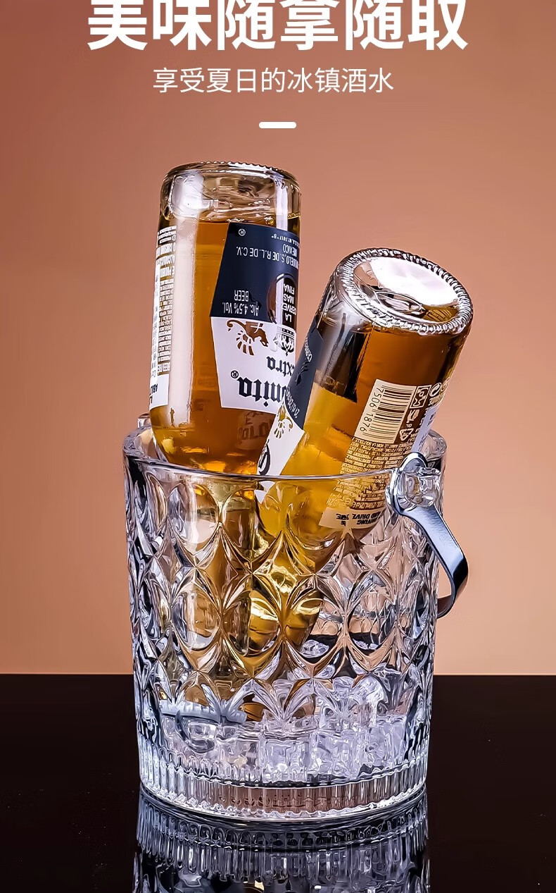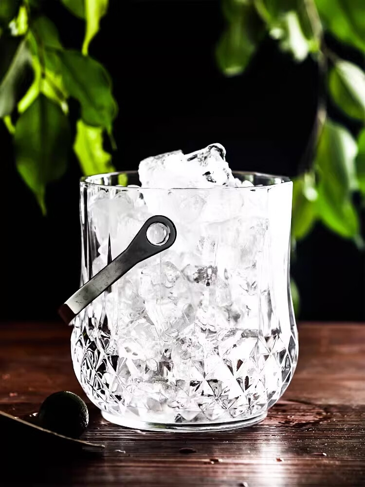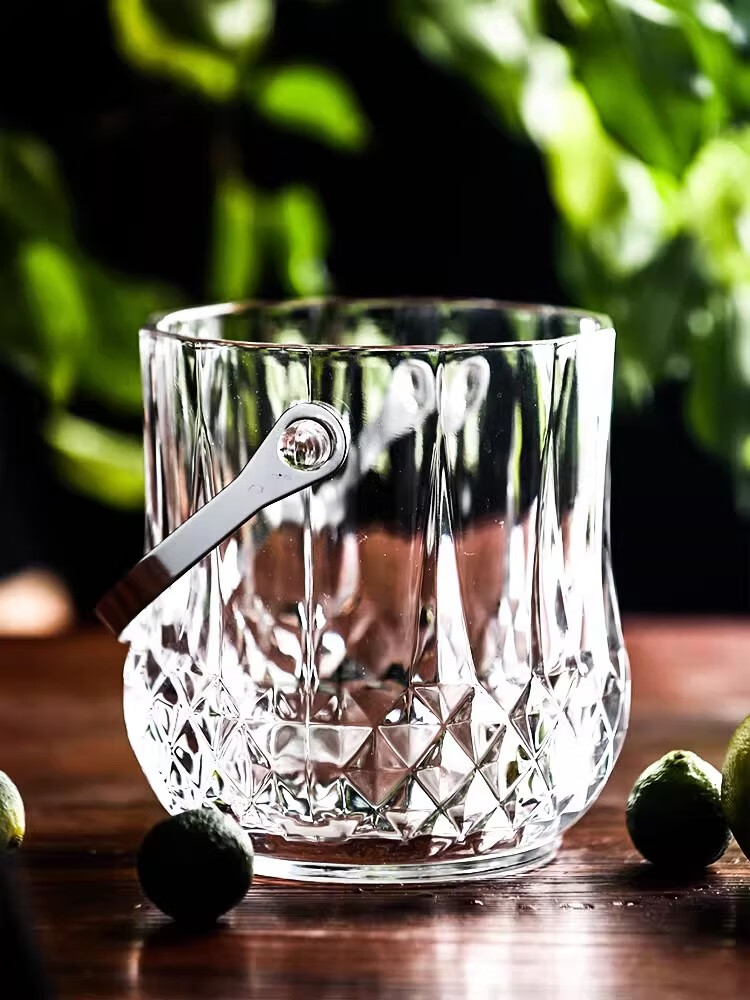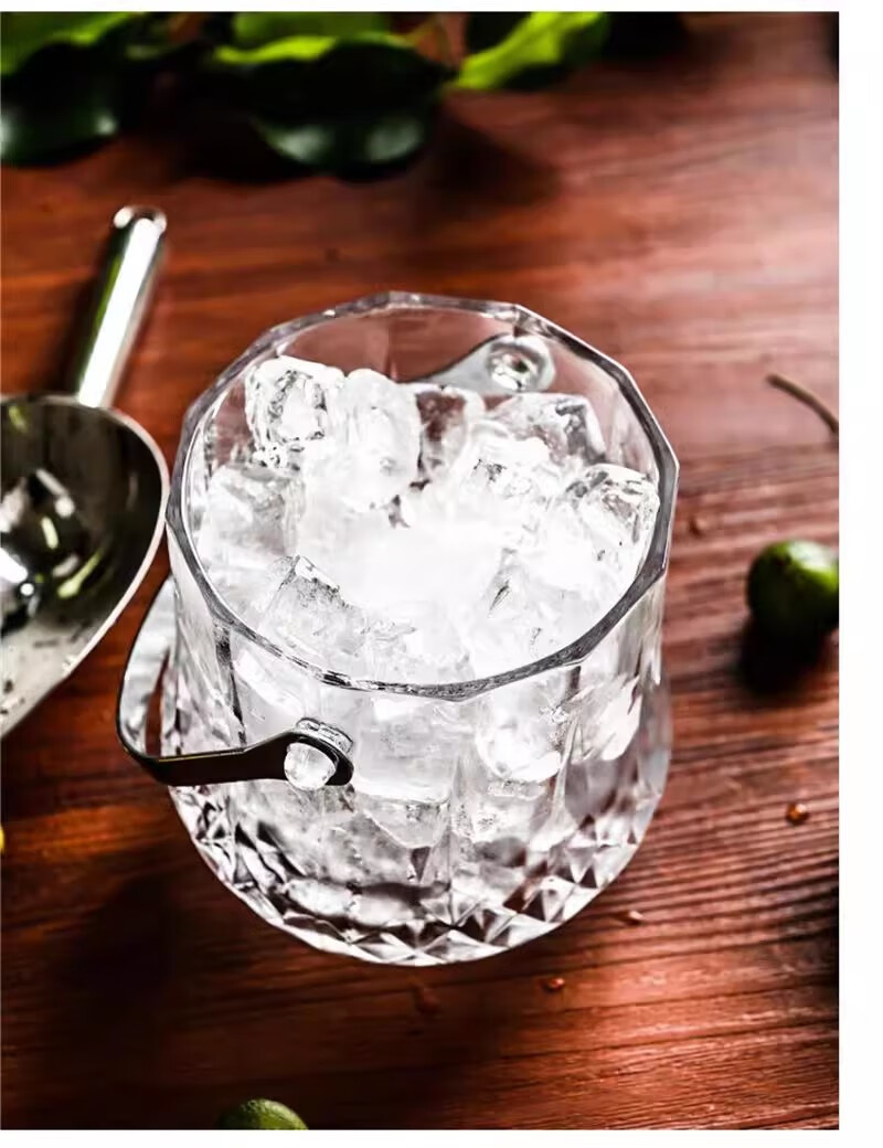 Deli crystal glass portable champagne ice bucket bar KTV ice cube diamond bucket outdoor camping drink fruit tea ice bucket diamond glass ice bucket