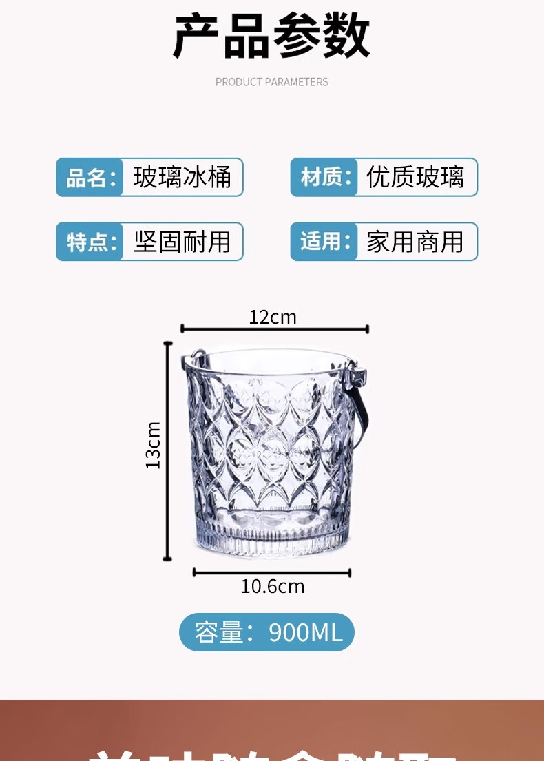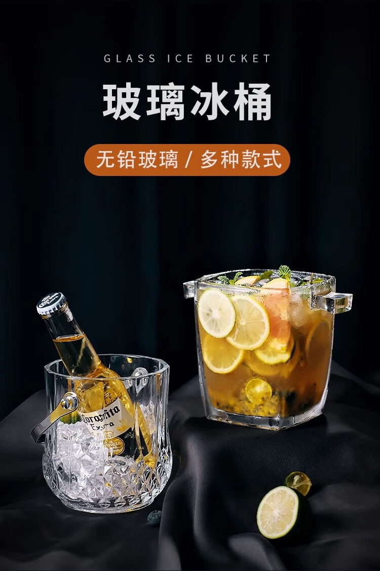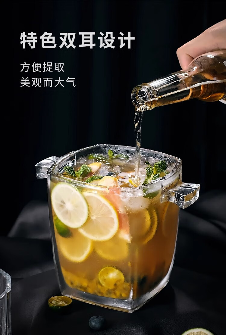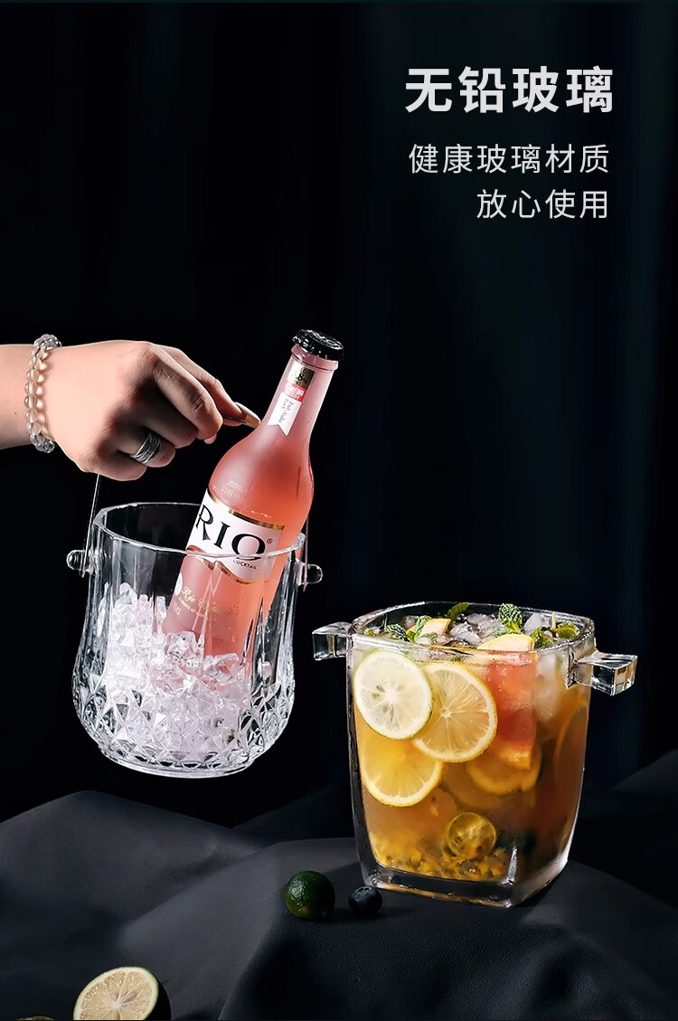 Deli crystal glass portable champagne ice bucket bar KTV ice cube diamond bucket outdoor camping drink fruit tea ice bucket diamond glass ice bucket