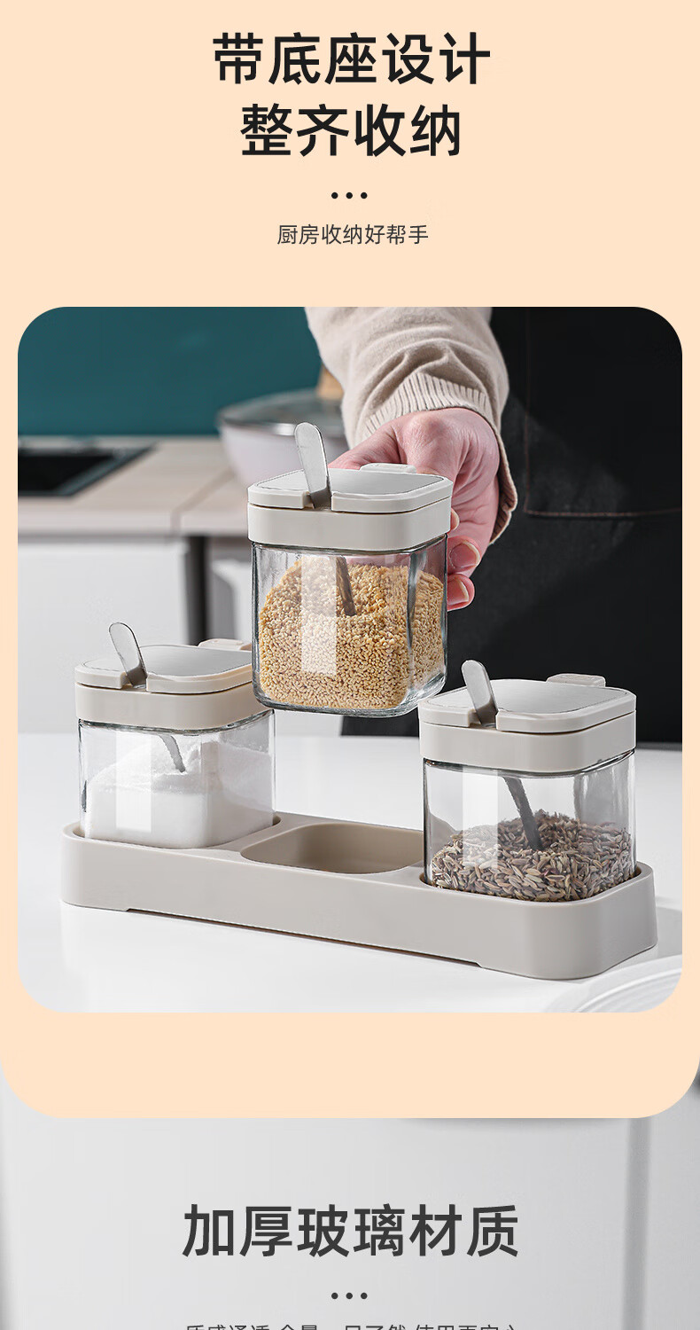 Enshousu new seasoning box set household kitchen seasoning bottle storage box with lid seasoning bottle sealed seasoning jar seasoning box milk white plastic thin section one seasoning jar