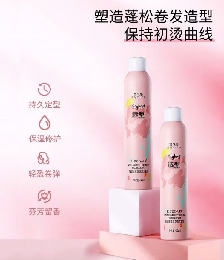 Luodaishi foam hair wax for curly hair, moisturizing, natural and fluffy hair gel, mousse, wool curling bubble elastin, hair salon, unisex, 2 bottles, second bottle half price, light and fluffy
