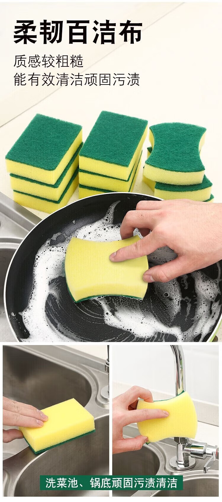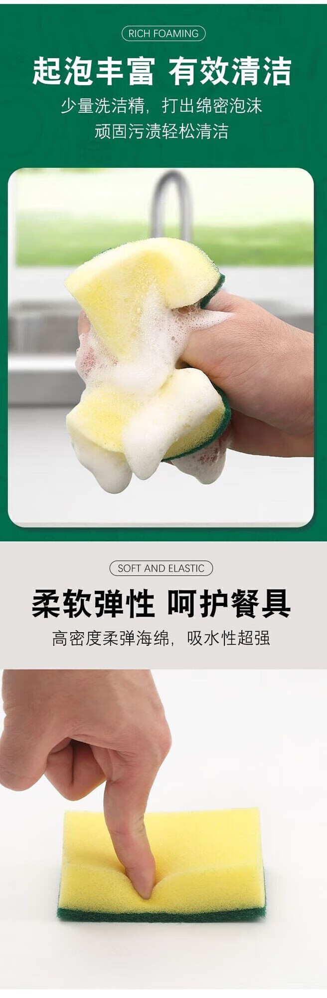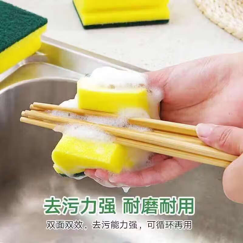 Dishwashing sponge block, scouring pad, kitchen cleaning artifact, double-sided durable thickened dishcloth, magic sponge wipe for pots, right-angle sponge wipe (3 pieces)