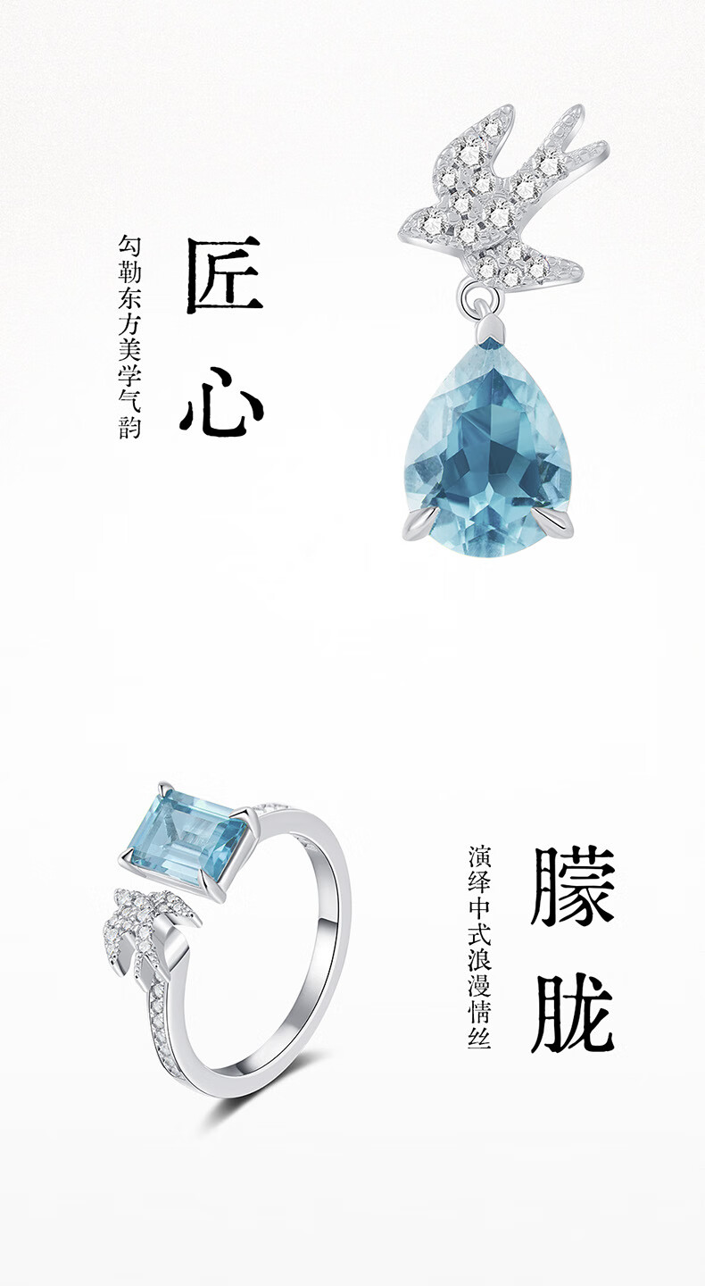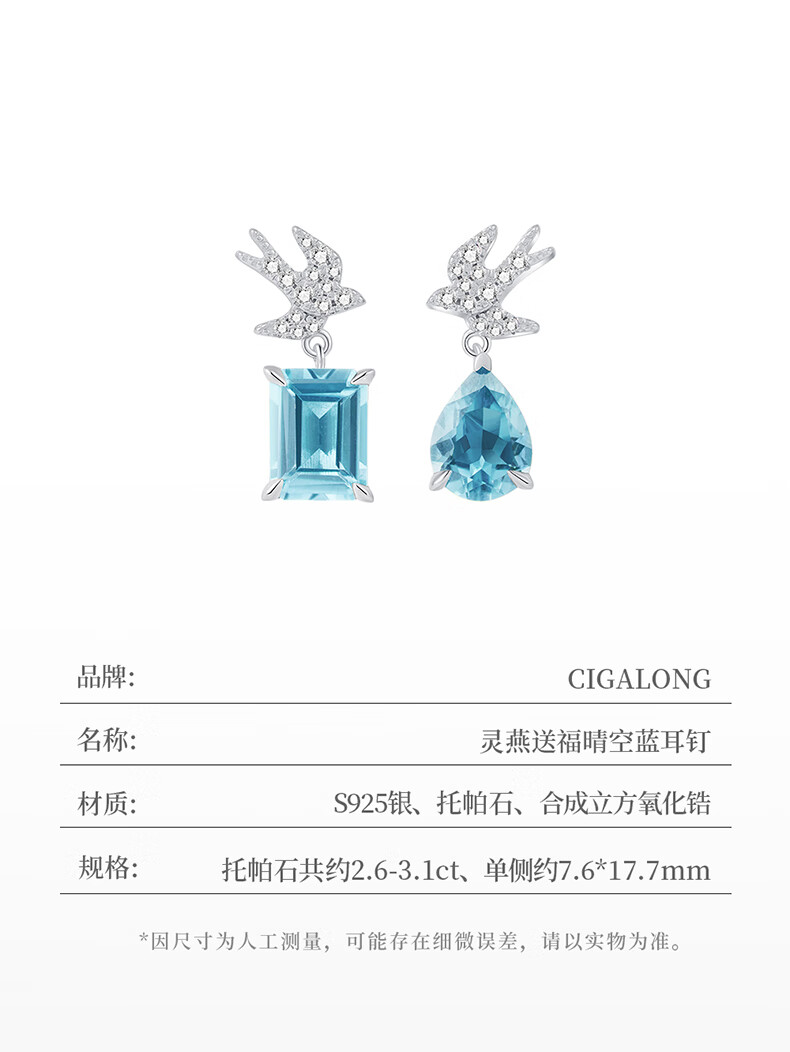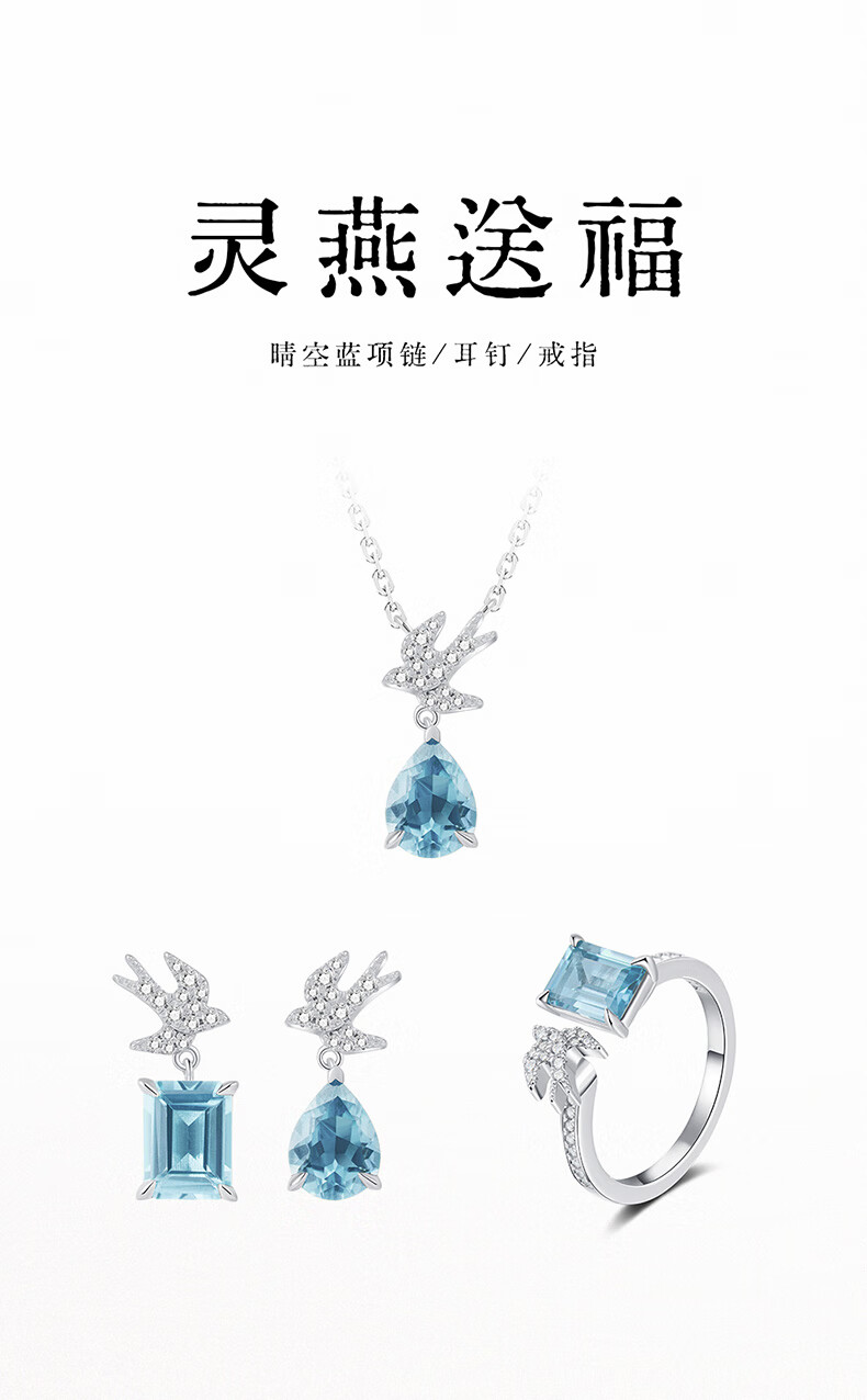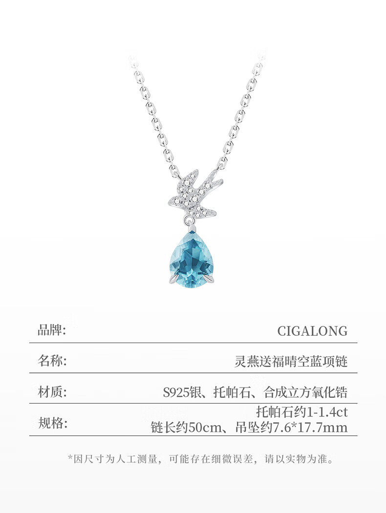 CIGA LONG Lingyan's blessing clear sky blue topaz necklace Limanyuan S925 silver new Chinese style jewelry Lingyan's blessing clear sky blue necklace