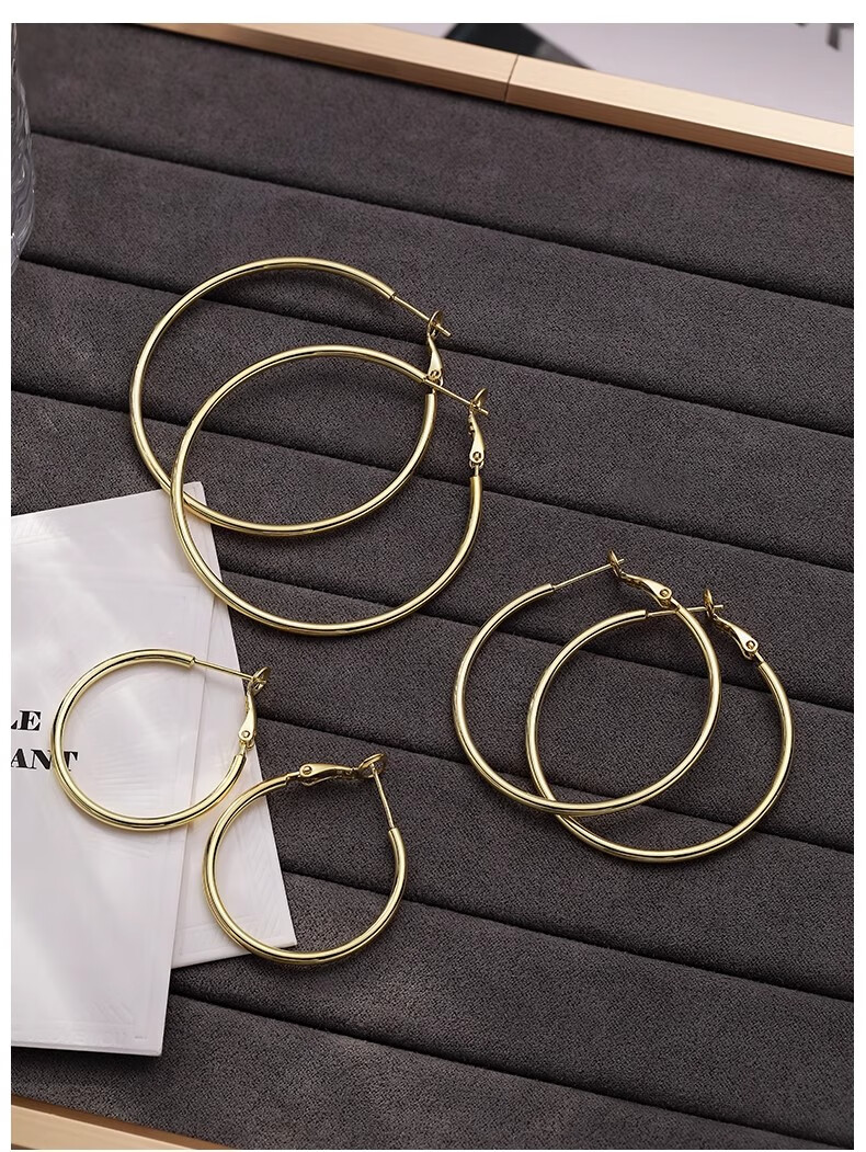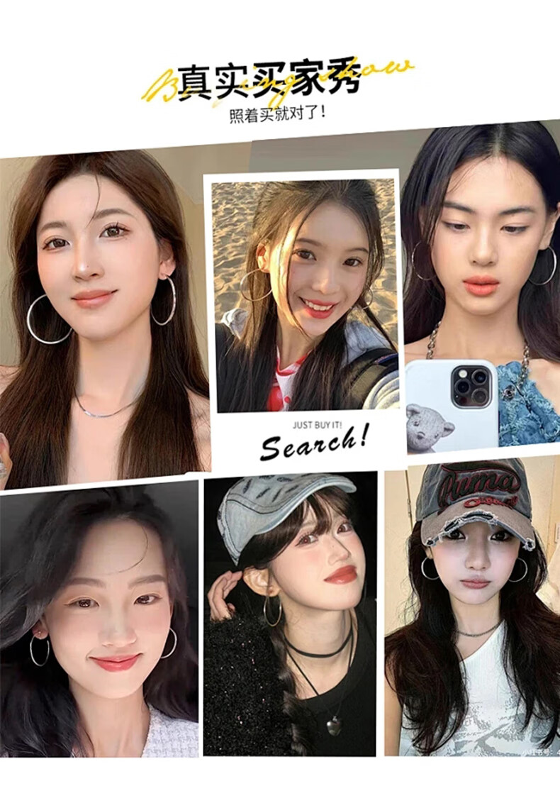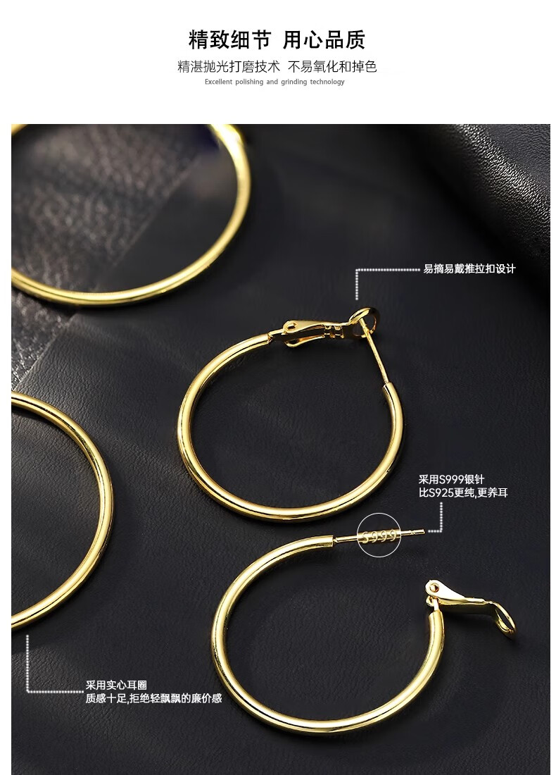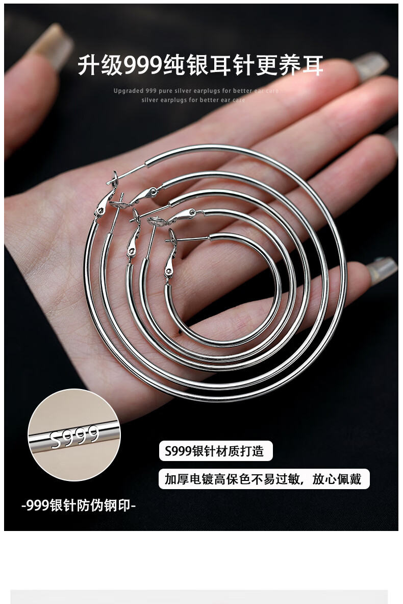 Rui Hongxiang 999 sterling silver ear needles Zhao Liying Qiao Yan same style large ear hoops women's hoop earrings plain hoop earrings 2025 hot style Zhao Liying same style ear rings 4CM silver-999 ear needles