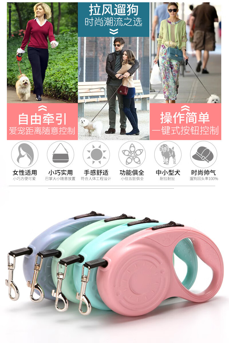 Pet retractable automatic traction rope for dogs when going out, portable automatic traction device for running, automatic retractable rope dog traction device, light purple 5 meters