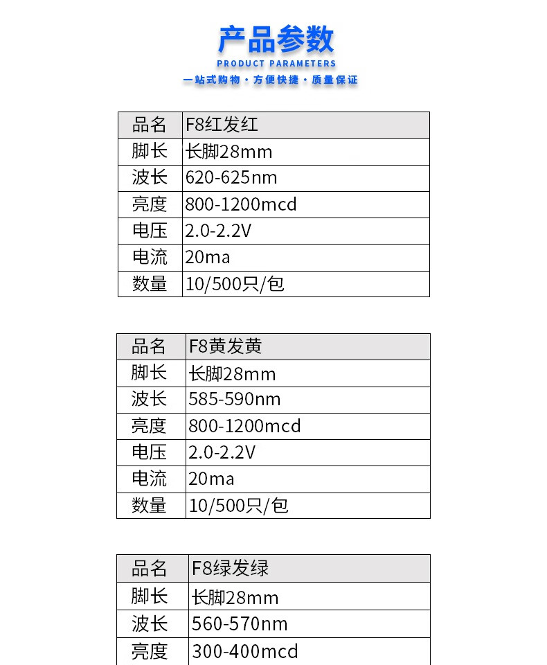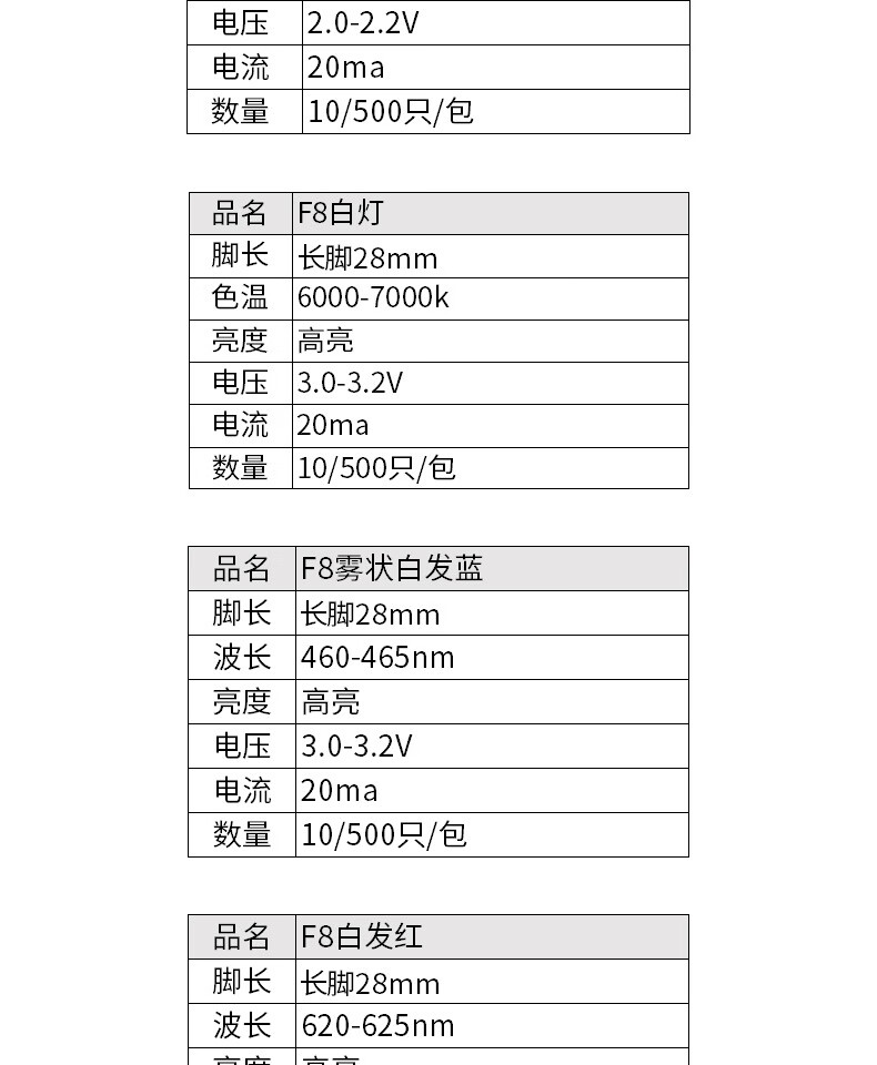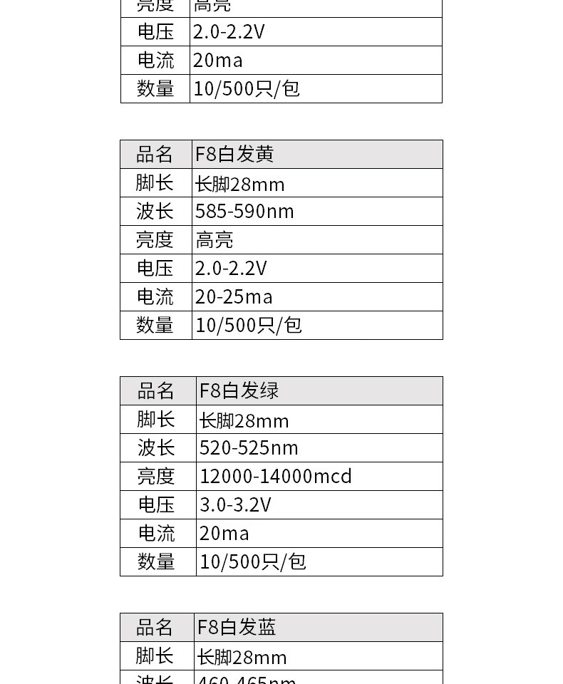 8MM light-emitting diode, foggy white hair, white, red, green, blue and yellow, high brightness LED lamp beads, red hair, red light, F8 direct plug, white hair, emerald green, 0.25W (10 pieces)