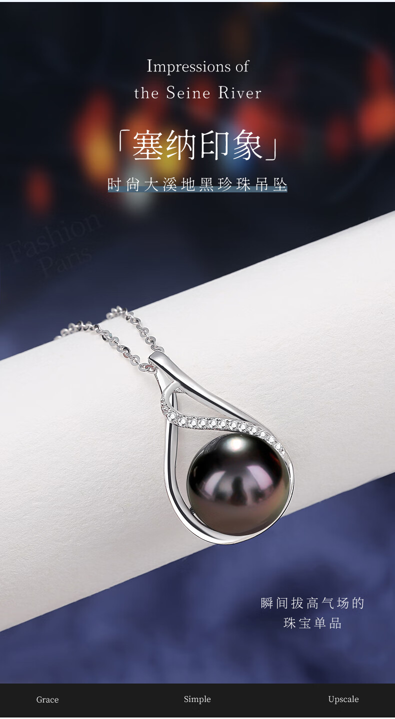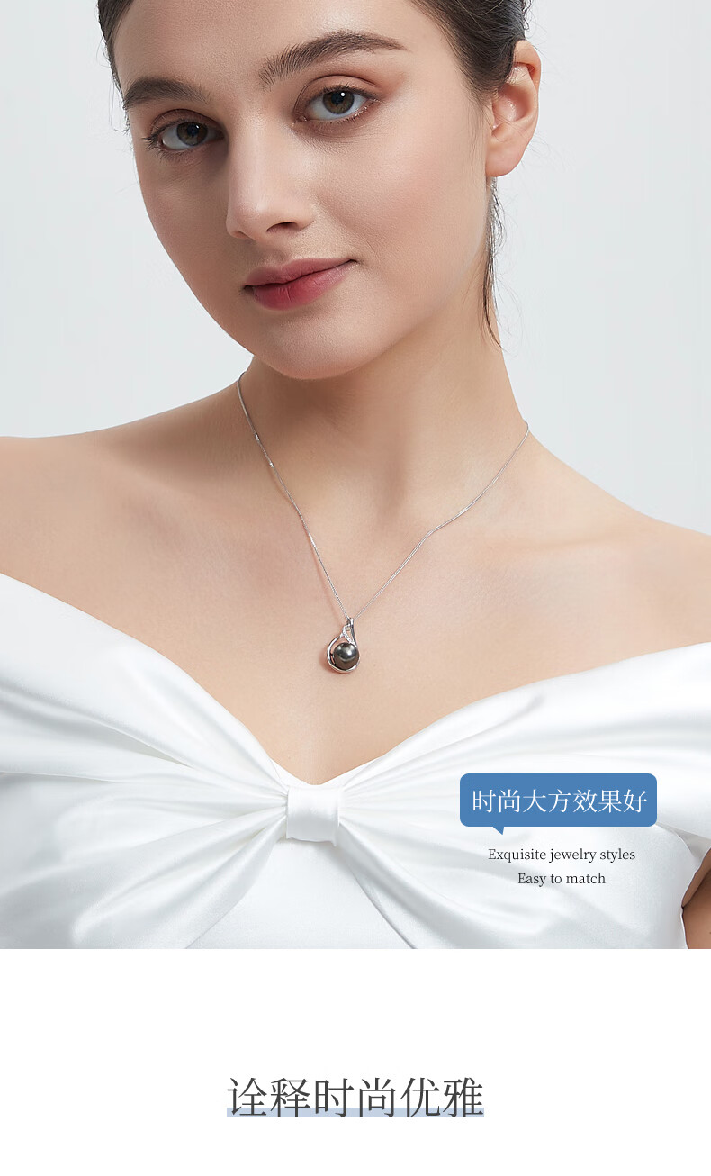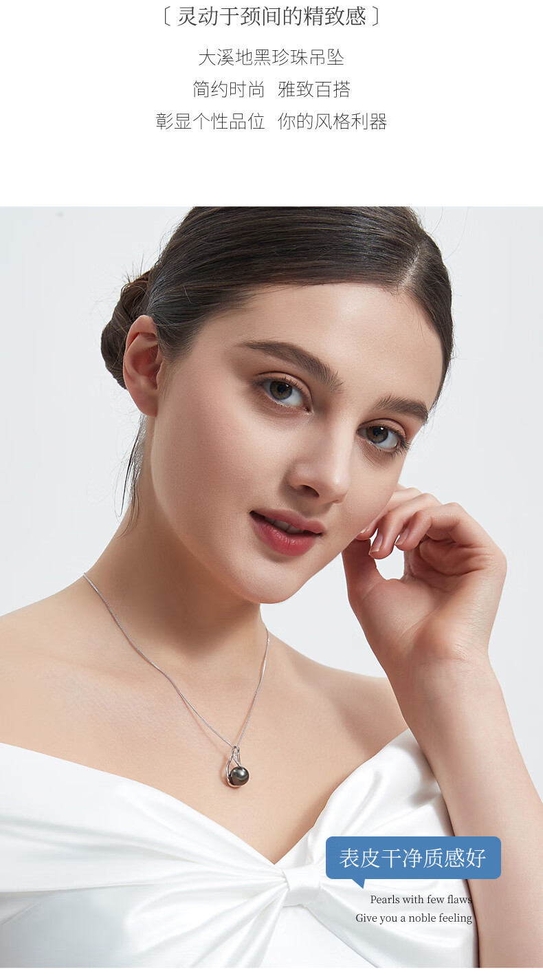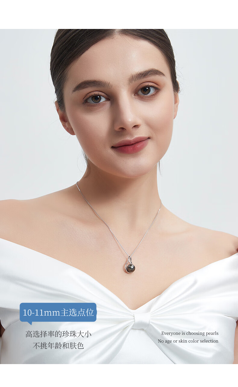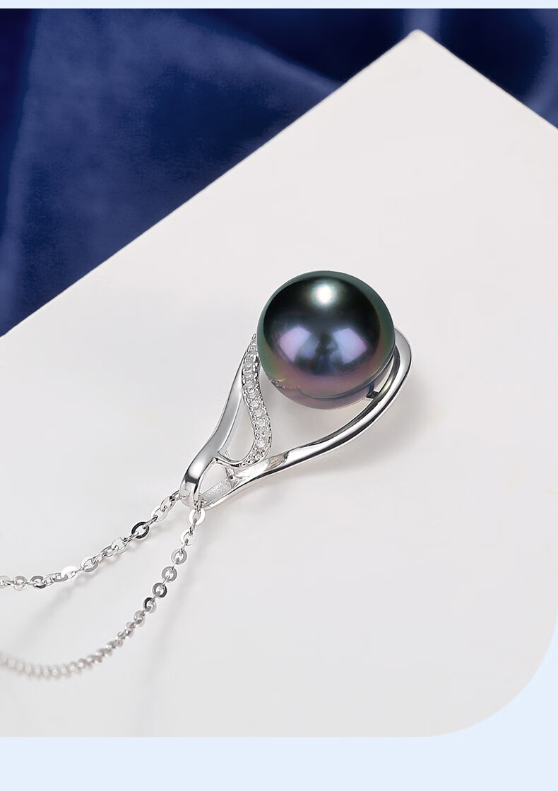 Duyi Tahitian Black Pearl Pendant, Seine River, Elegant Black Saltwater Pearl Necklace, Single Women, Black Series, Large Beads 10-11mm, Almost Flawless