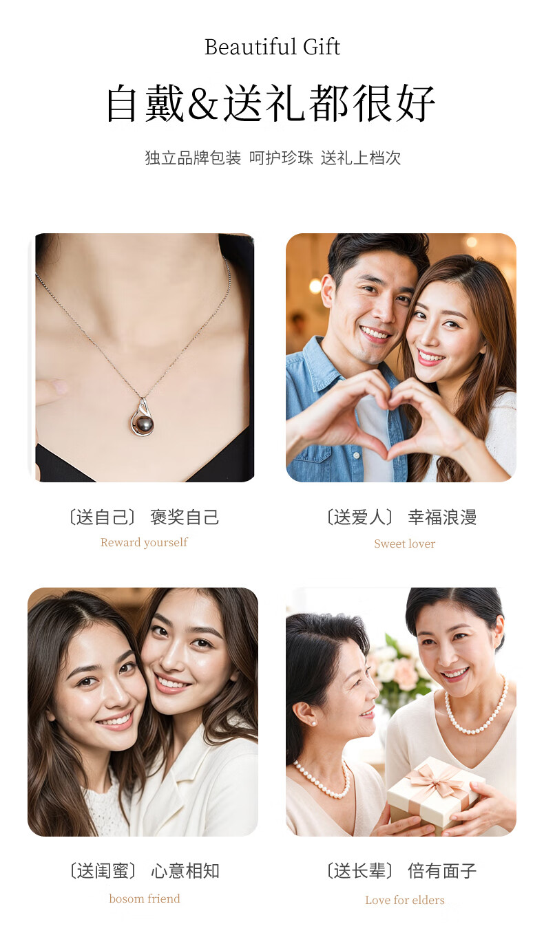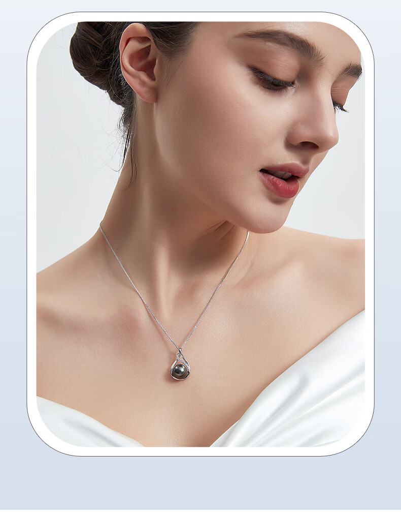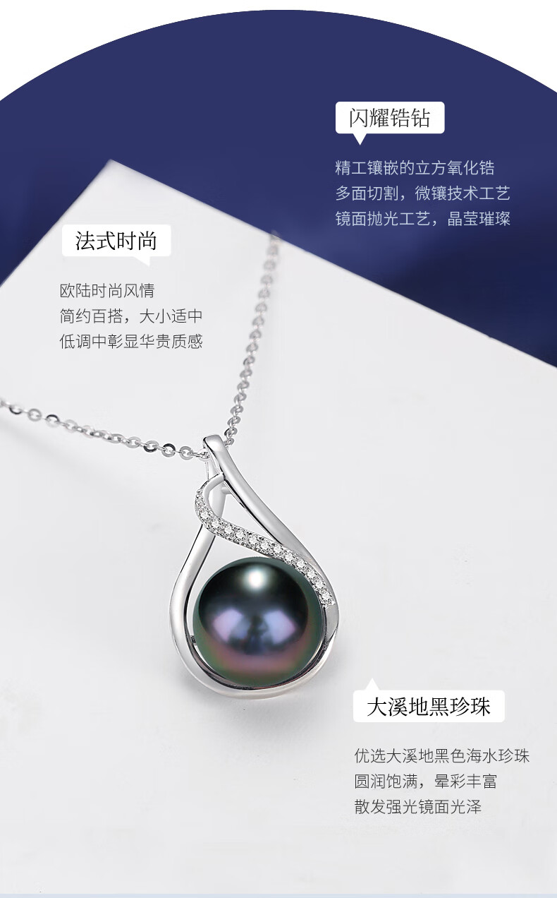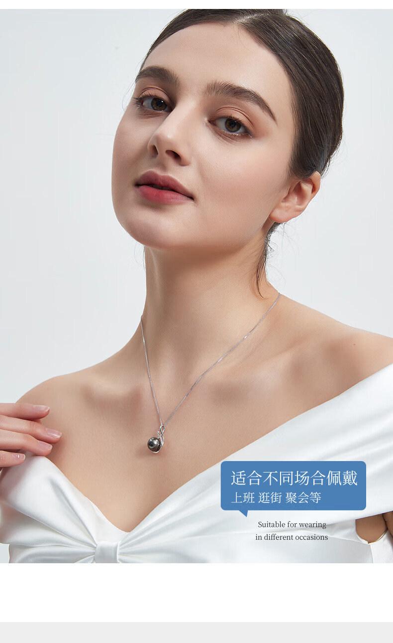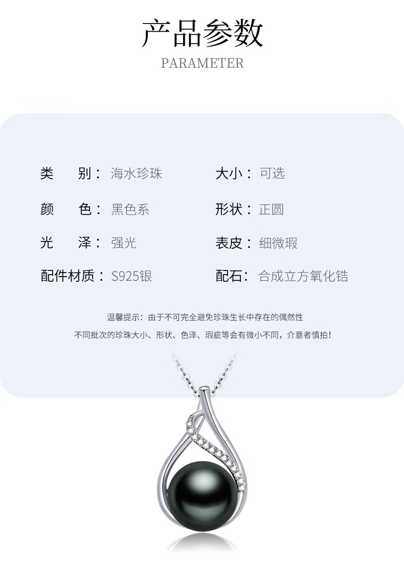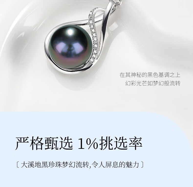 Duyi Tahitian Black Pearl Pendant, Seine River, Elegant Black Saltwater Pearl Necklace, Single Women, Black Series, Large Beads 10-11mm, Almost Flawless
