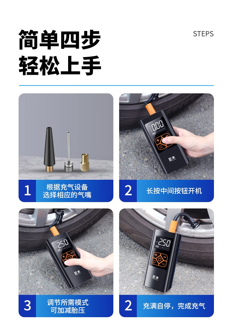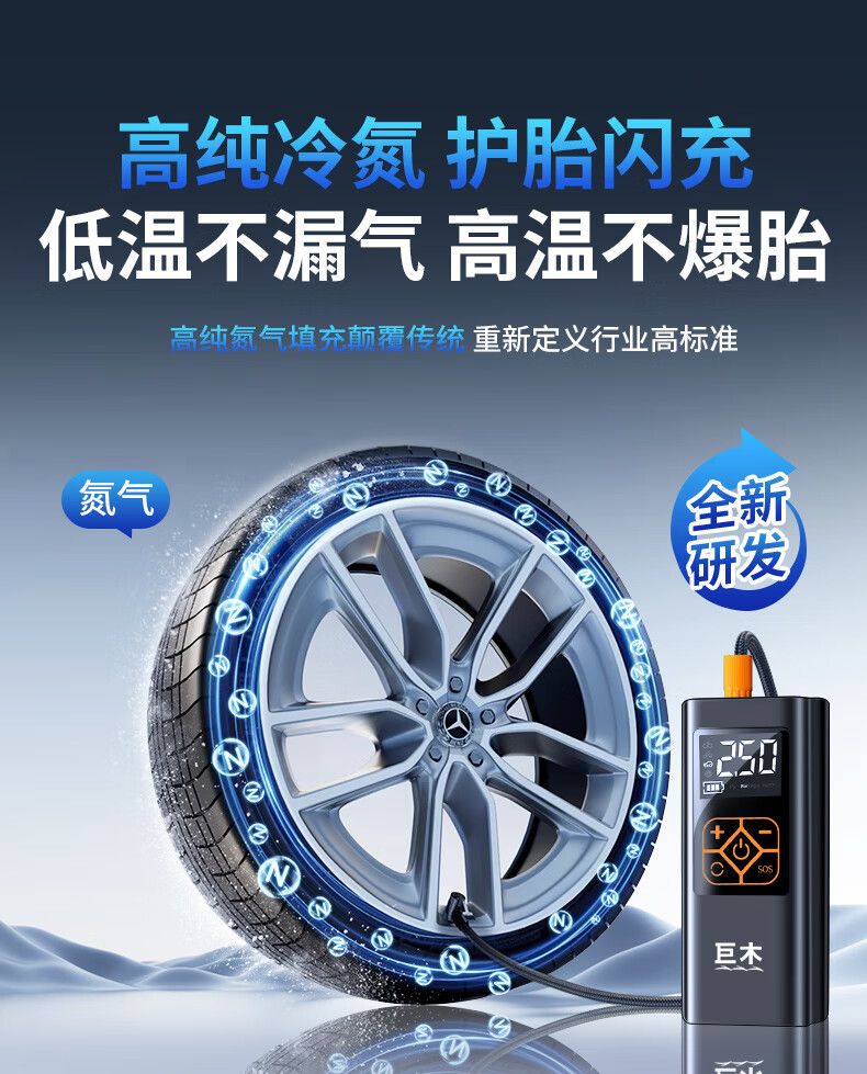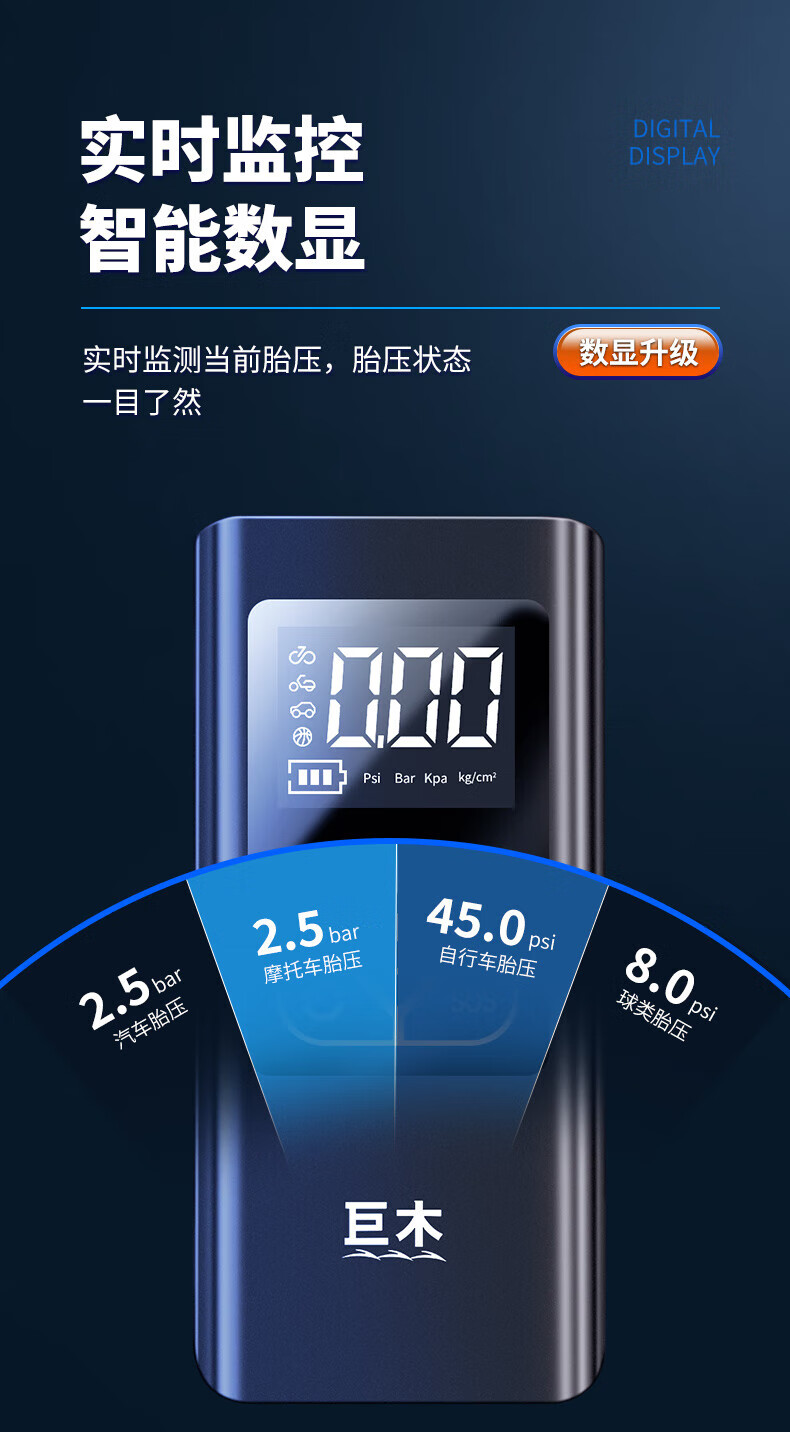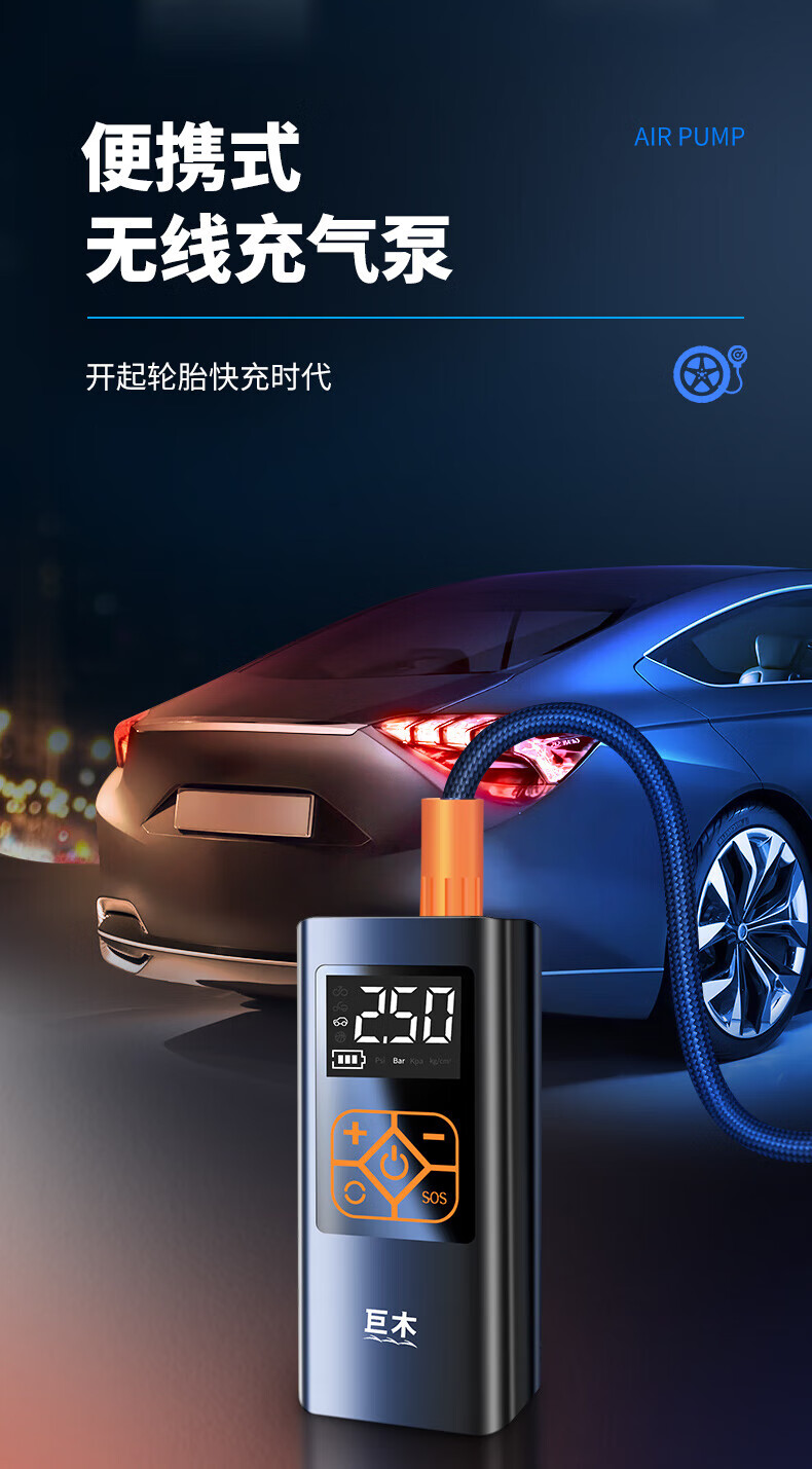 Jumu Electric Vehicle Air Pump Inflator Special air pump tube for vacuum tires for electric vehicles and general-purpose battery vehicles for automobiles 10th generation AI wireless + automatic charging and stopping emergency lighting