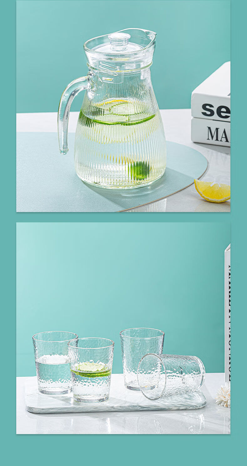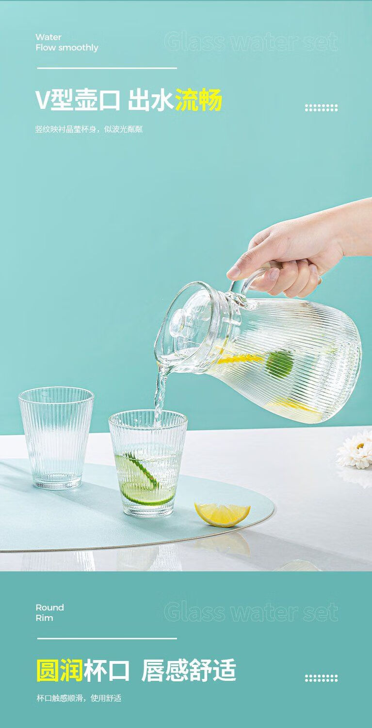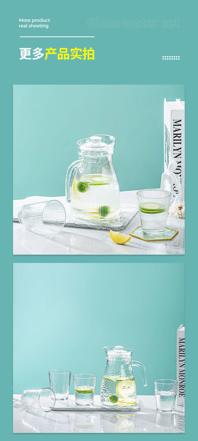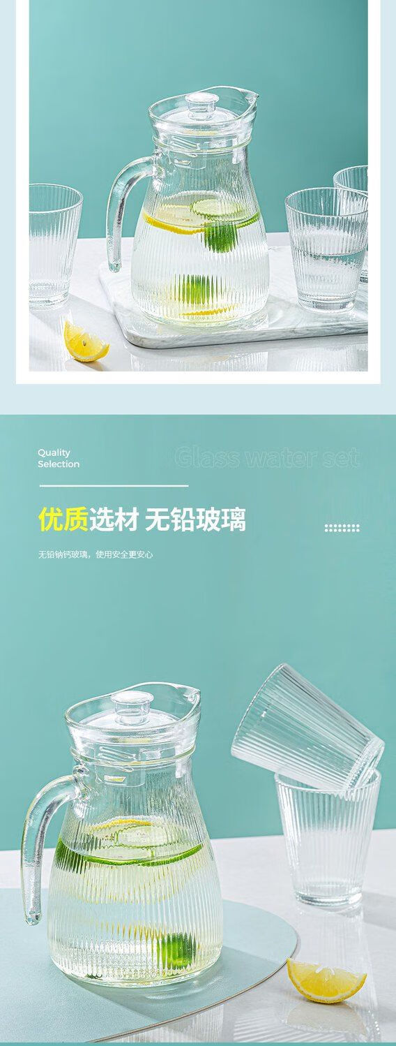 Household high temperature resistant cold kettle large capacity glass cold kettle cold brew teapot tie kettle set vertical pattern 1 pot + 4 cup set