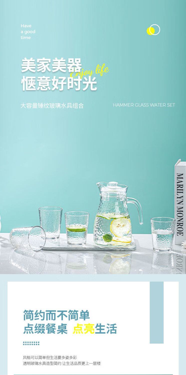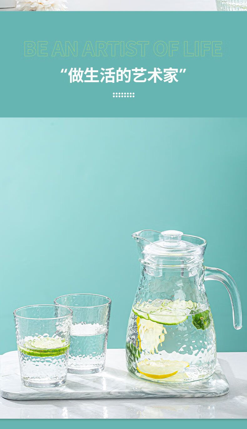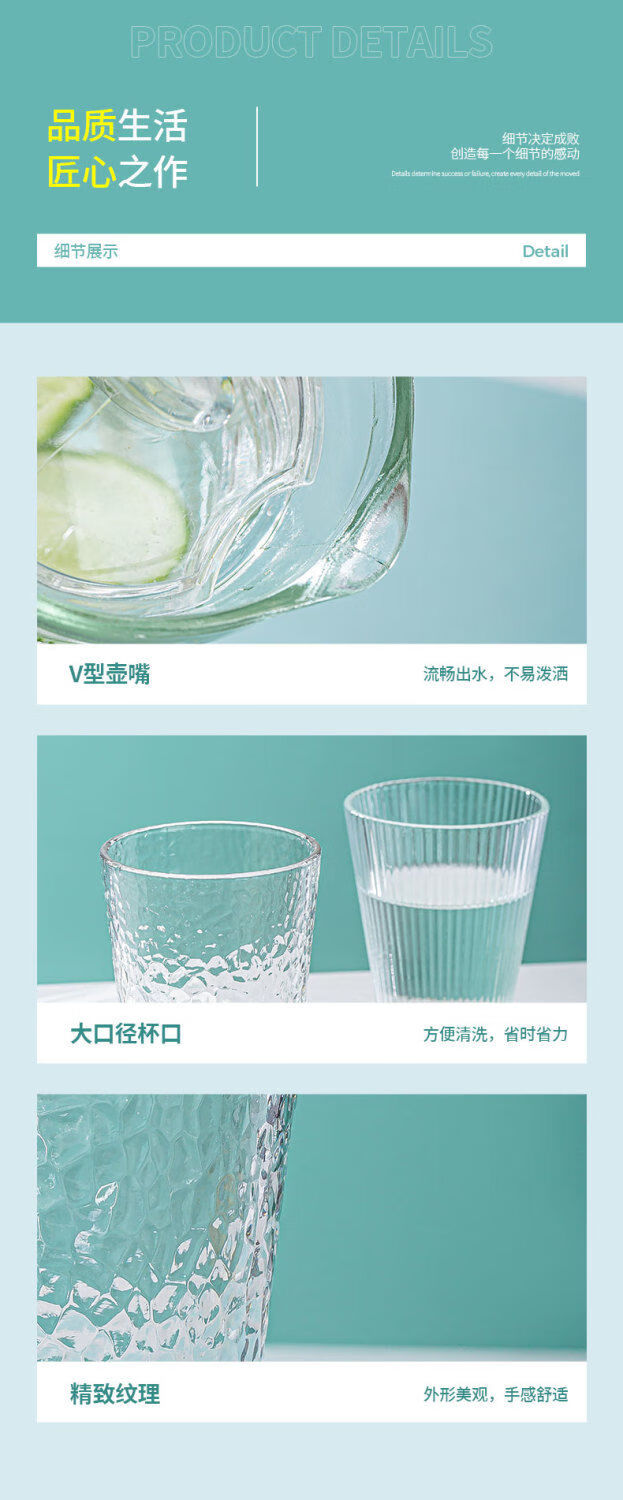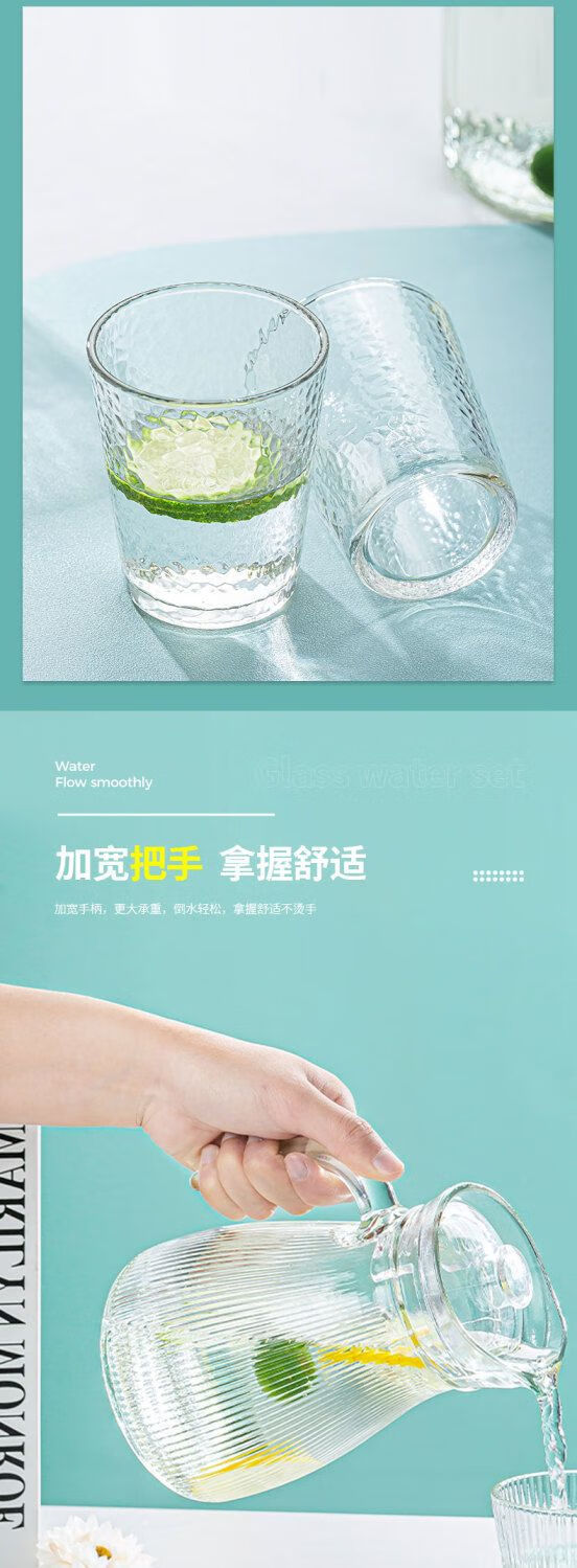 Household high temperature resistant cold kettle large capacity glass cold kettle cold brew teapot tie kettle set vertical pattern 1 pot + 4 cup set