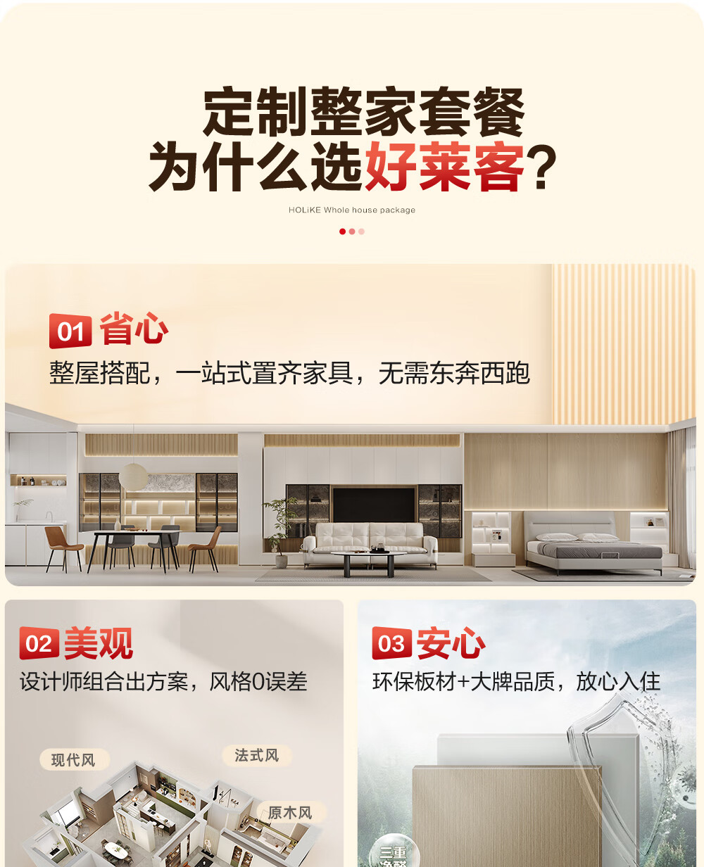 Haolaike's exclusive home package for the whole house. Customized cabinets, kitchen cabinets, sofas, coffee tables, beds, furniture, wooden doors and parapets for the whole house. 49800 exclusive home package for the whole house. Package - customized cabinets + cabinets + furniture + doors + parapets.