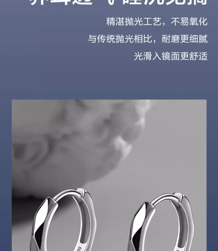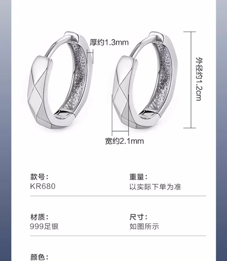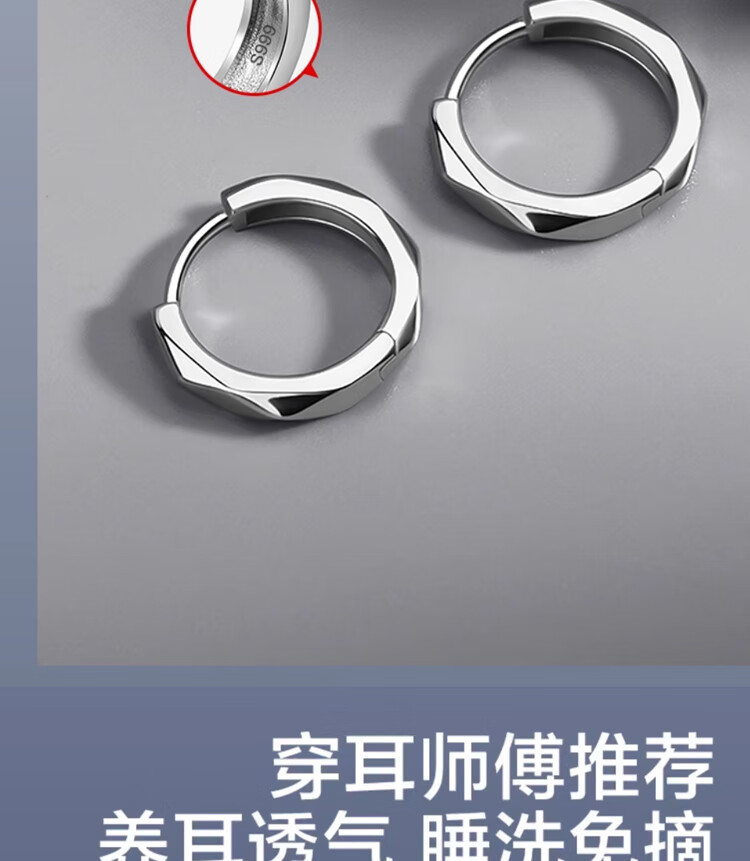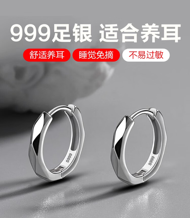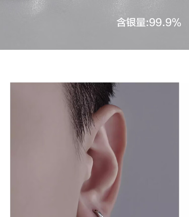 Mansheng 999 Pure Silver Men's Earrings Sterling Silver Light Luxury Neutral Trendy Personality Fashionable Earrings Single Cool Handsome Earrings 999 Pure Silver Earrings Single