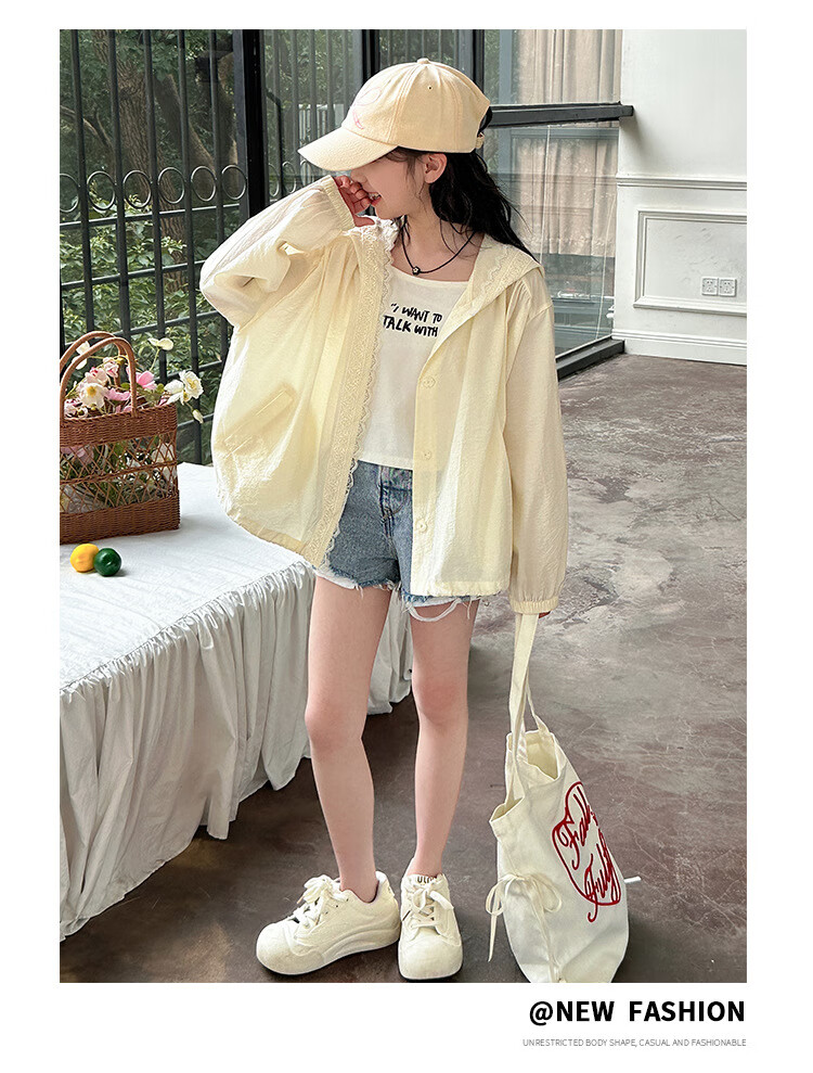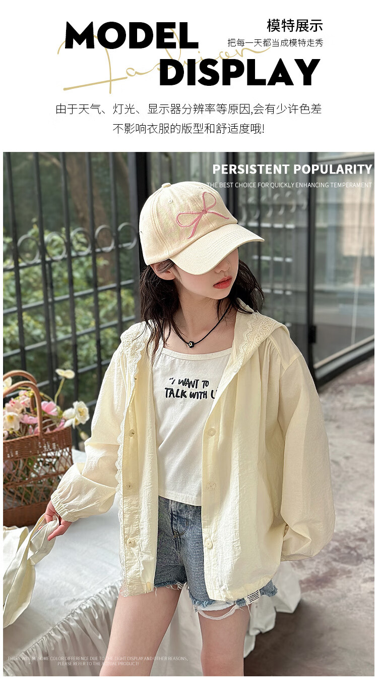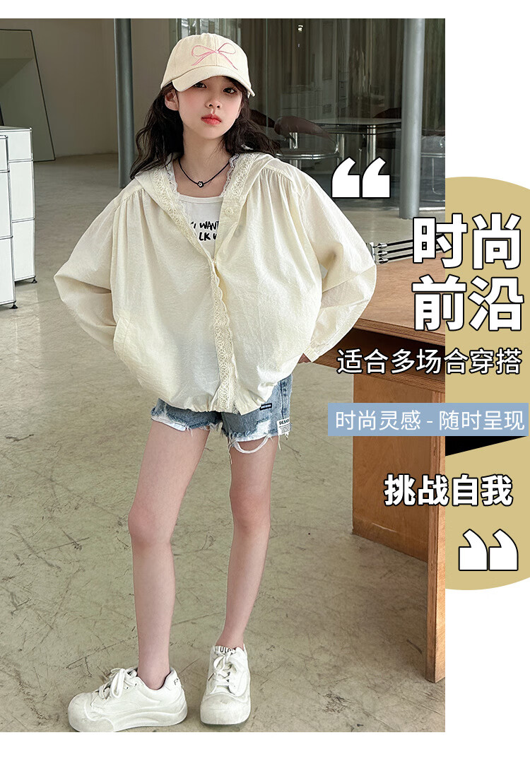Ciyu Children's Sun Protection Clothing Ice Silk Jacket 2025 New Summer Clothes Girls Summer Thin Skin Clothes Sun Protection Clothes for Girls Beige 9945 130