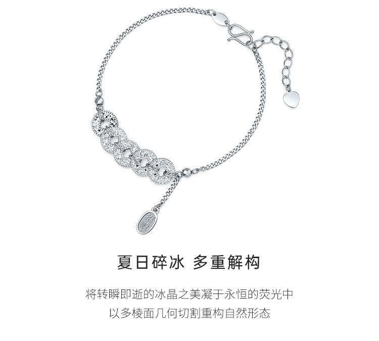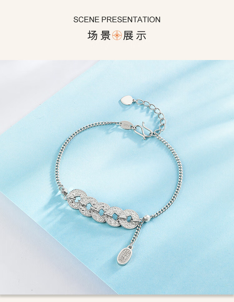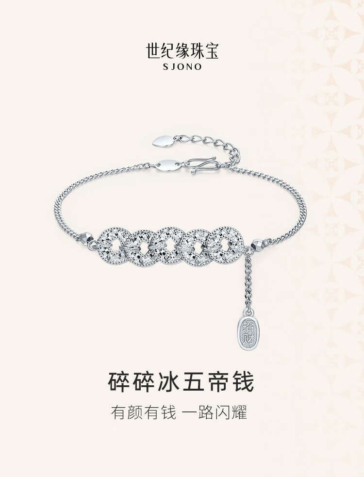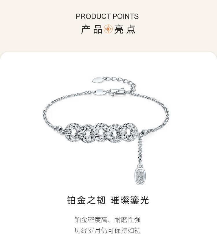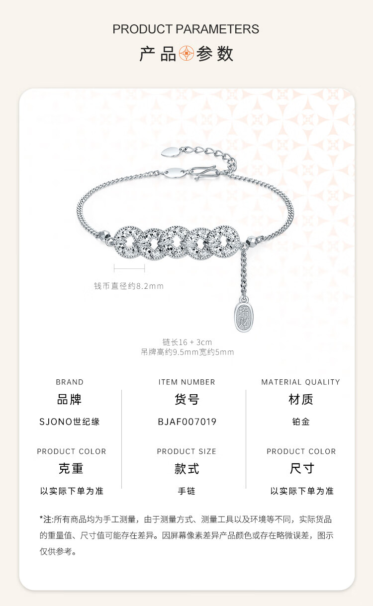 Century Yuan Platinum Bracelet Women's Crushed Ice Five Emperors Coin PT950 Coin Bracelet as a Birthday Gift for Girlfriend and Wife 8.11g Chain Length 16+3cm 8.35g 8.35g