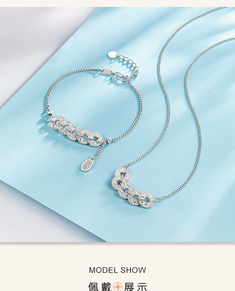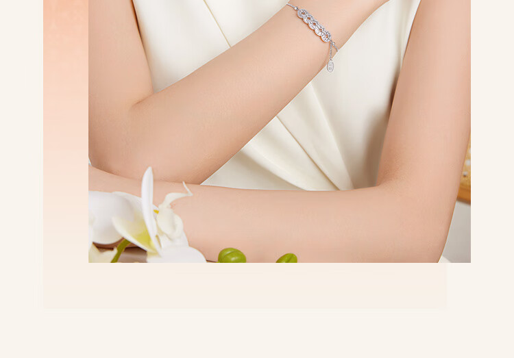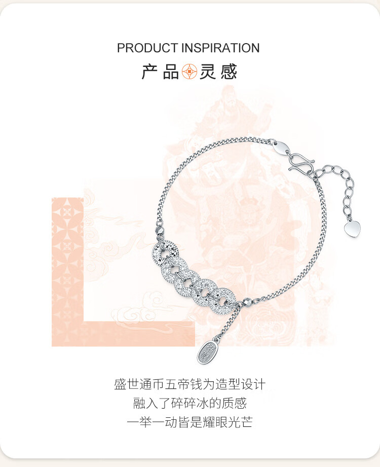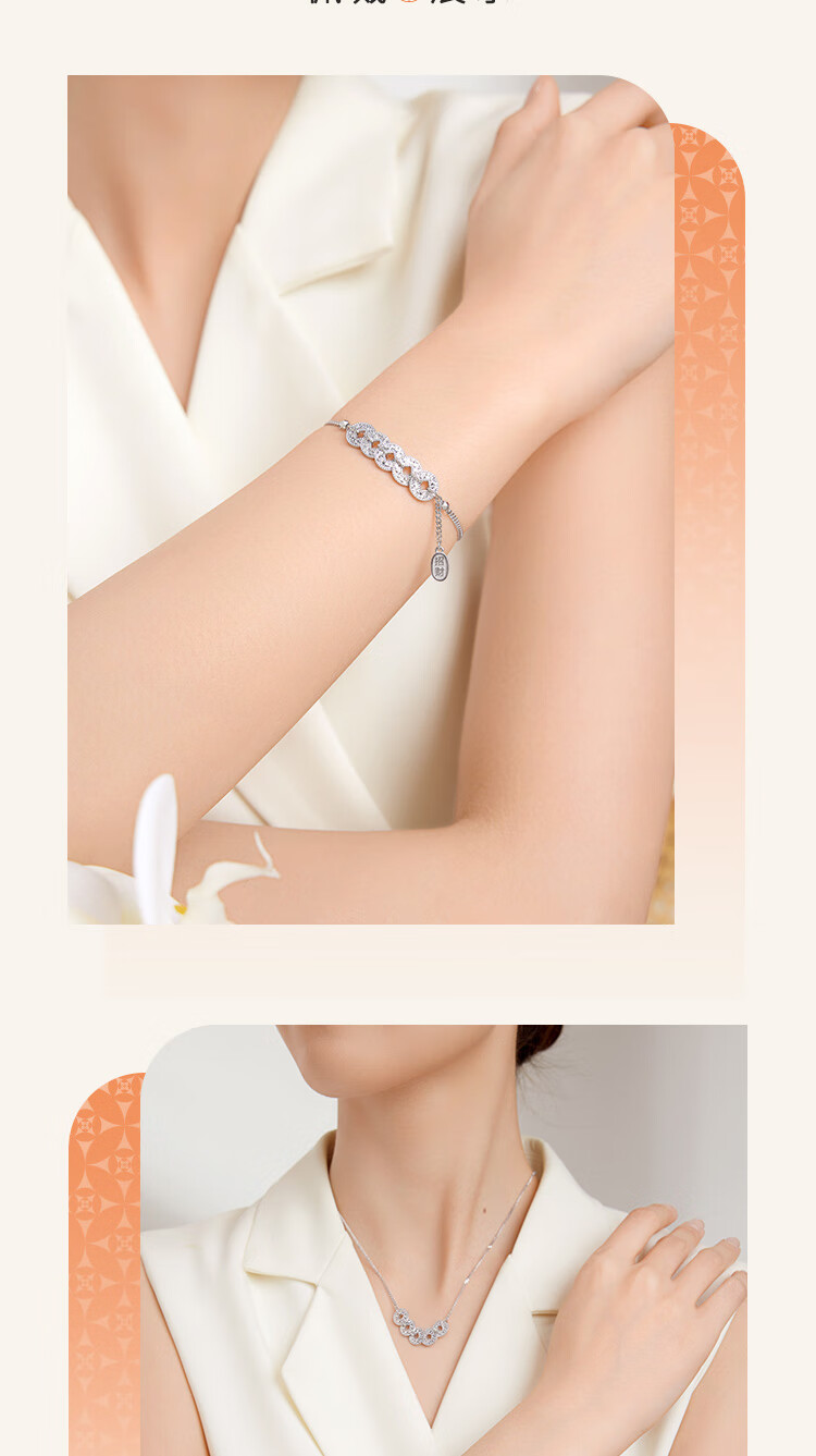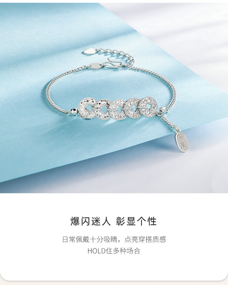 Century Yuan Platinum Bracelet Women's Crushed Ice Five Emperors Coin PT950 Coin Bracelet as a Birthday Gift for Girlfriend and Wife 8.11g Chain Length 16+3cm 8.35g 8.35g