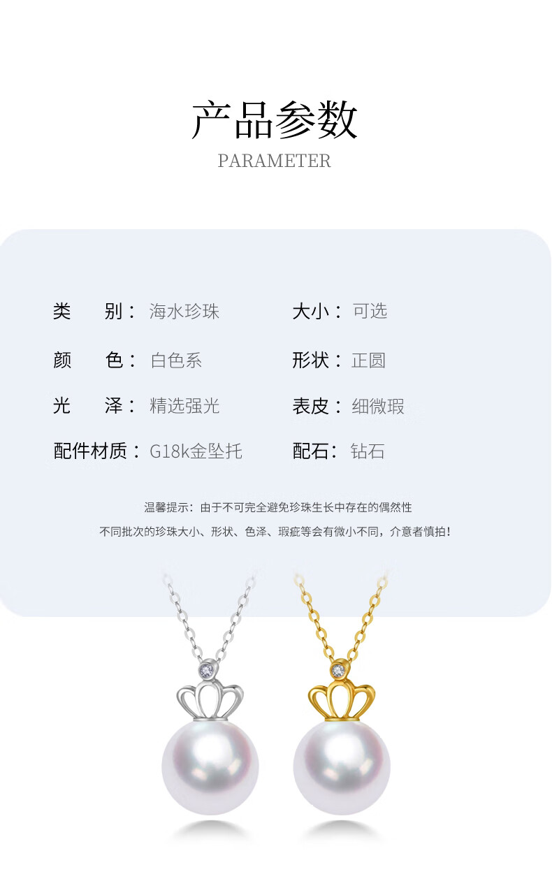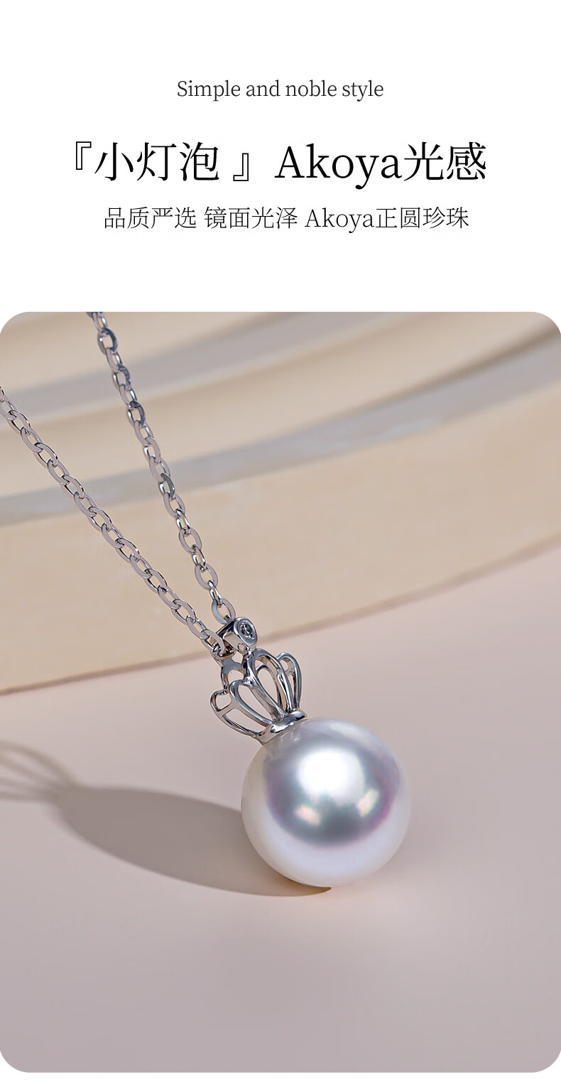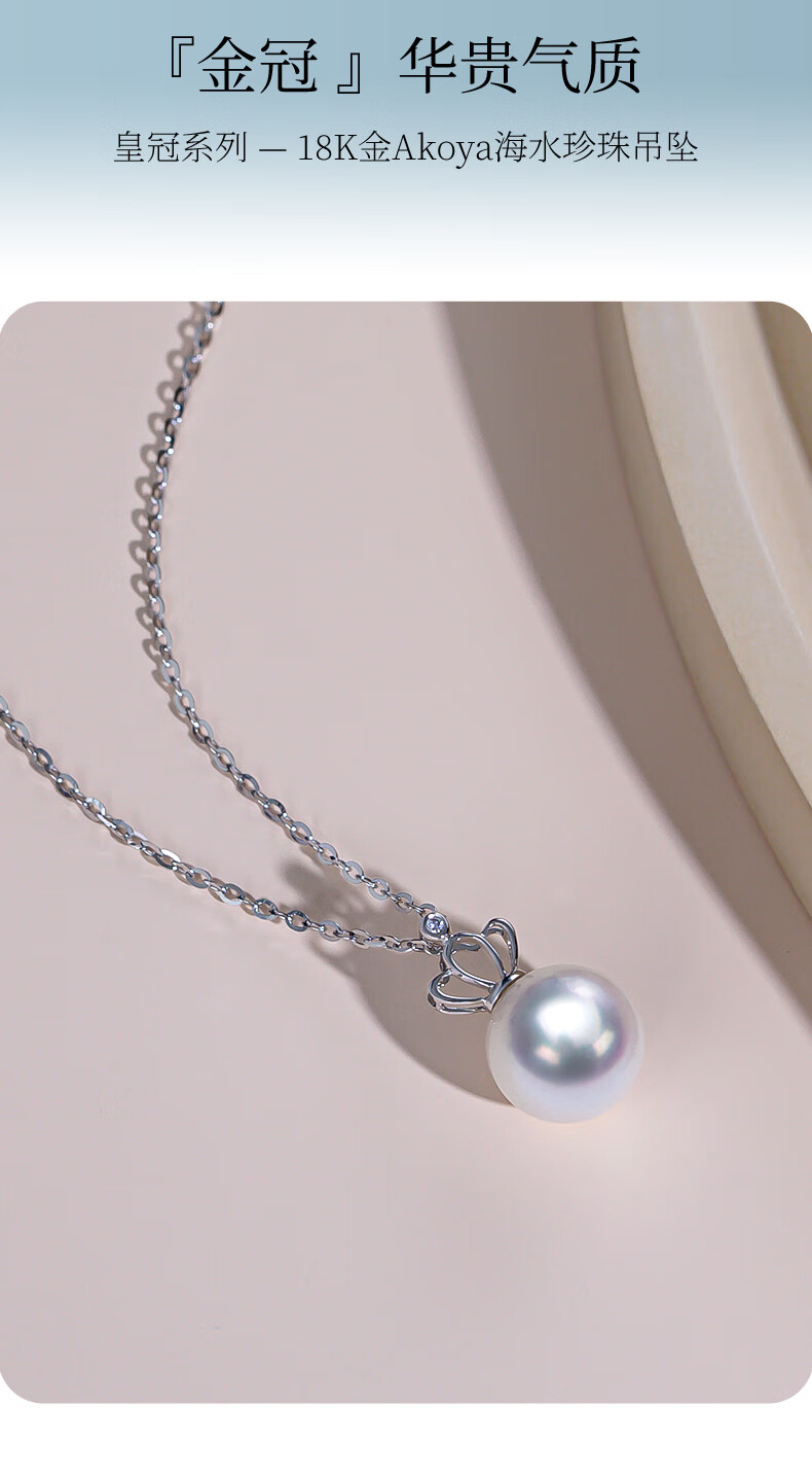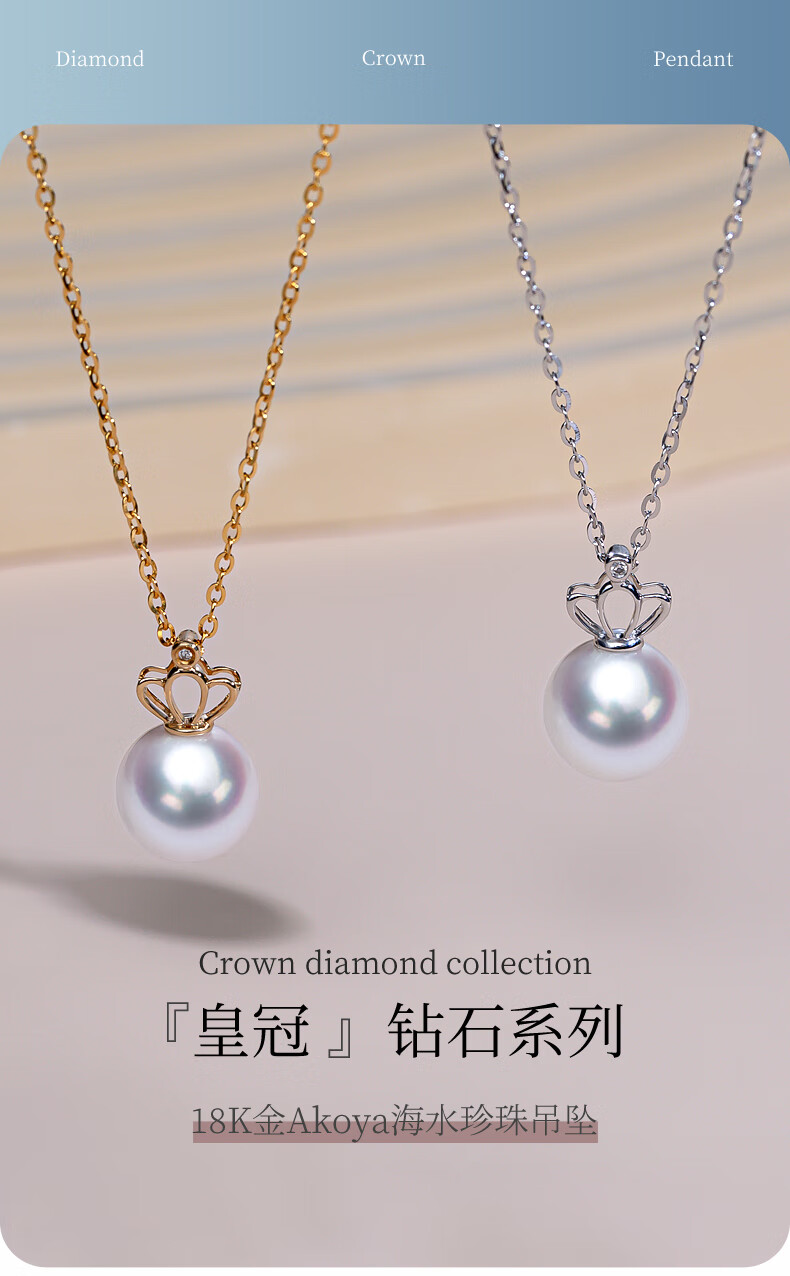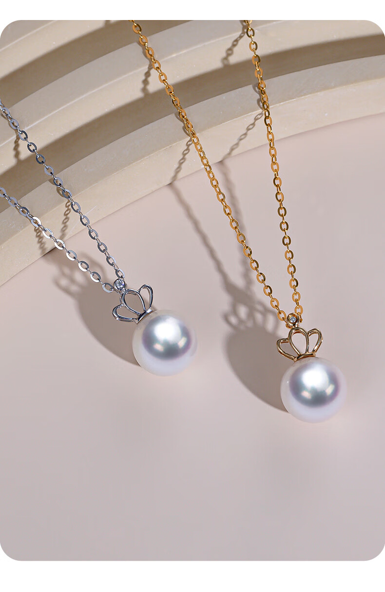 Duyi 18K gold diamond akoya pearl pendant single exquisite small crown Aurora seawater pearl necklace birthday gift white 18K gold diamond pendant Aurora 8-8.5mm