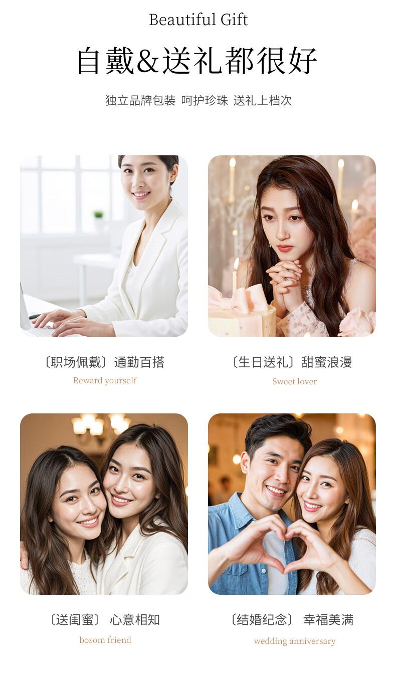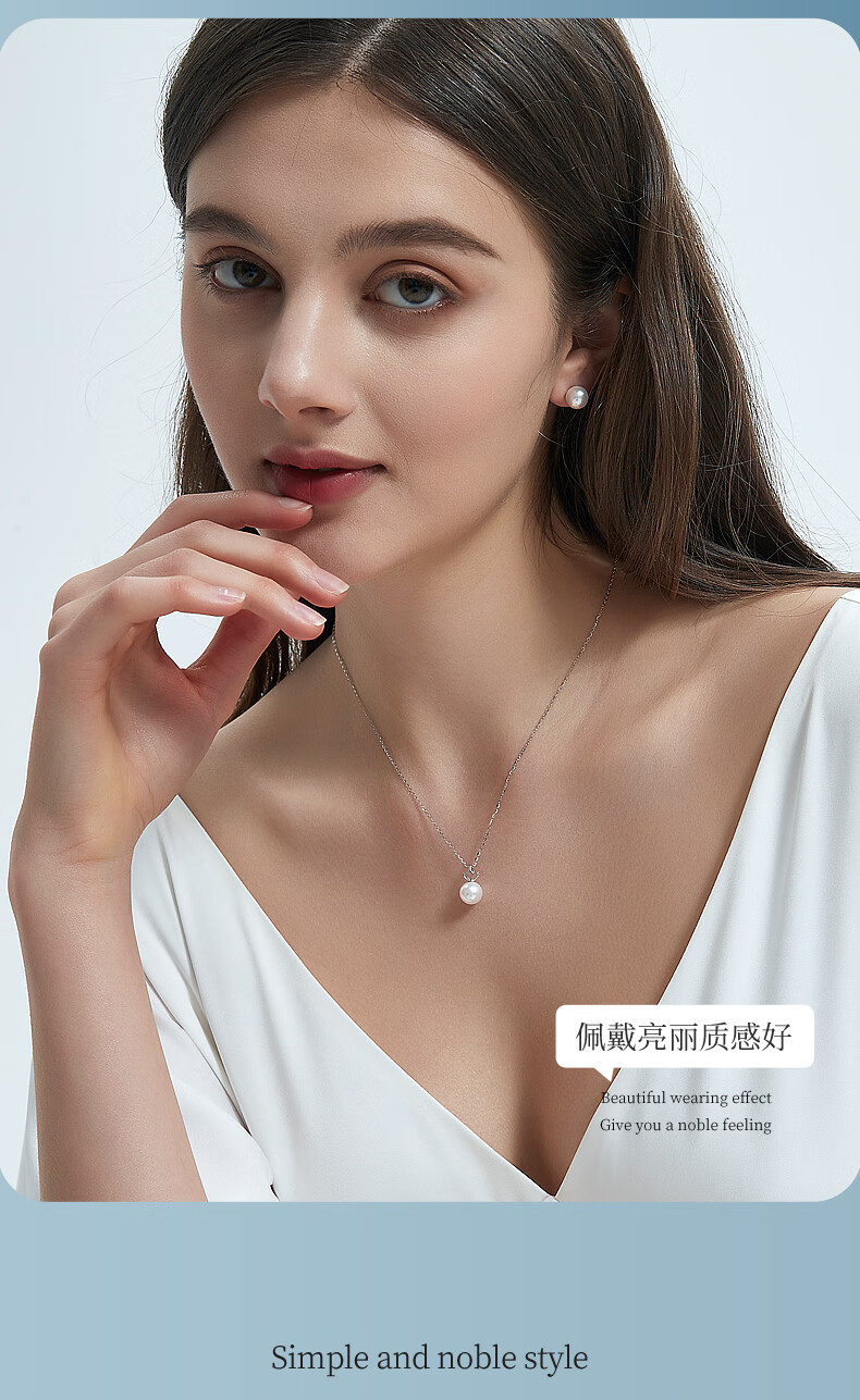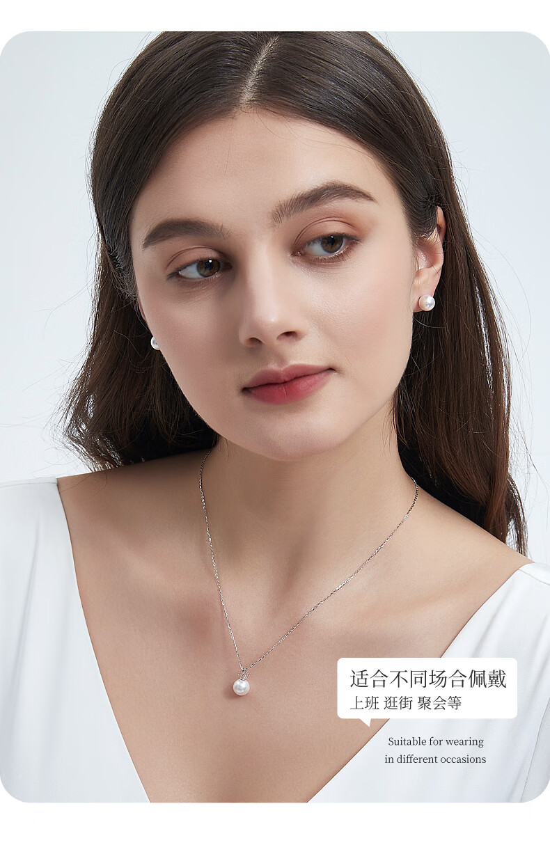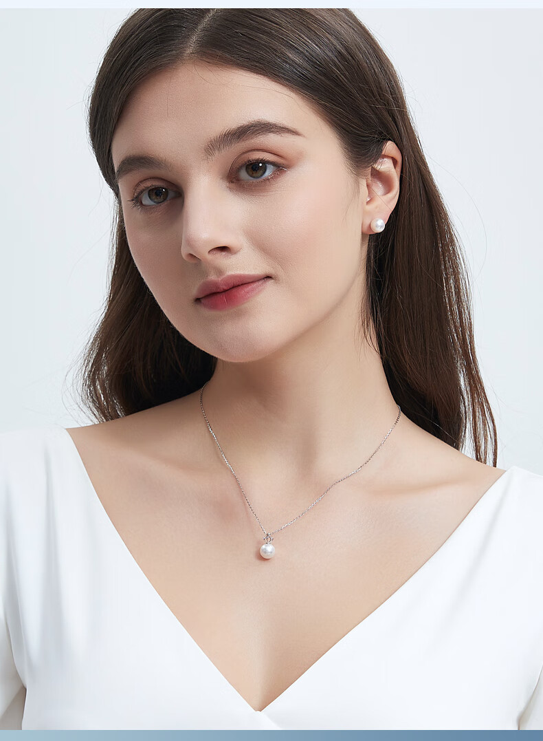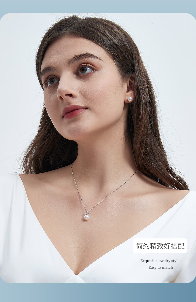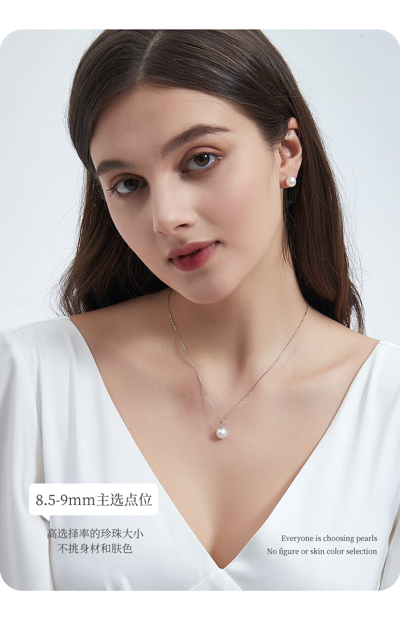Duyi 18K gold diamond akoya pearl pendant single exquisite small crown Aurora seawater pearl necklace birthday gift white 18K gold diamond pendant Aurora 8-8.5mm