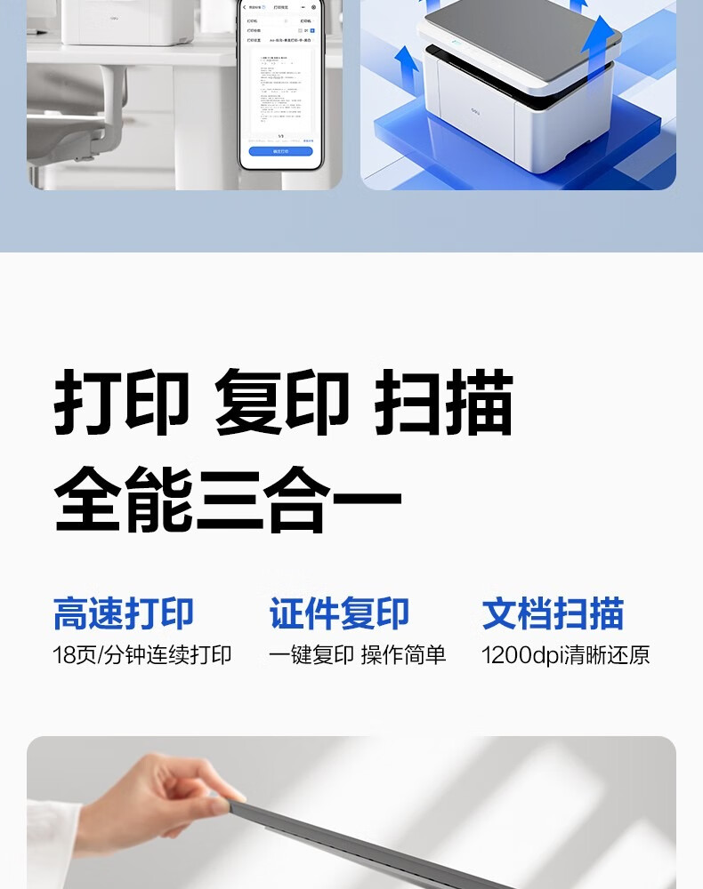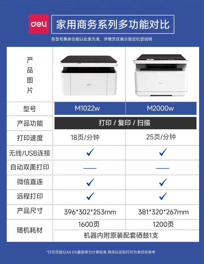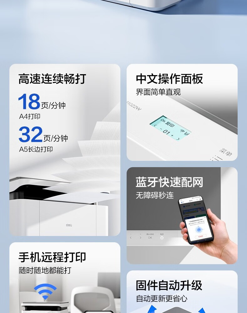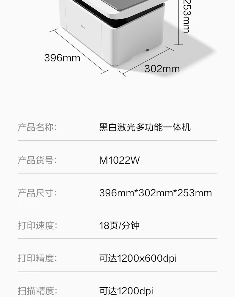 Deli M1022W Wireless Black and White Laser Printer for Office, Study and Home Use Print, Copy and Scan All-in-One Multi-function Student Test Paper Homework M1022W Print, Copy and Scan Standard Configuration