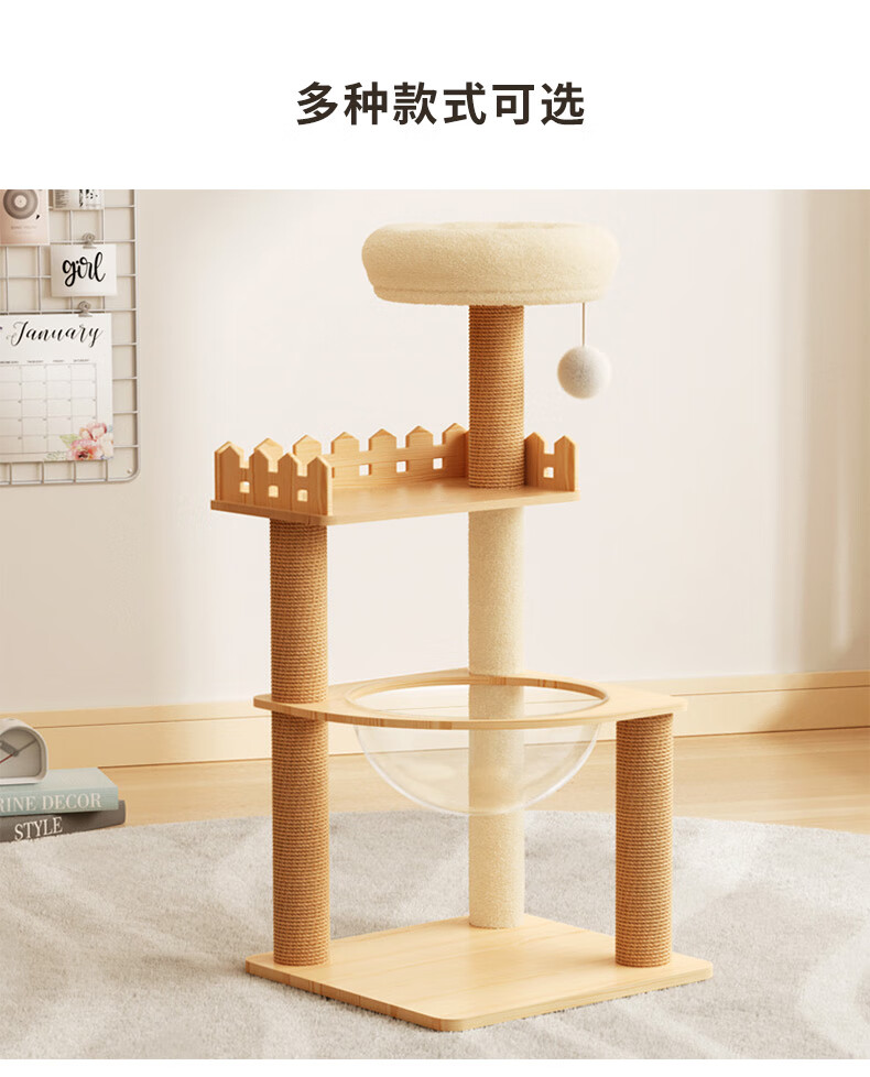 Jingxi Cat Climbing Frame Cat Scratching Board Cat Nest Integrated Vertical Stable and Non-shaking Fun Cat Climbing Door-to-Door Double Space Capsule Ceiling 99cm Four-Layer Climbing Frame