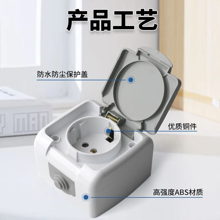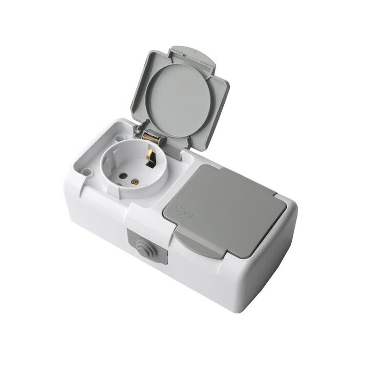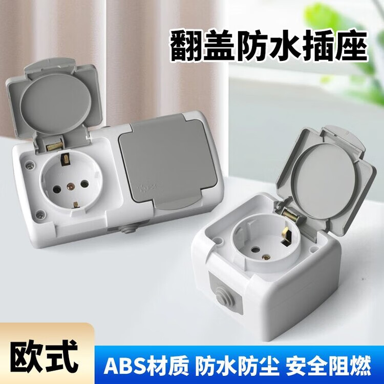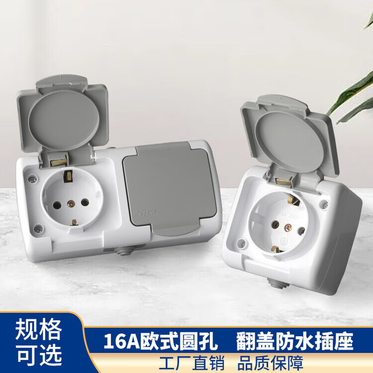 Plug socket with cover 16A European German style European standard German standard dust-proof wireless rain-proof double power supply surface-mounted two-position plug-in one