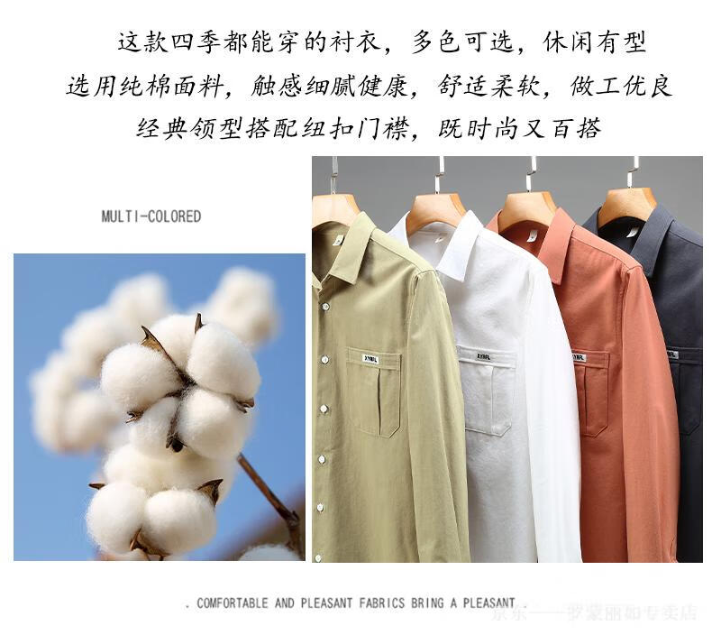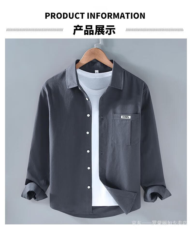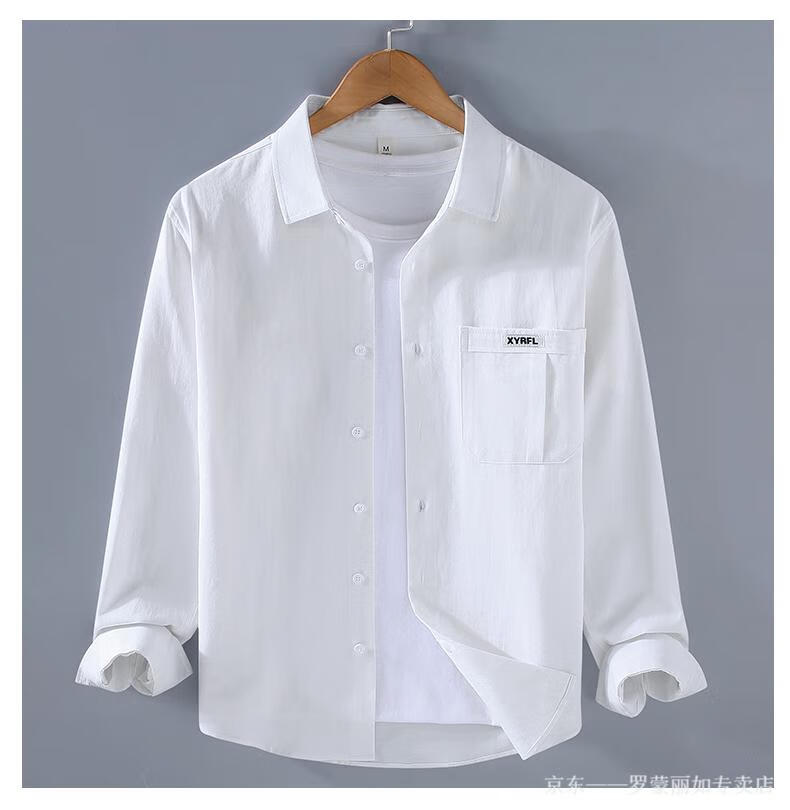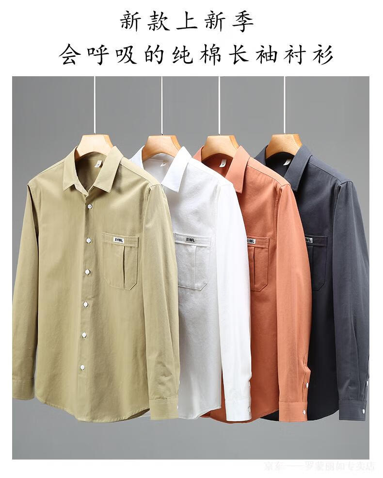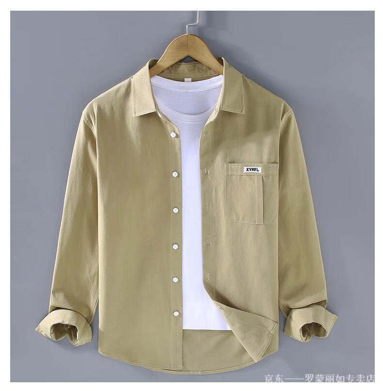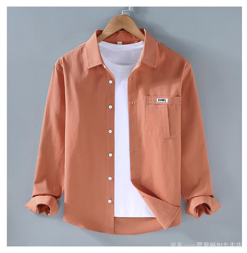 ROMON small fresh shirt men's long-sleeved literary trend fashionable handsome top spring and autumn pure cotton versatile shirt jacket orange M