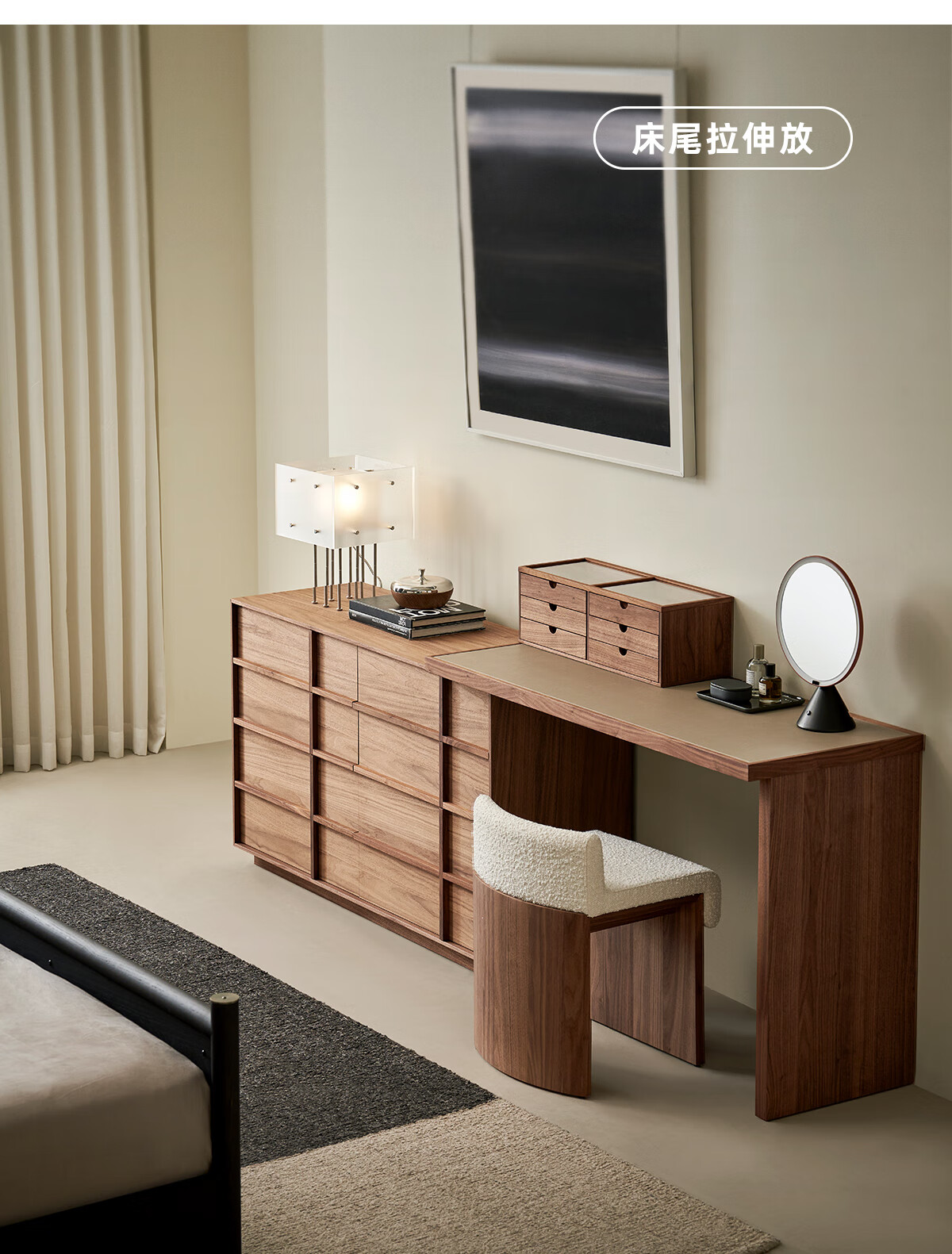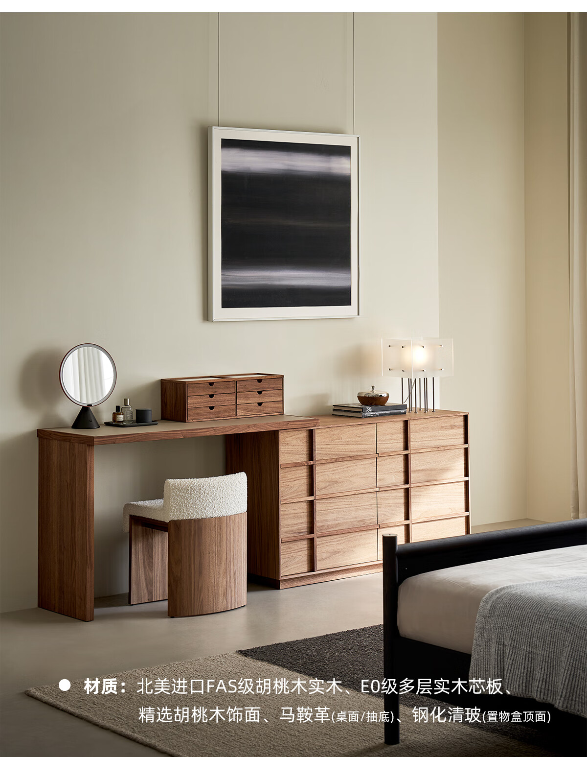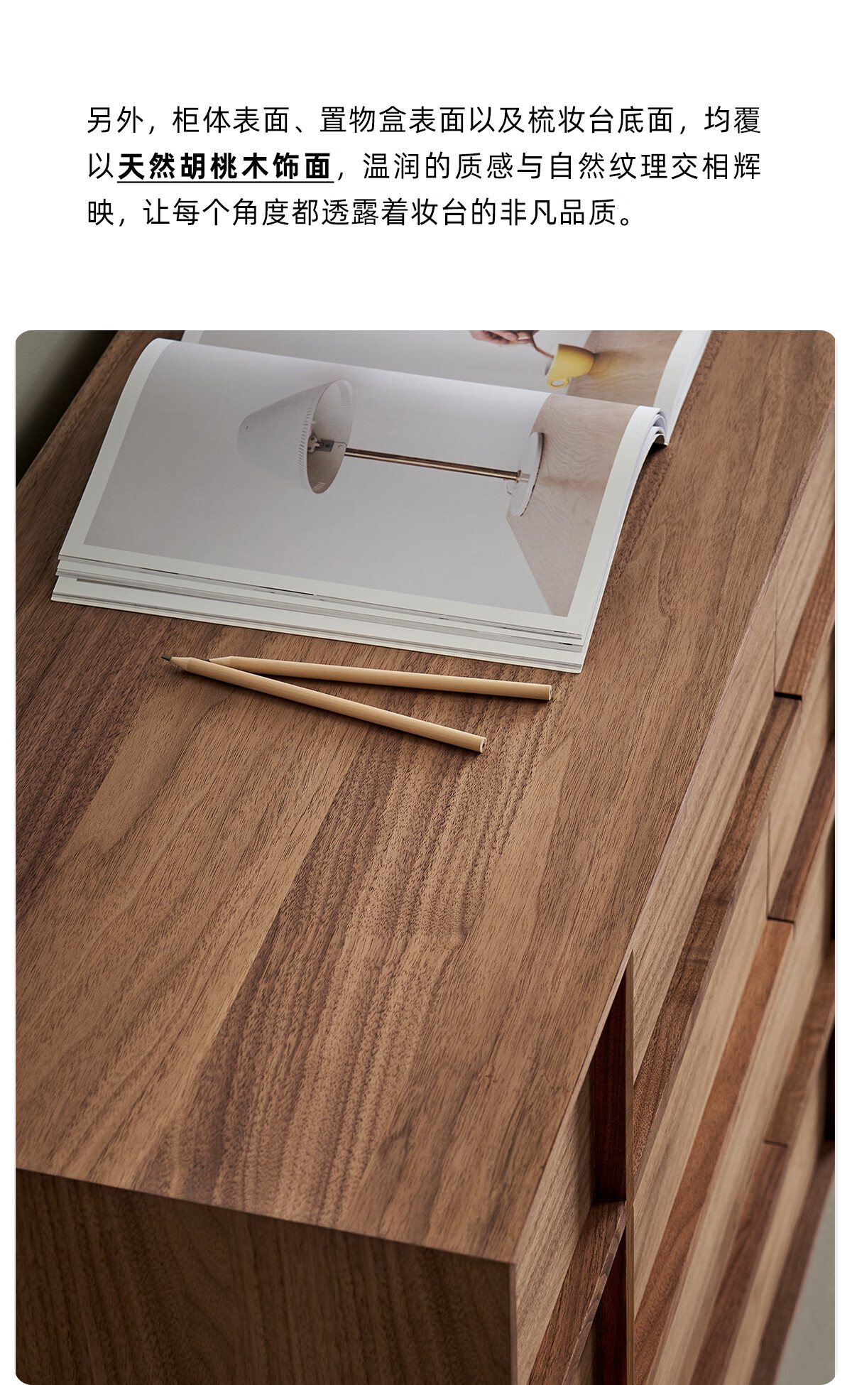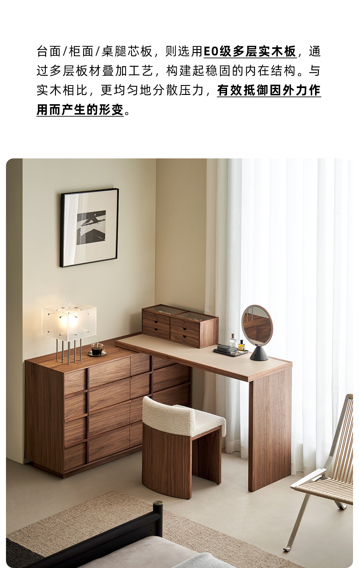Kona Shiye solid wood retro dressing table and cabinet integrated North American black walnut second-hand corner dressing table Z walnut color-cabinet + 1.2m dressing table + makeup stool
