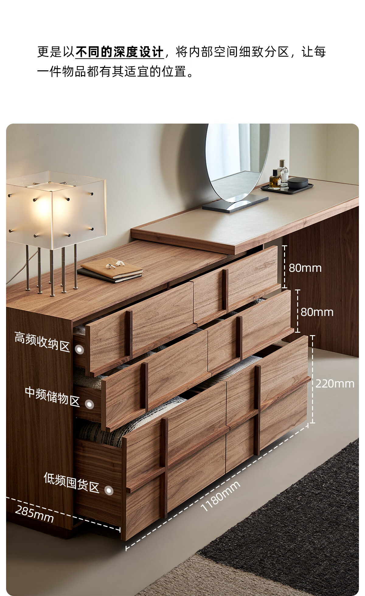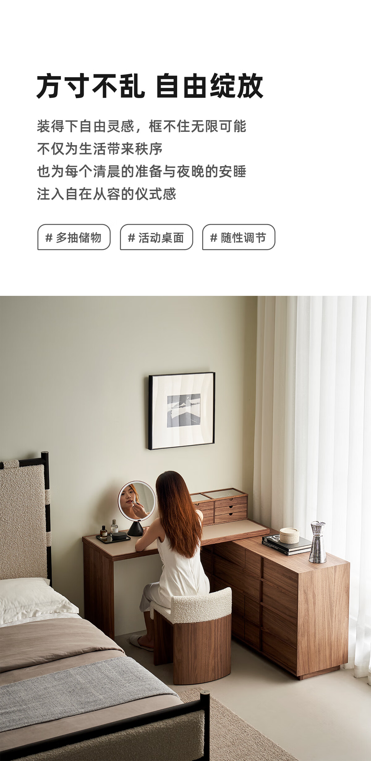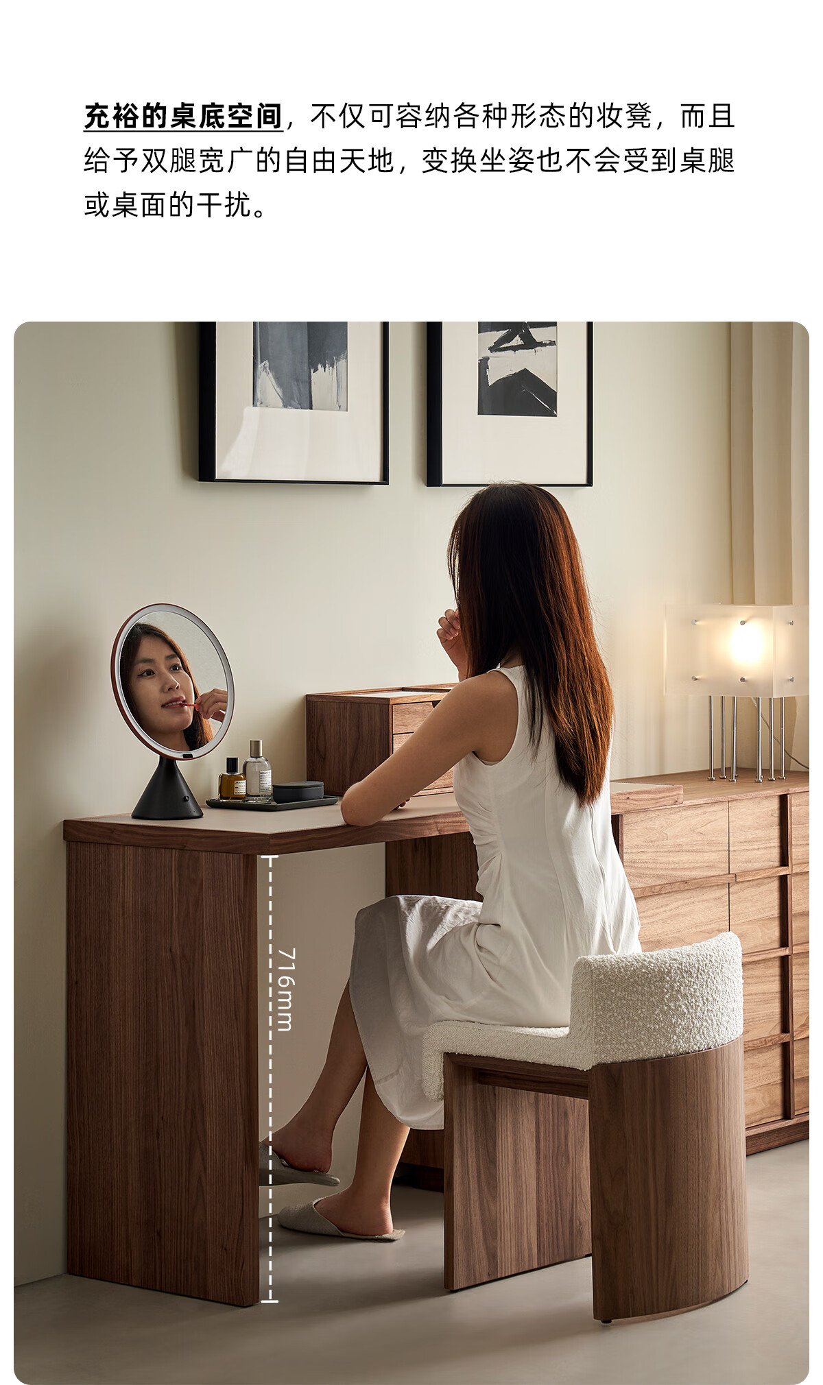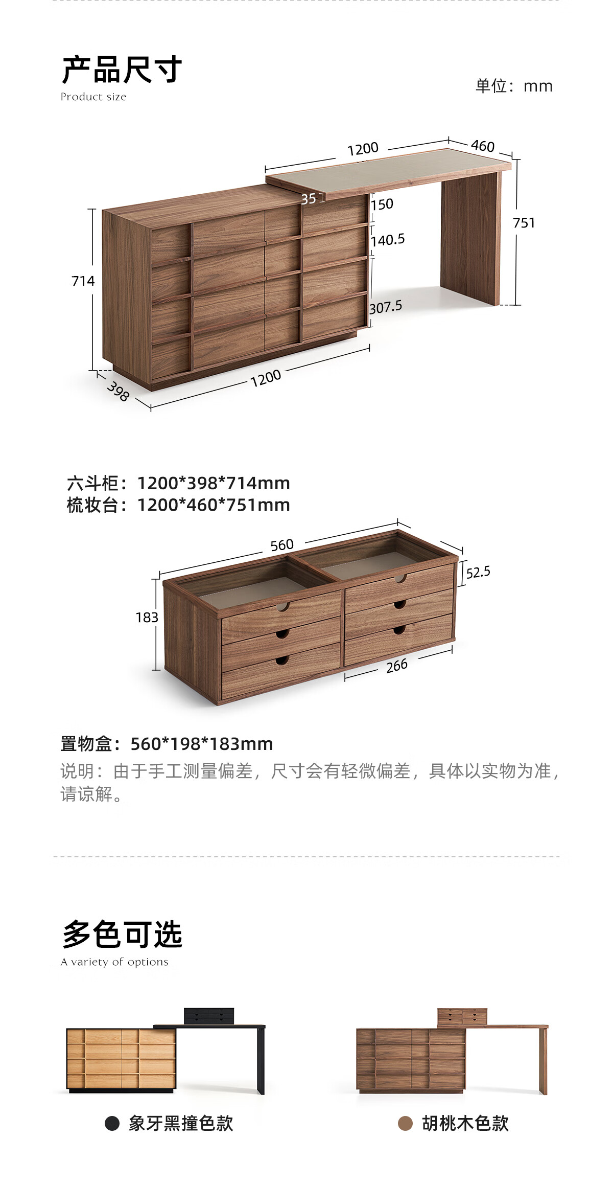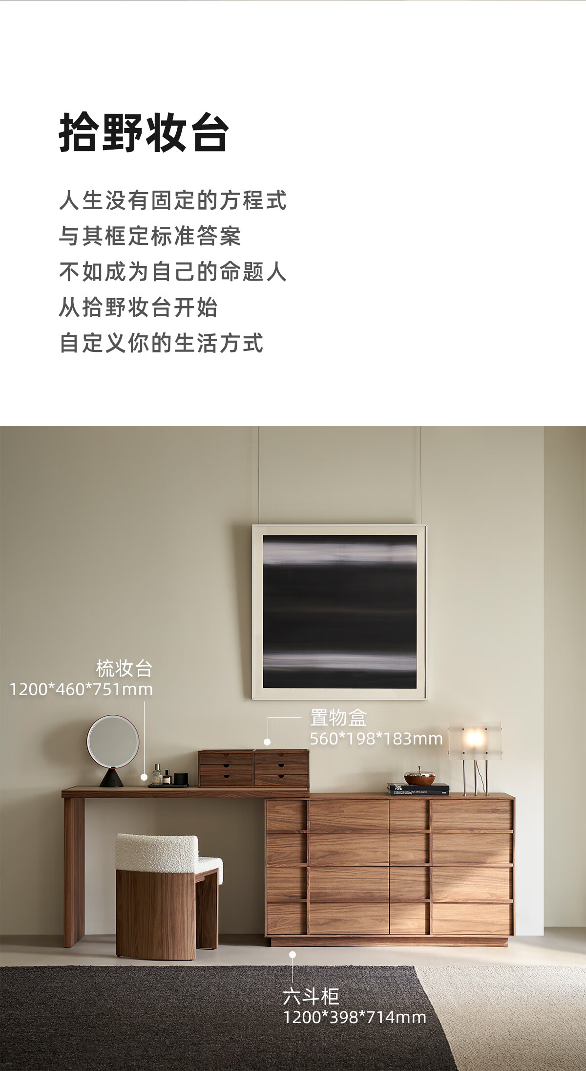 Kona Shiye solid wood retro dressing table and cabinet integrated North American black walnut second-hand corner dressing table Z walnut color-cabinet + 1.2m dressing table + makeup stool