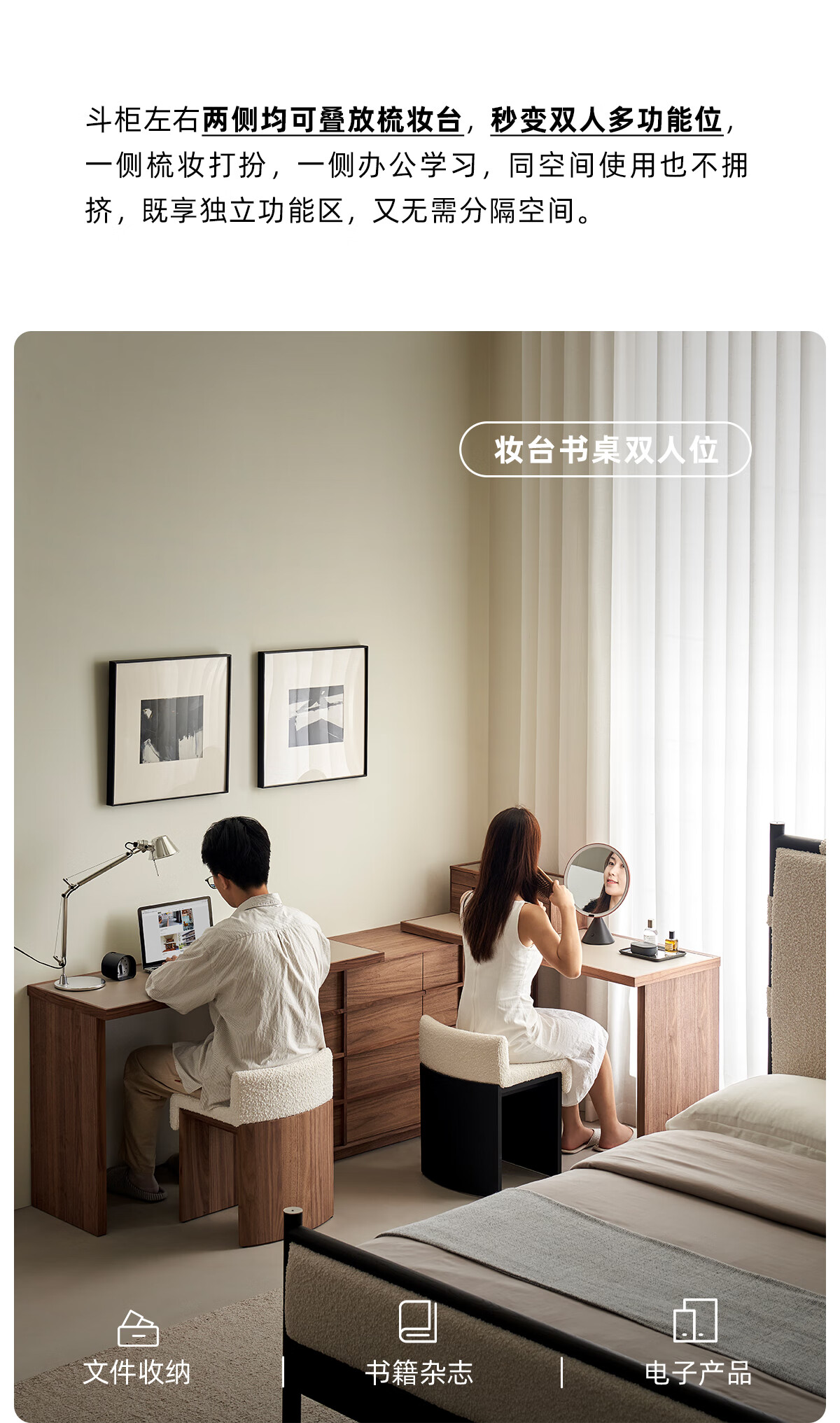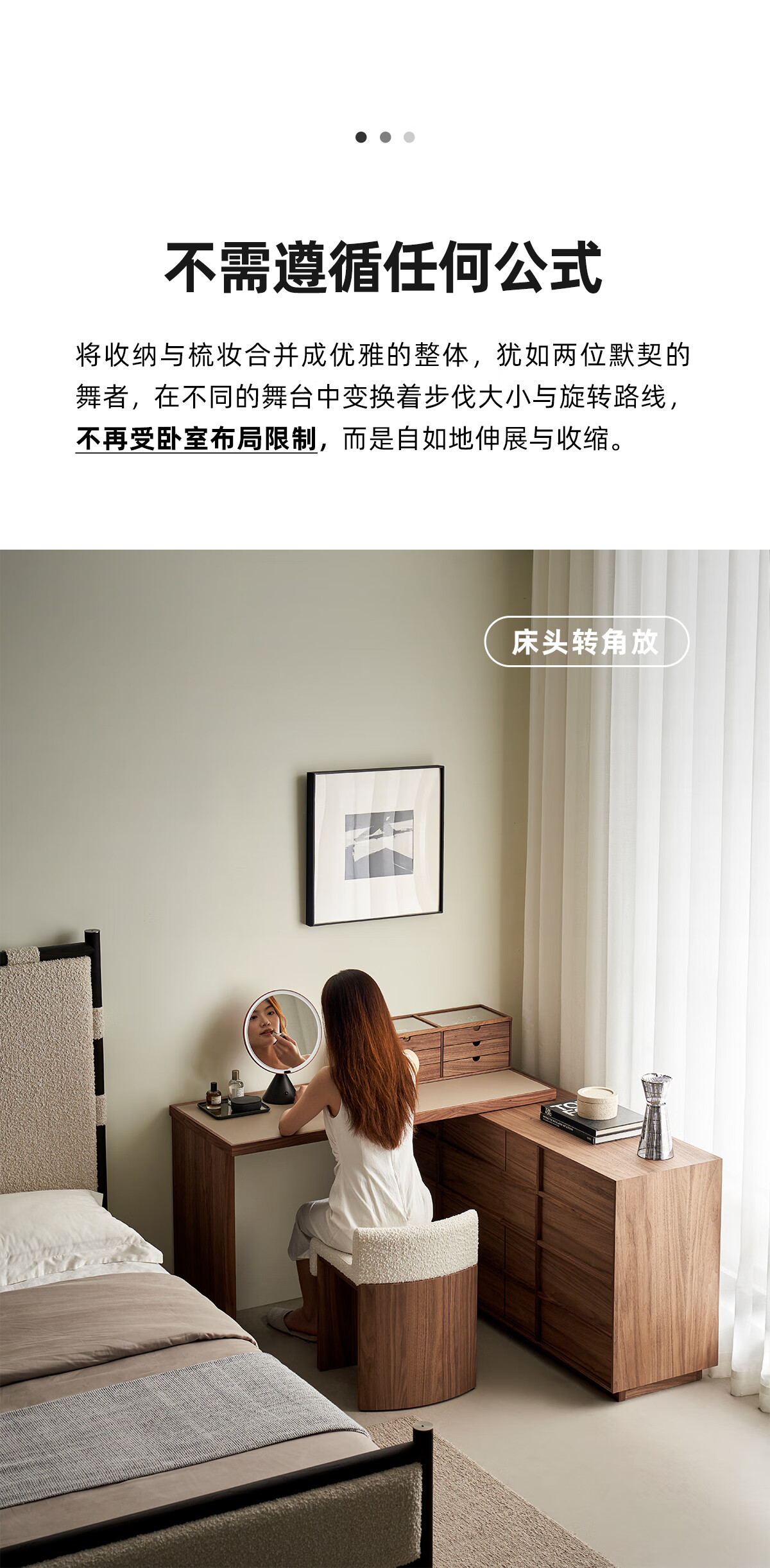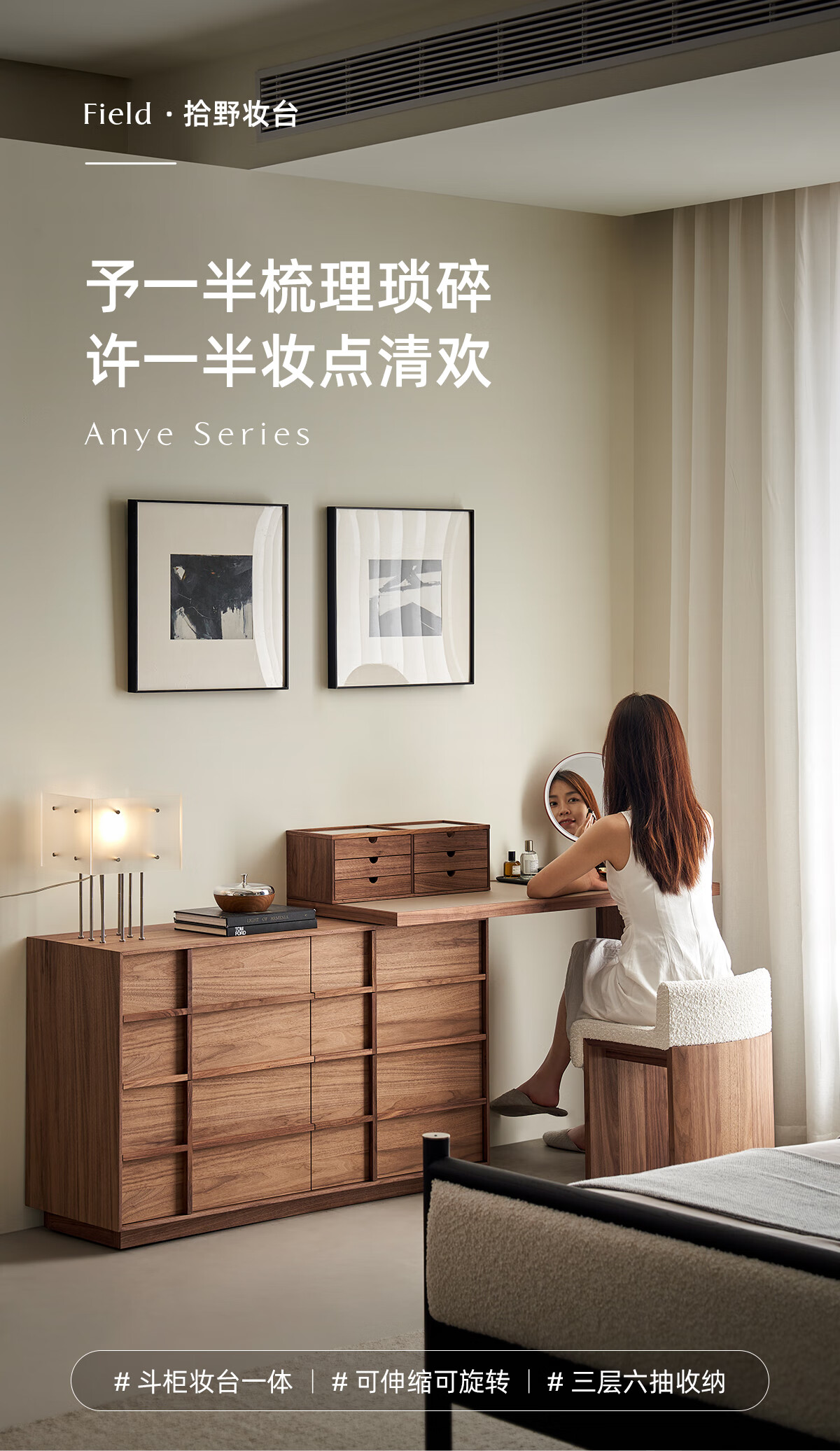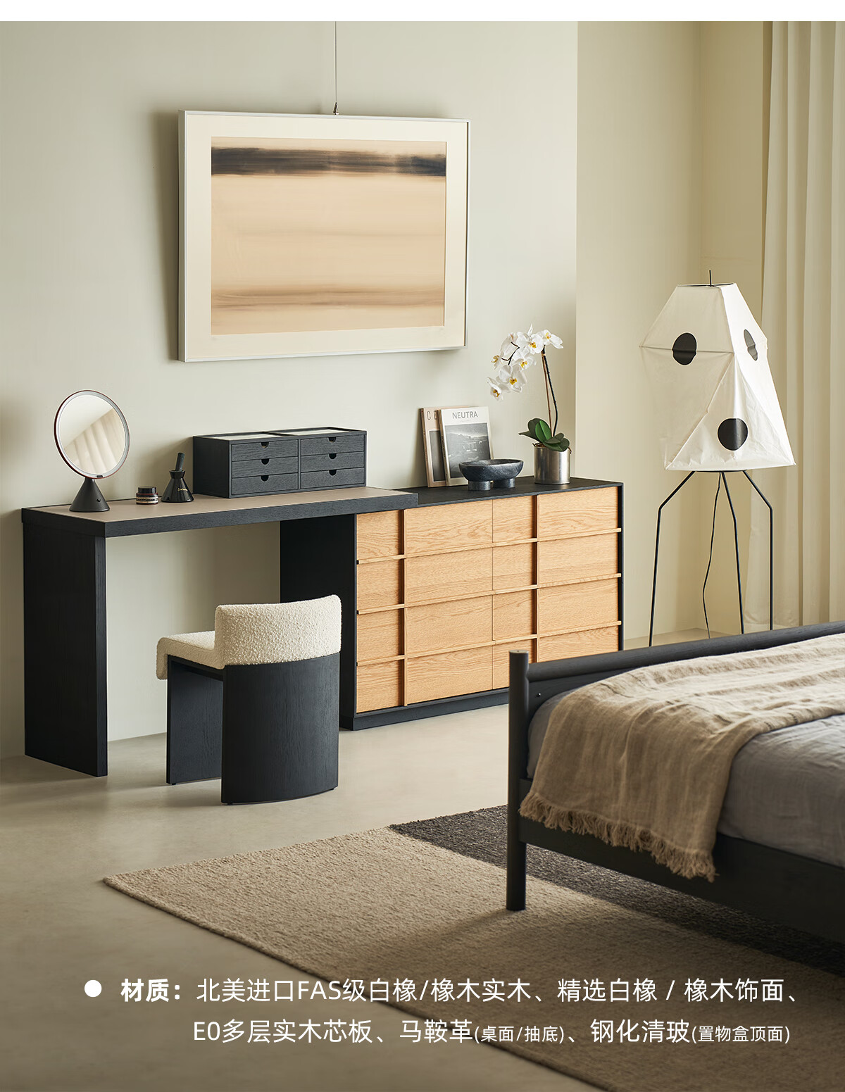 Kona Shiye solid wood retro dressing table and cabinet integrated North American black walnut second-hand corner dressing table Z walnut color-cabinet + 1.2m dressing table + makeup stool