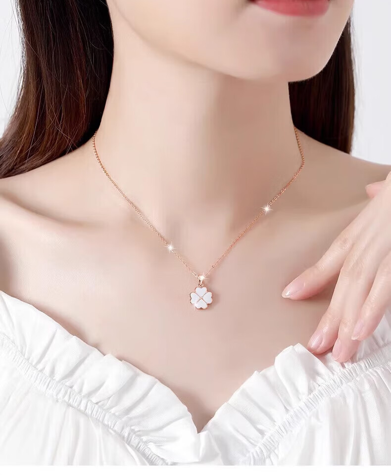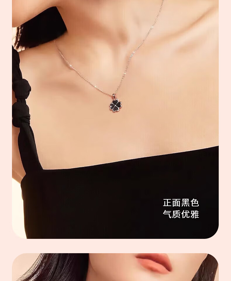 BOBANGSHI sterling silver four-leaf clover necklace for women, high-end, light luxury, niche sweater chain pendant, Valentine's Day gift for wife, black and red double-sided necklace + light luxury gift box