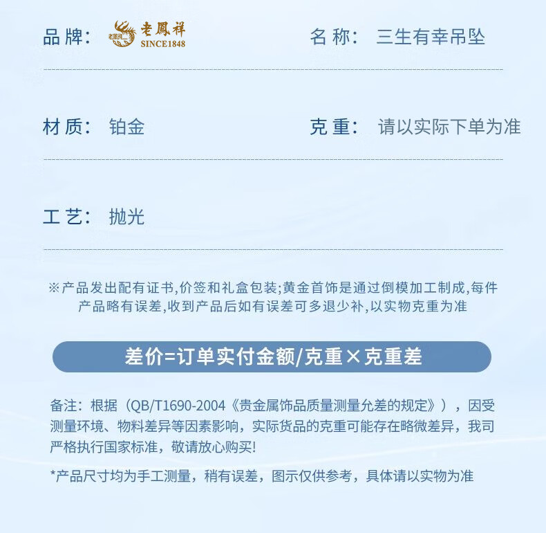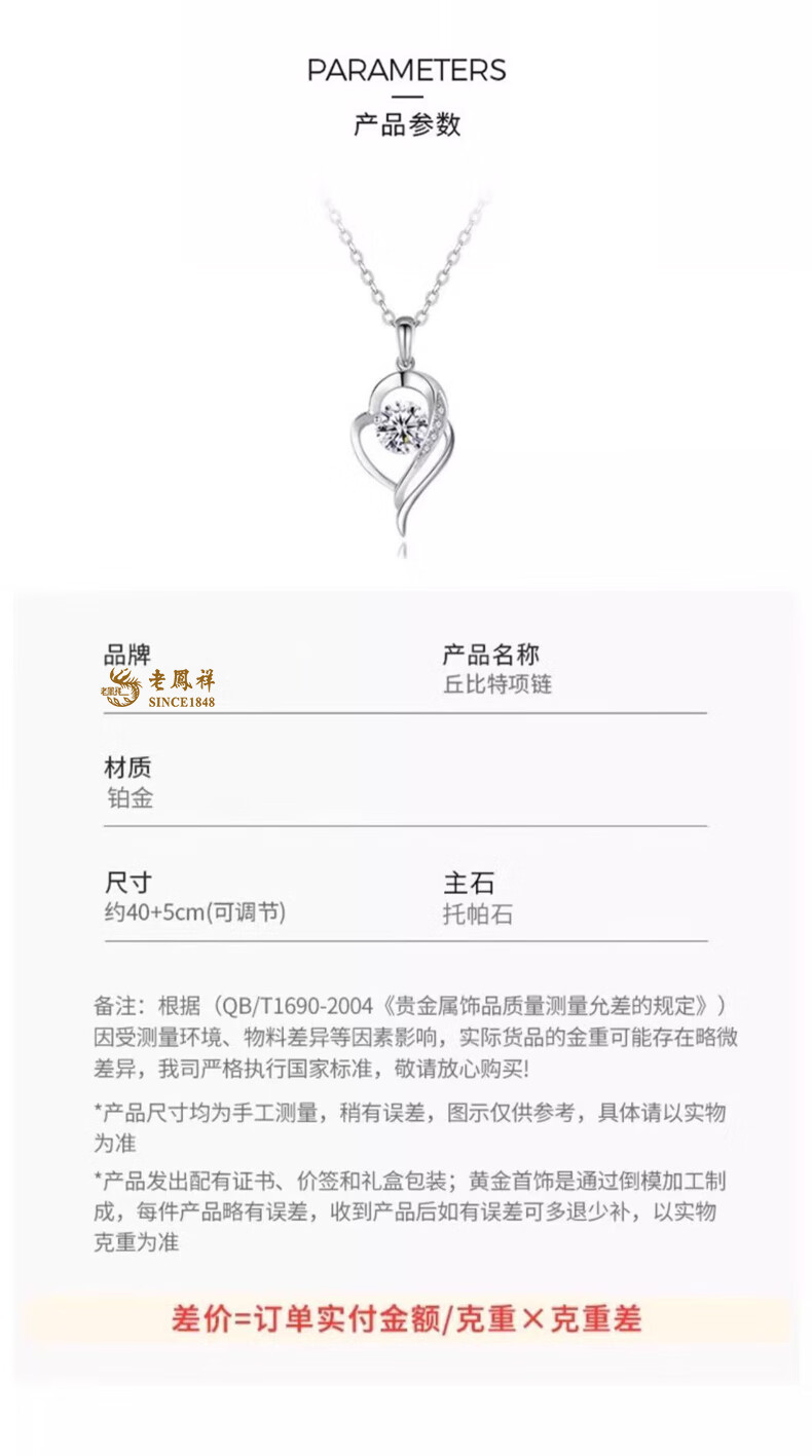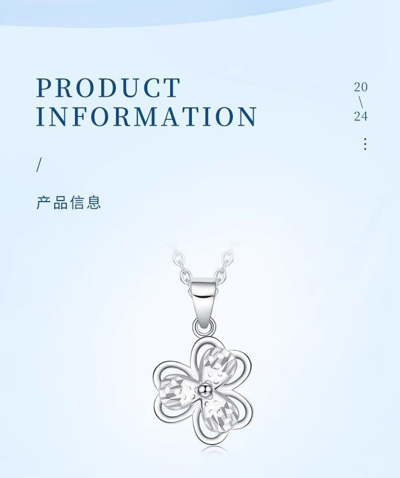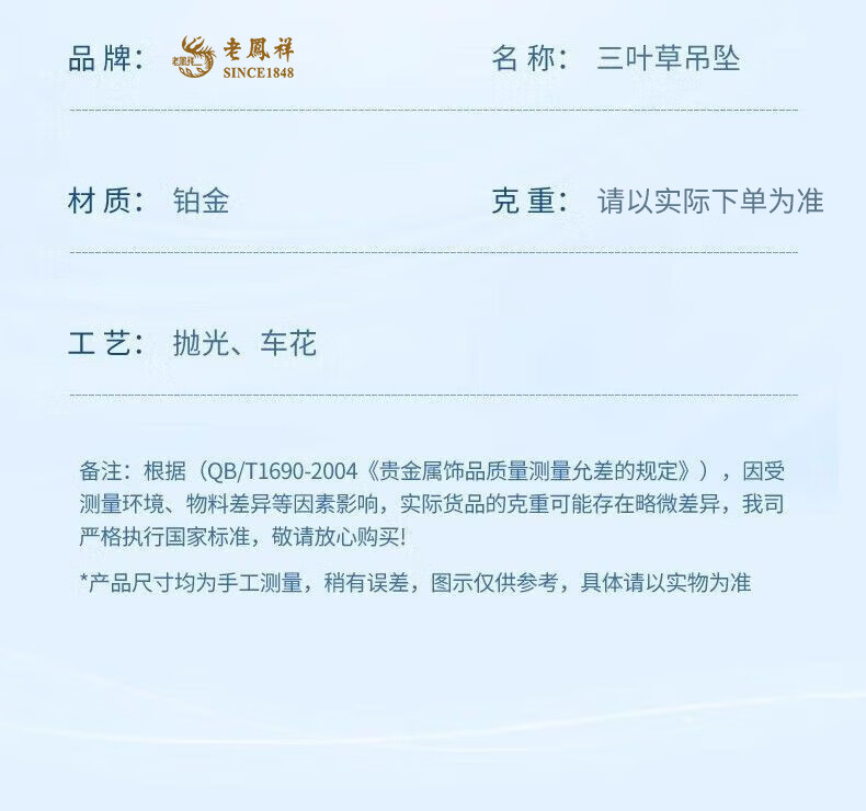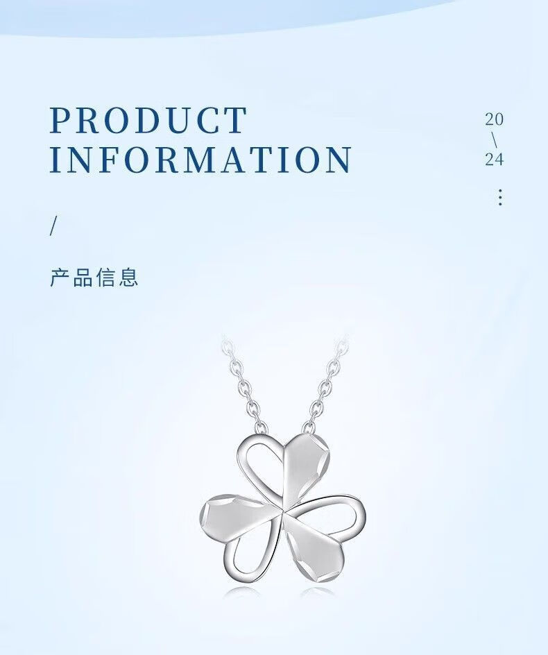 Lao Fengxiang PT950 platinum clover pendant, birthday gift for new wife, Mid-Autumn Festival gift for girlfriend, carousel pendant, about 1.3g, free sterling silver chain