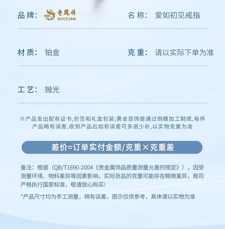 Lao Fengxiang PT950 platinum love like first sight ring new plain ring ring Mid-Autumn Festival birthday gift for girlfriend and wife No. 14 love like first sight platinum ring about 3.2g