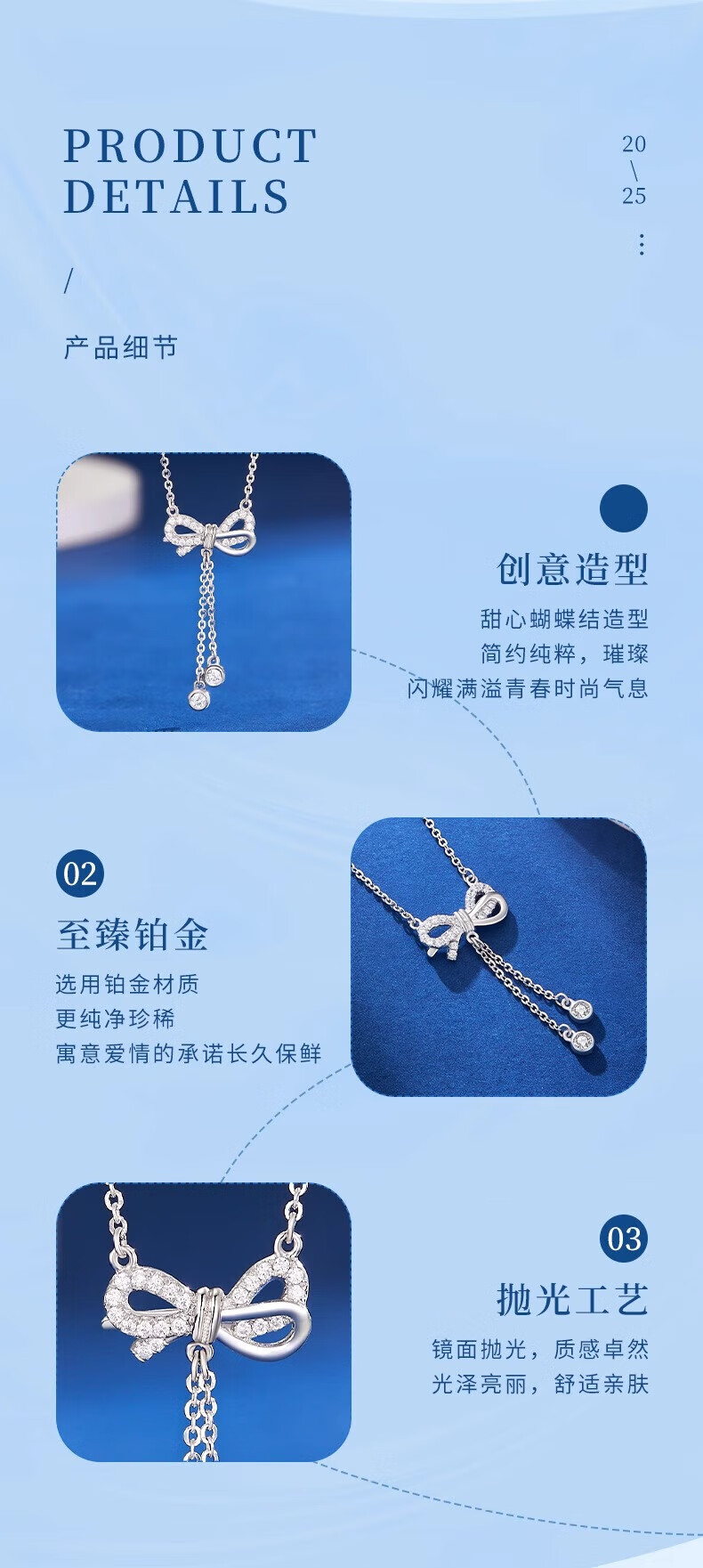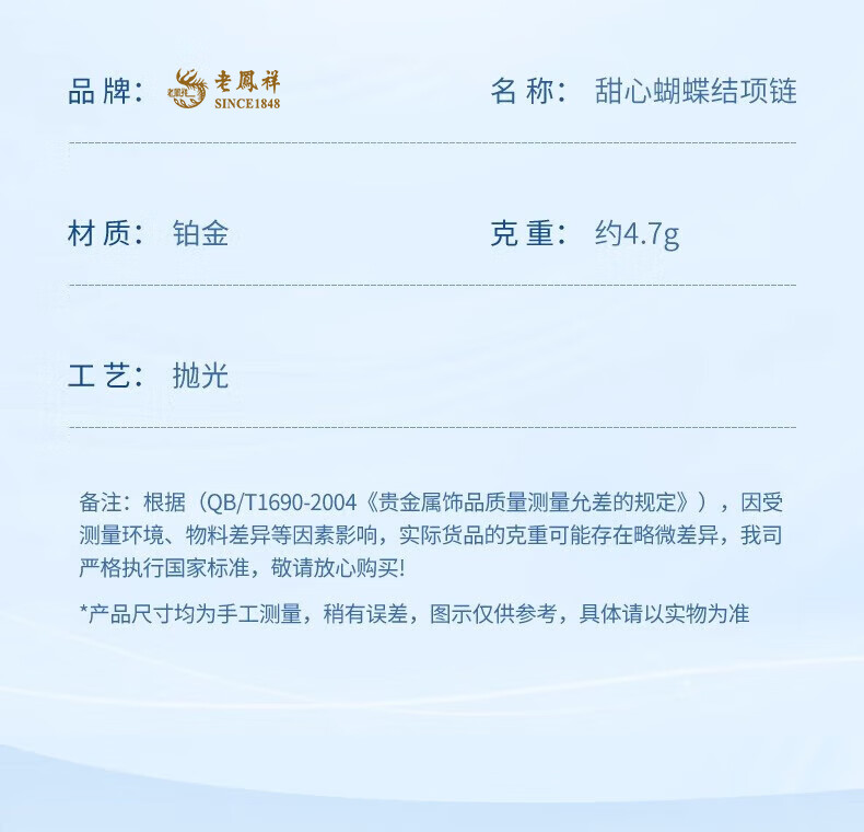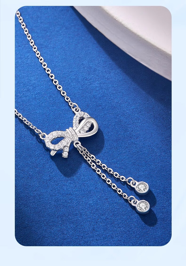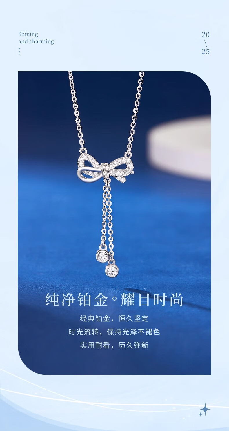 Lao Fengxiang PT950 platinum bow pendant for women pure platinum tassel Mid-Autumn Festival birthday gift for girlfriend and wife PT950 platinum bow necklace about 4.7g brand gift box