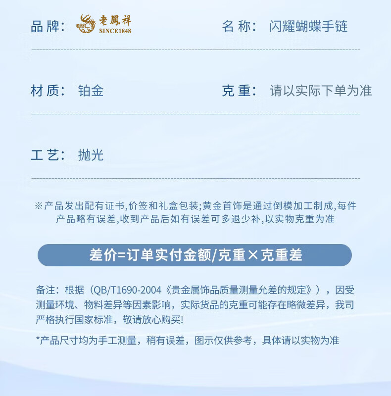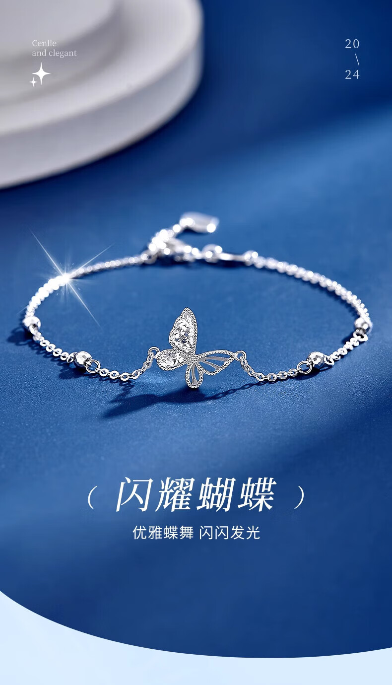 Lao Fengxiang platinum four-leaf clover bracelet for girls, exquisite and luxurious, Valentine's Day birthday gift for girlfriend and wife, butterfly platinum bracelet, about 2.6g