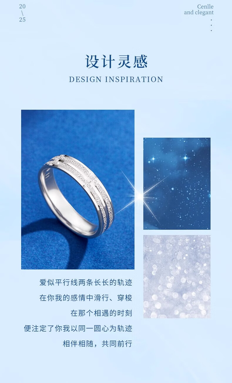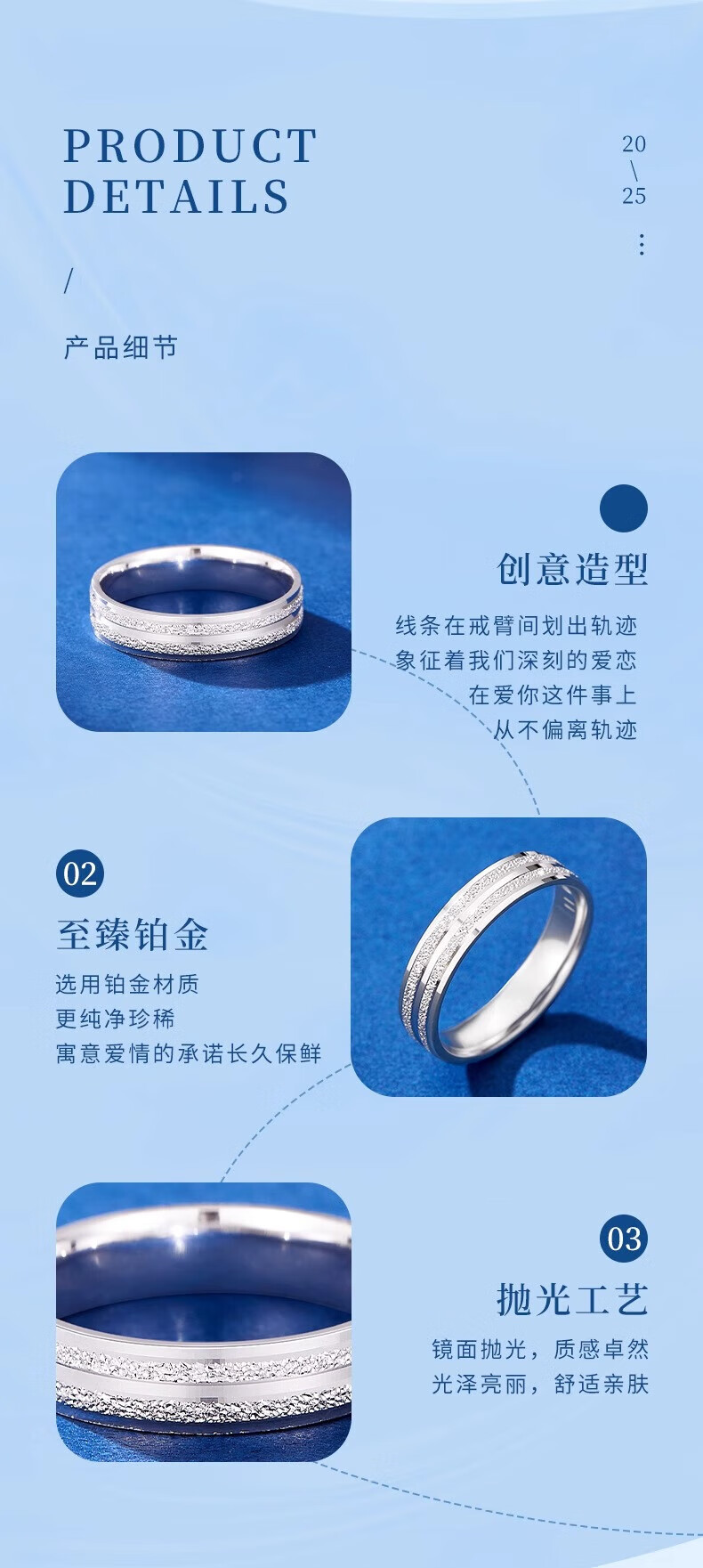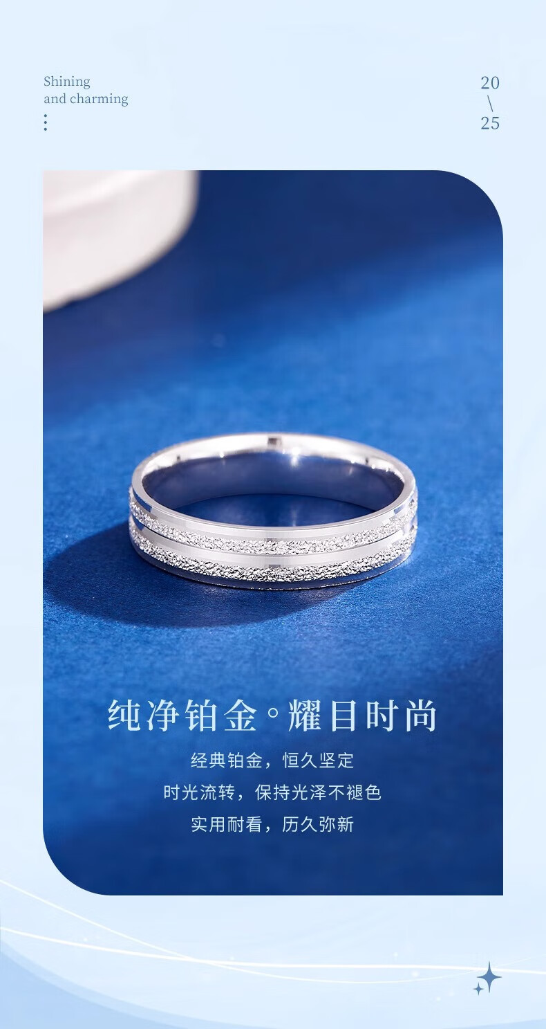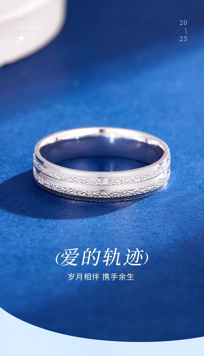 Lao Fengxiang PT950 platinum baby's breath ring ring for men and women, platinum ring anniversary gift for boyfriend and girlfriend, track of love ring No. 11, about 4.1g