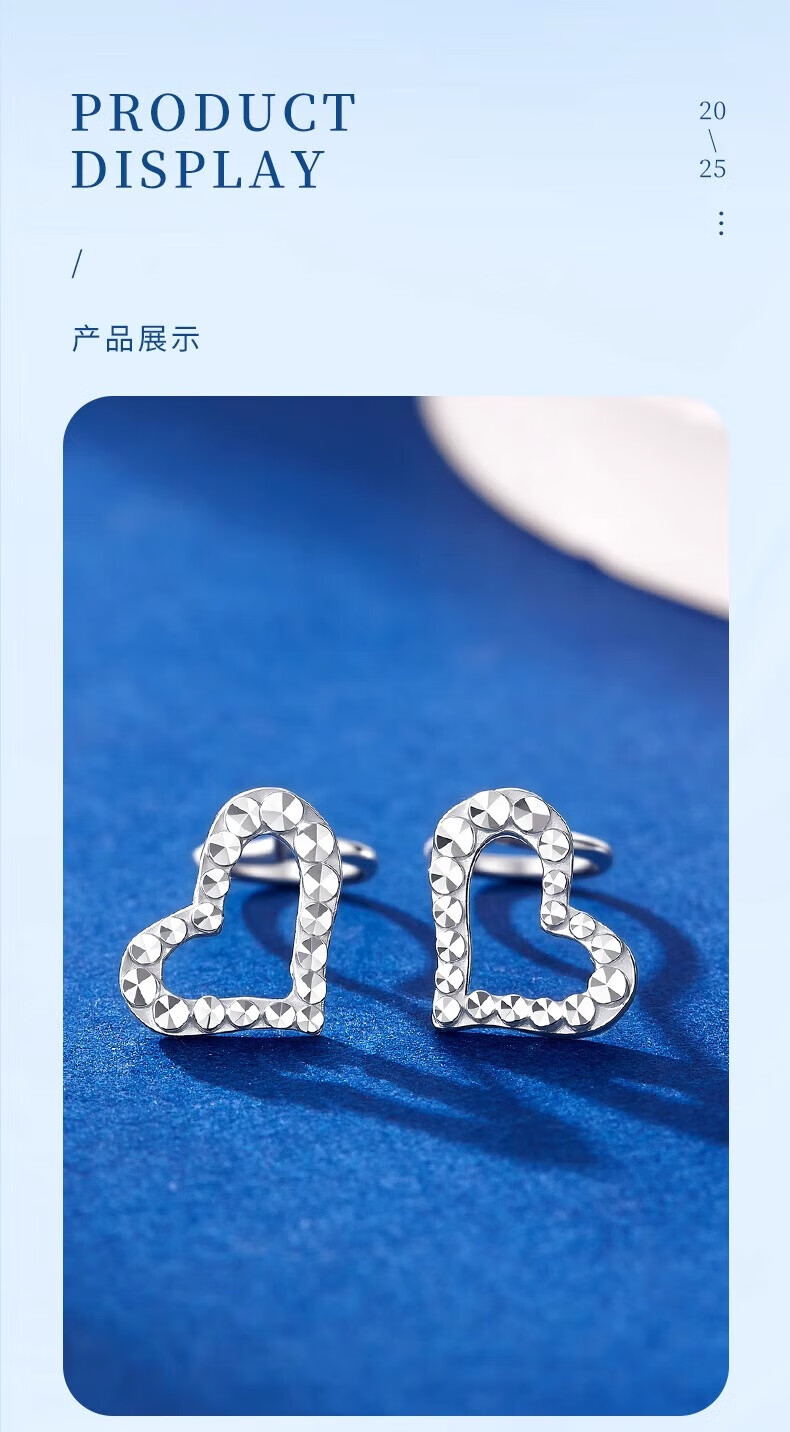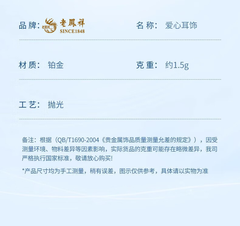 Lao Fengxiang PT950 platinum crushed ice love earrings for women new platinum Mid-Autumn Festival birthday gift for girlfriend and wife PT950 platinum love earrings about 1.5g brand gift box
