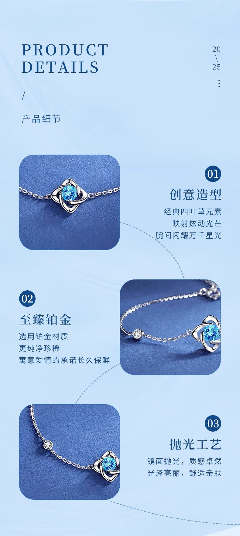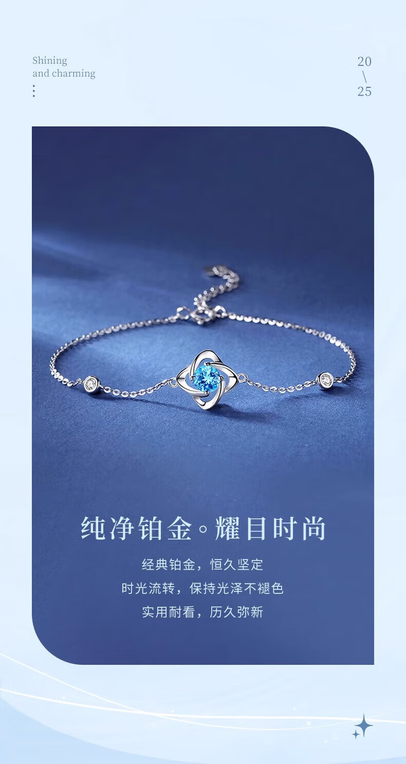 Lao Fengxiang PT950 platinum four-leaf clover bracelet for women new pure platinum Mid-Autumn Festival birthday gift for girlfriend and wife Platinum four-leaf clover bracelet about 1.9g brand gift box