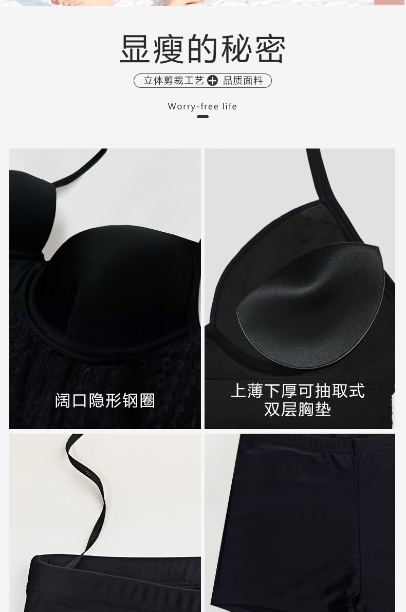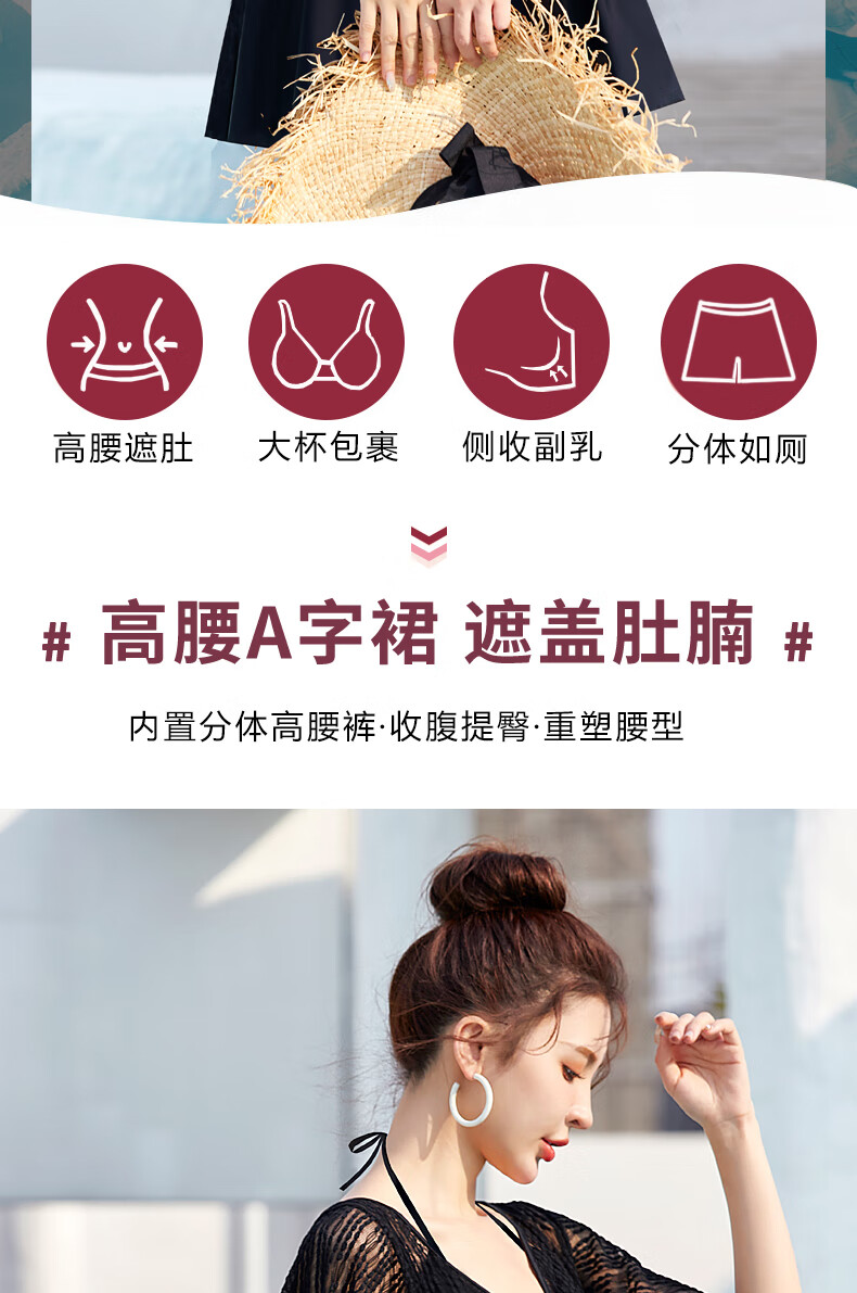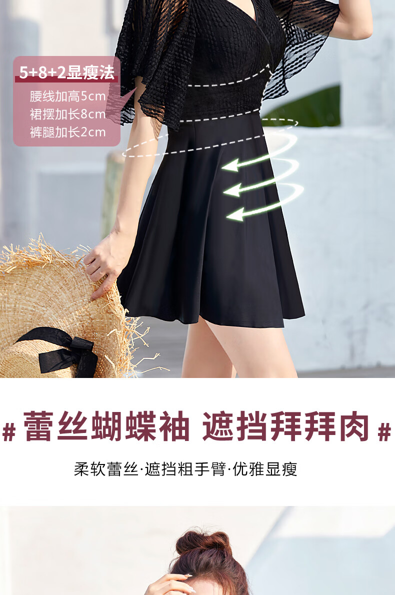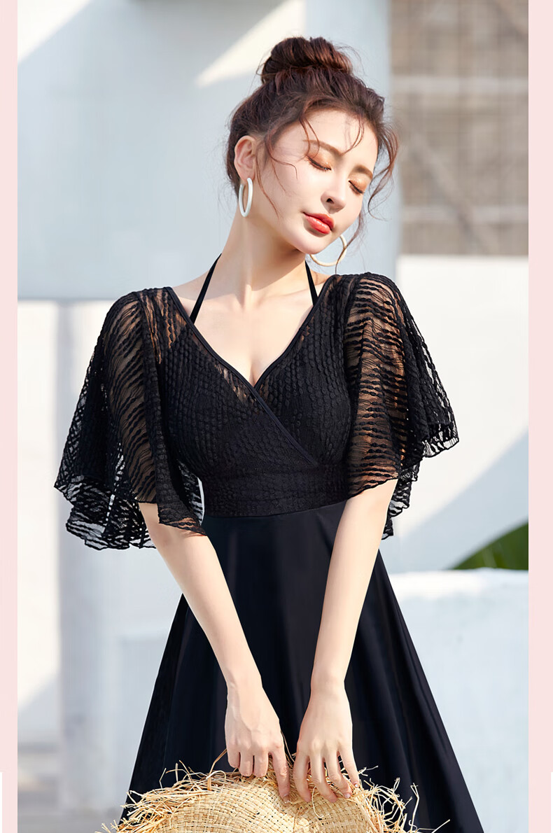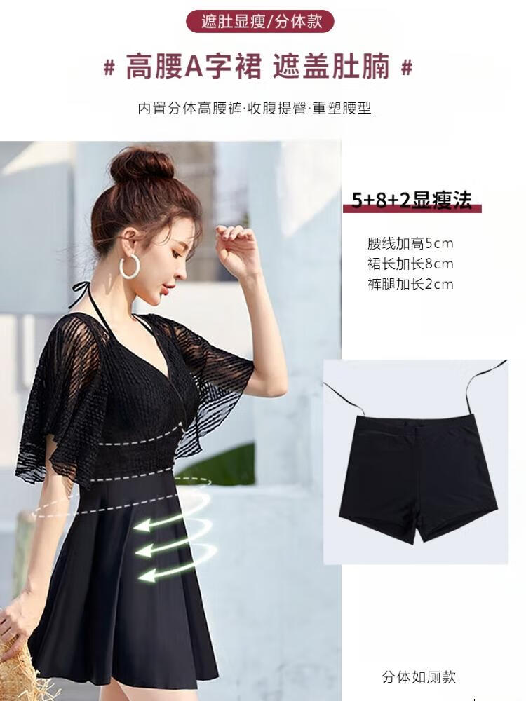 Yuji Morikami Swimsuit Women's Large Size Split Hot Spring Conservative Gathering Style Slightly Fat Covering Flesh Looks Thin Seaside Beach Vacation Swimsuit Large Swing Sleeves Swimsuit Black One Size