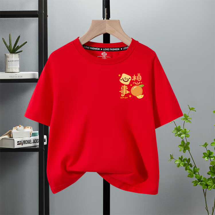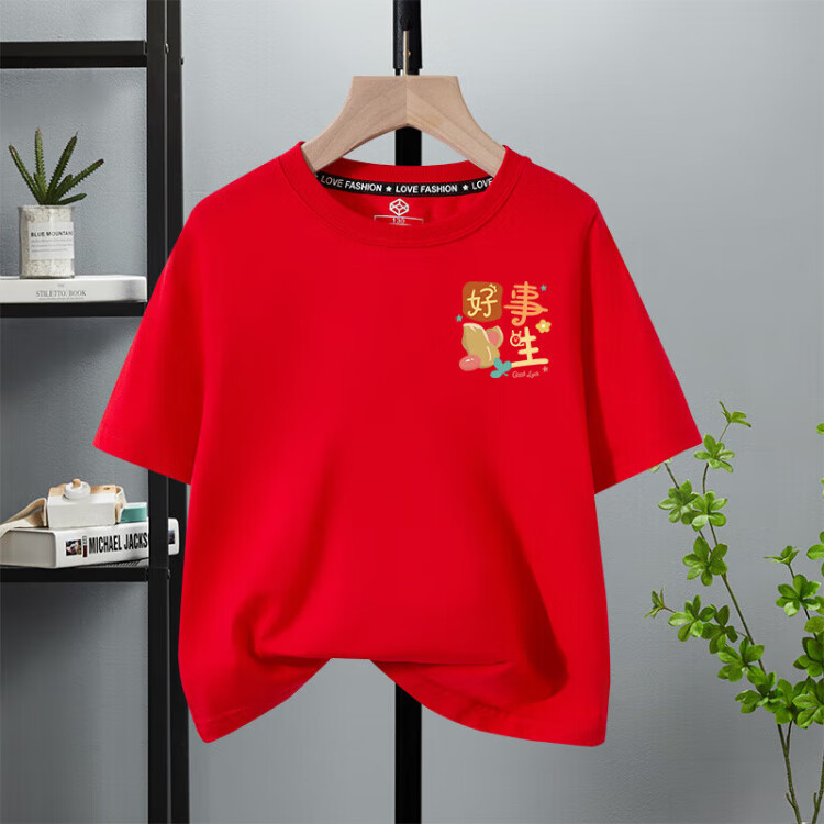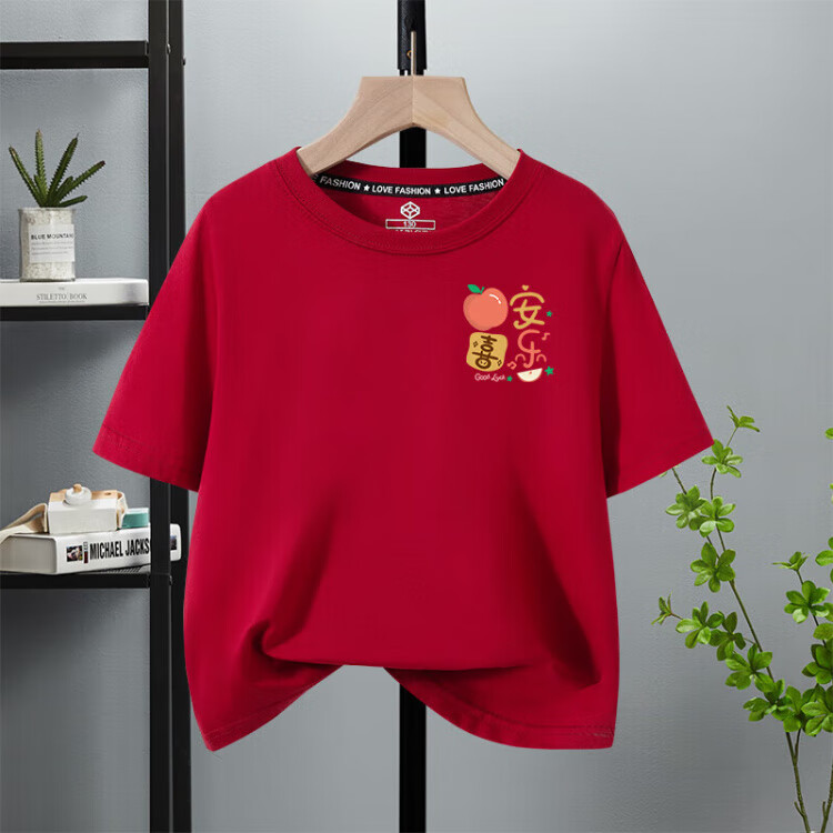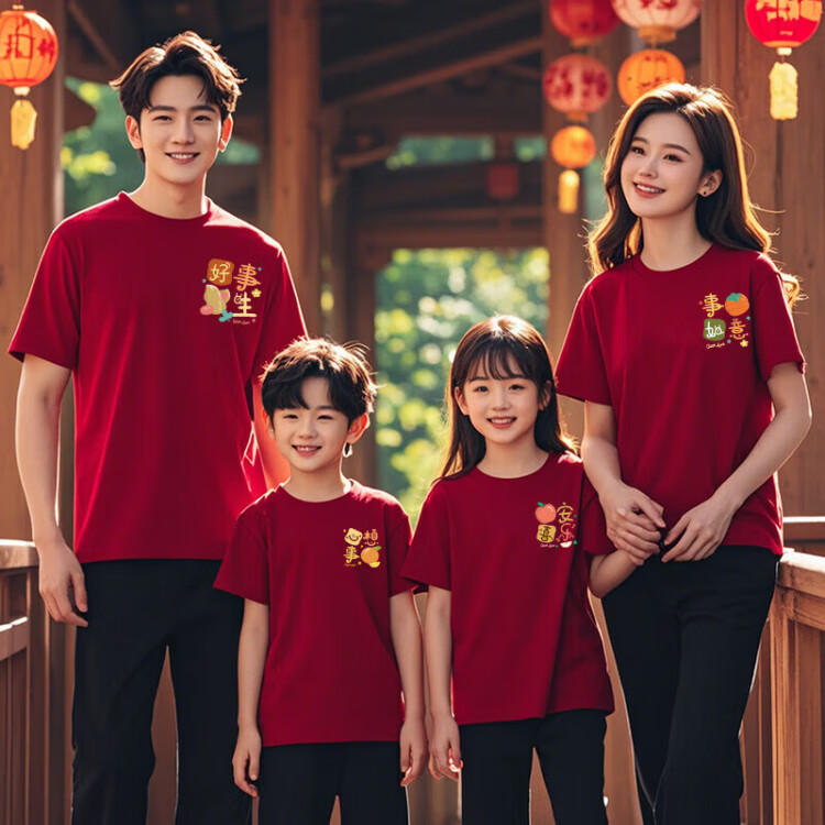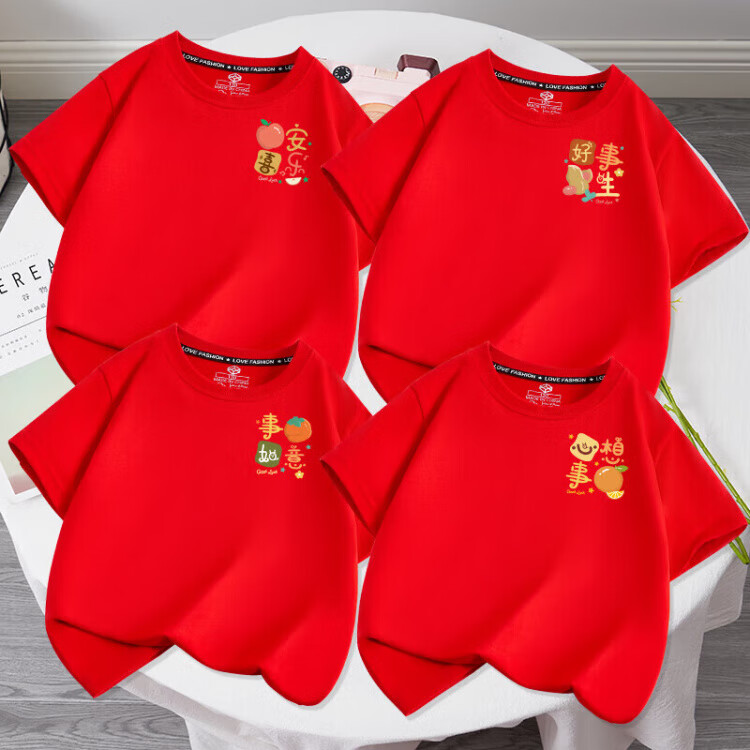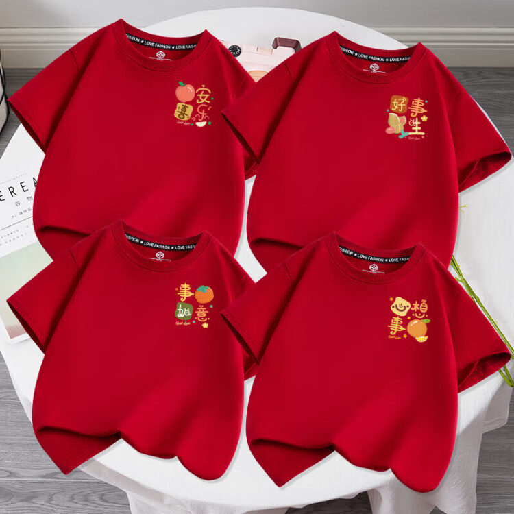 G.duck 2025 family portrait red parent-child wear short-sleeved T-shirt family of three and four family wear peace and joy summer red chest logo fruit snake peace and joy 185 model 170Jin Jin equals about 0.5 kg