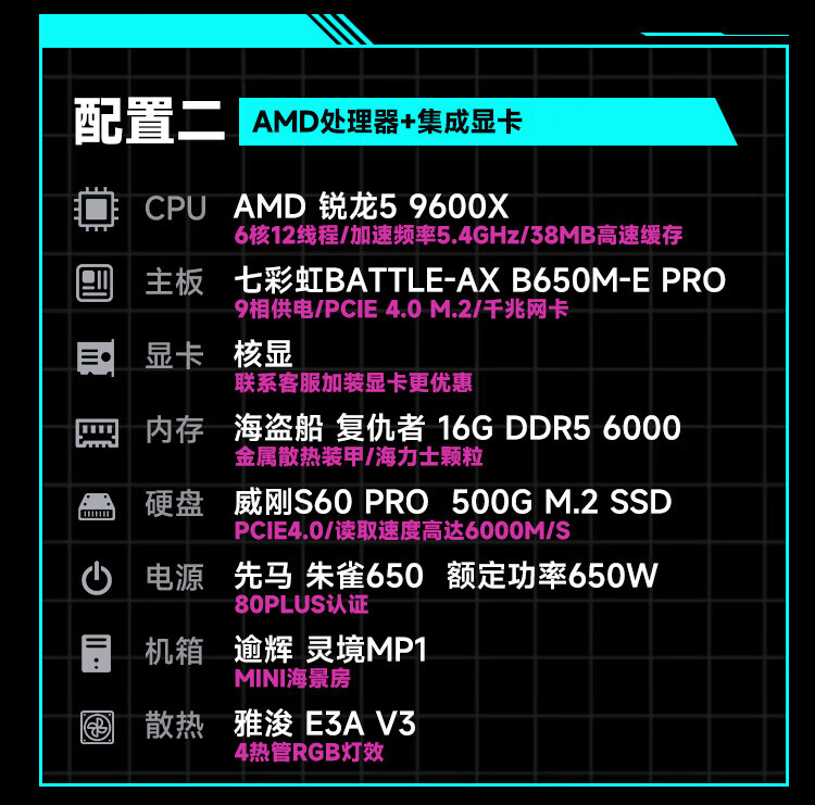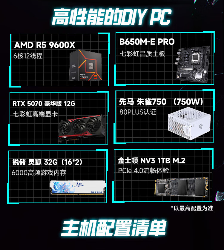 Colorful AMD Ryzen 9600X/9800X 3D host RTX5070/RTX5060 Rendering design office computer E-sports game live broadcast DIY desktop assembly machine Sea view room configuration 4 9600X/RTX5060/16G