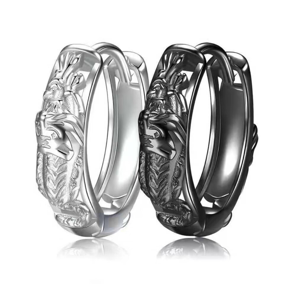 Men's Lucky Pixiu Earrings, Handsome, Trendy and Personalized Earrings, Men's Student Party Single Earrings, Black Pixiu Earrings (Pair)
