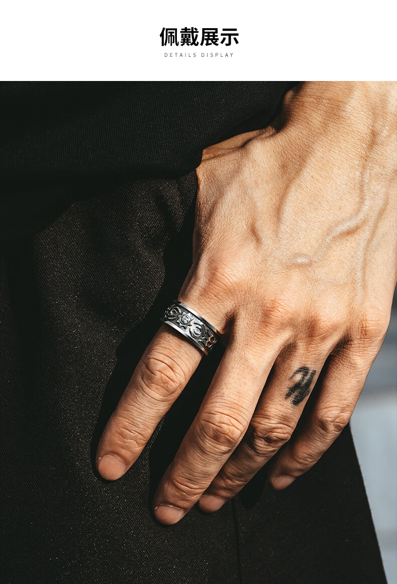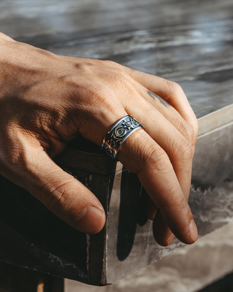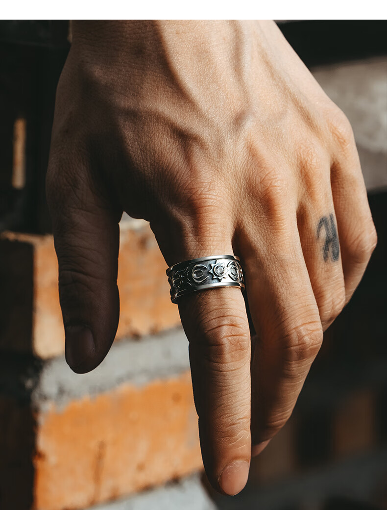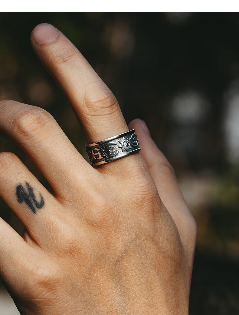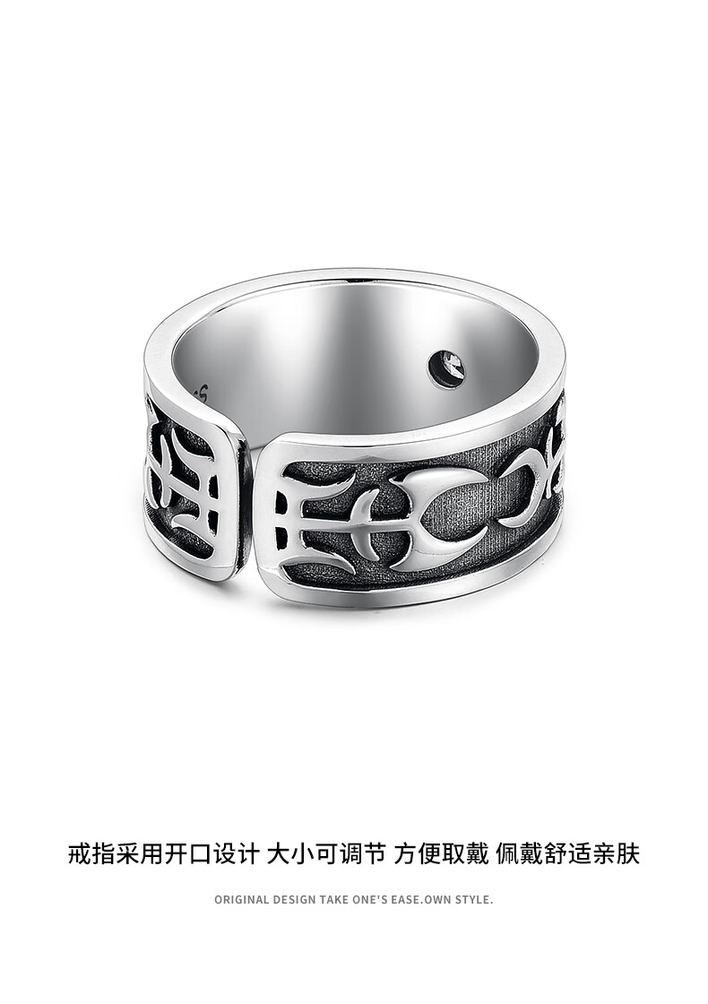 Mingyang Decorative Sea 925 Silver Sun Totem Ring Men's Ring Trendy Retro Fashion Personality Versatile Adjustable Open Ring Mido 10# (Suitable for Hong Kong Size 22-24)