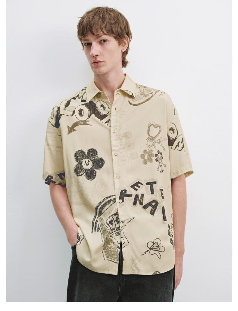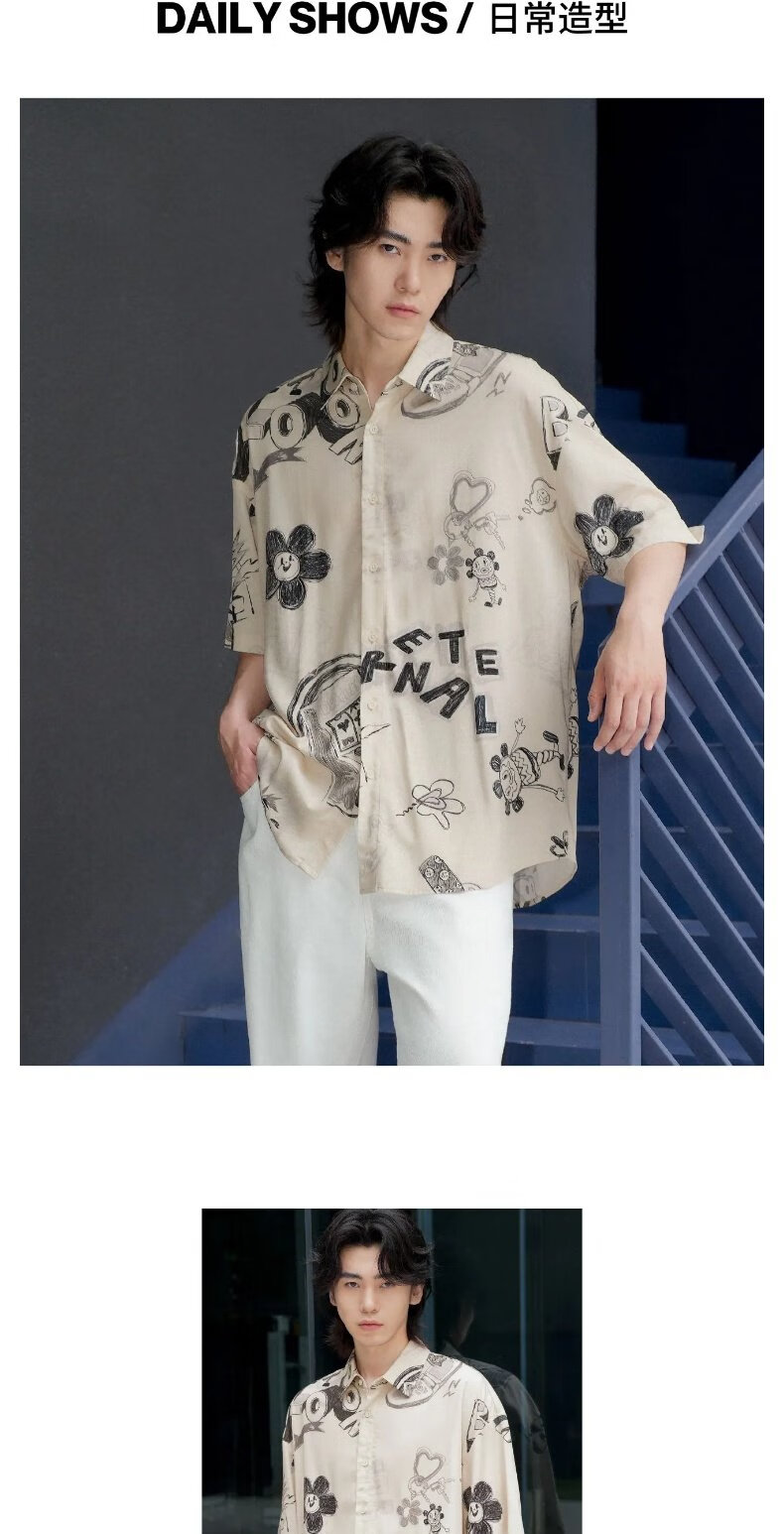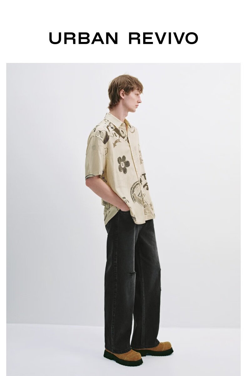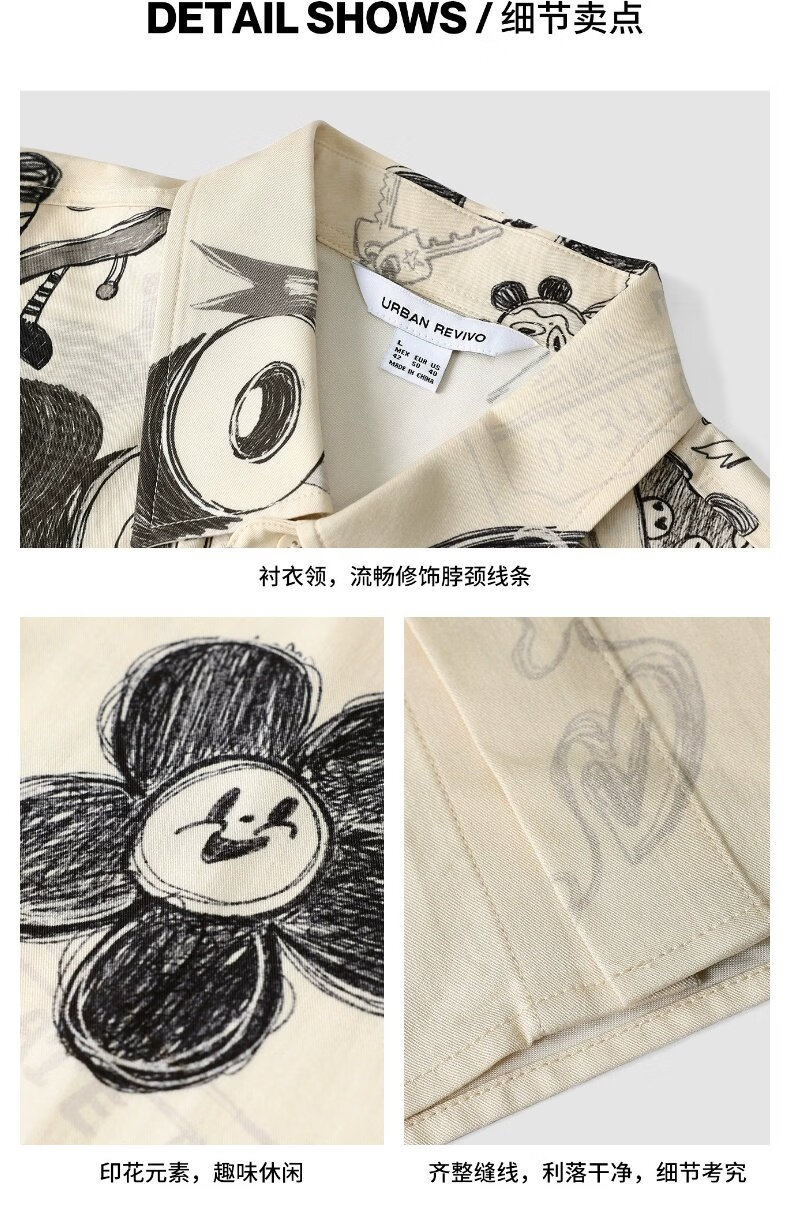 UR summer new men's random printed super loose cardigan shirt UMV250059 multicolor S (XS-S)