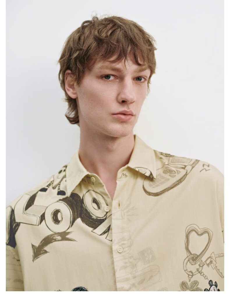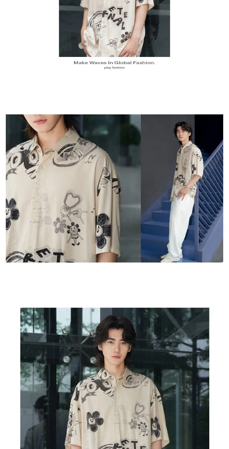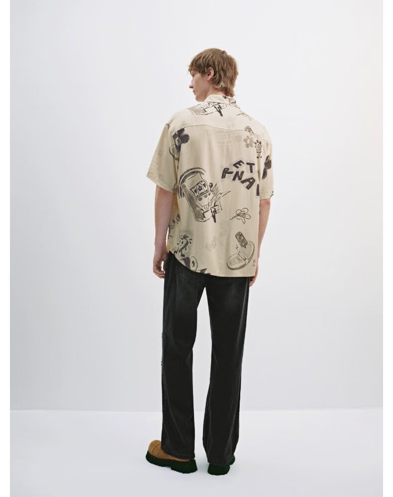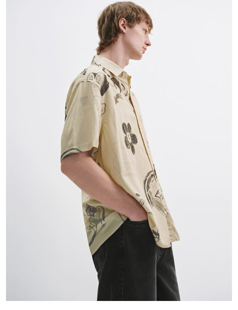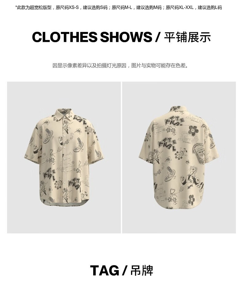 UR summer new men's random printed super loose cardigan shirt UMV250059 multicolor S (XS-S)