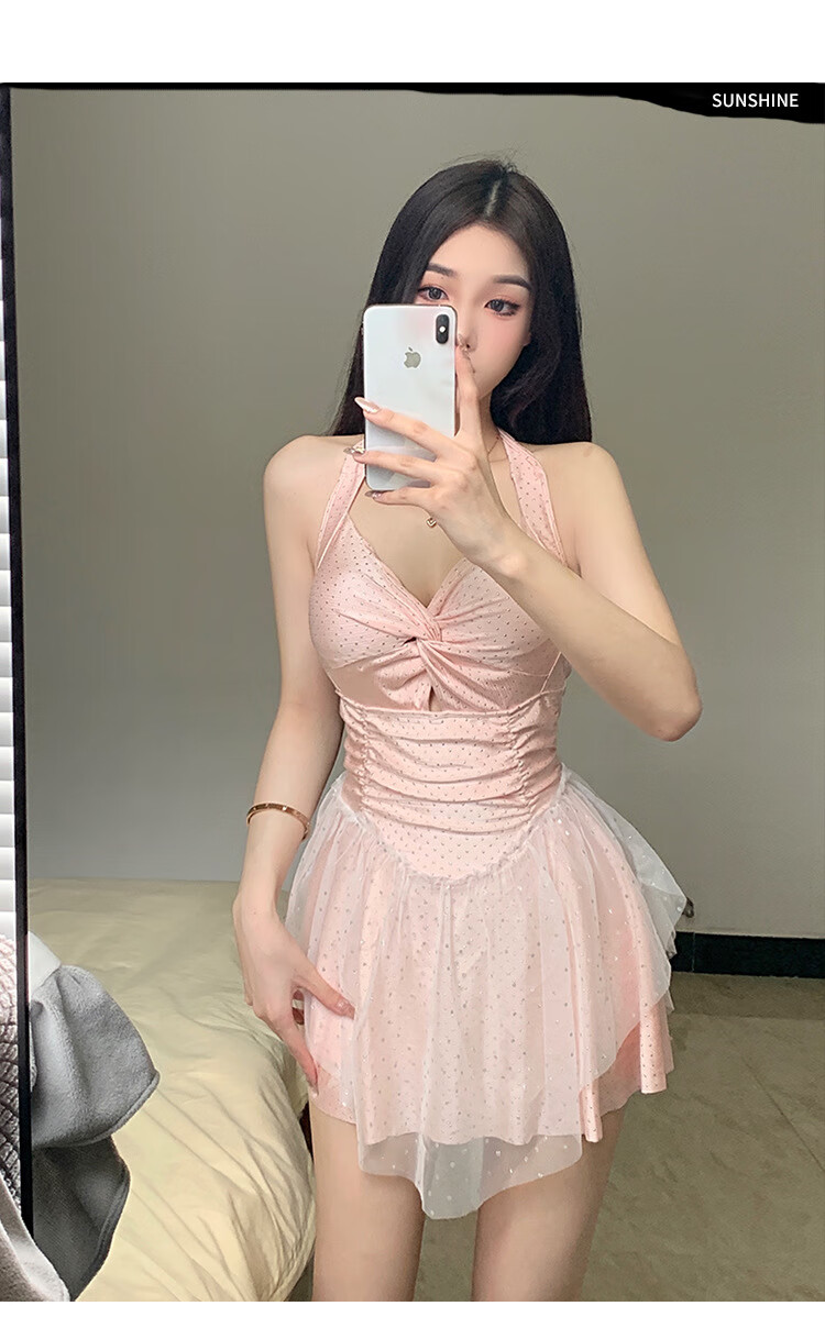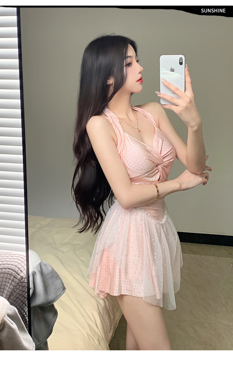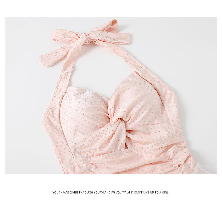 2025 new style halter neck swimsuit for women, high-end one-piece covering belly, slimming, pure desire student, sweet girl, beach vacation, pink L, recommended 95-105 Jin Jin is equal to 0.5 kg