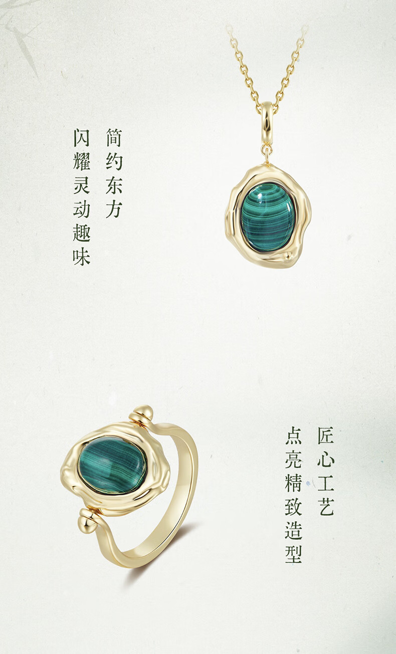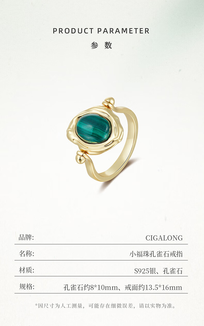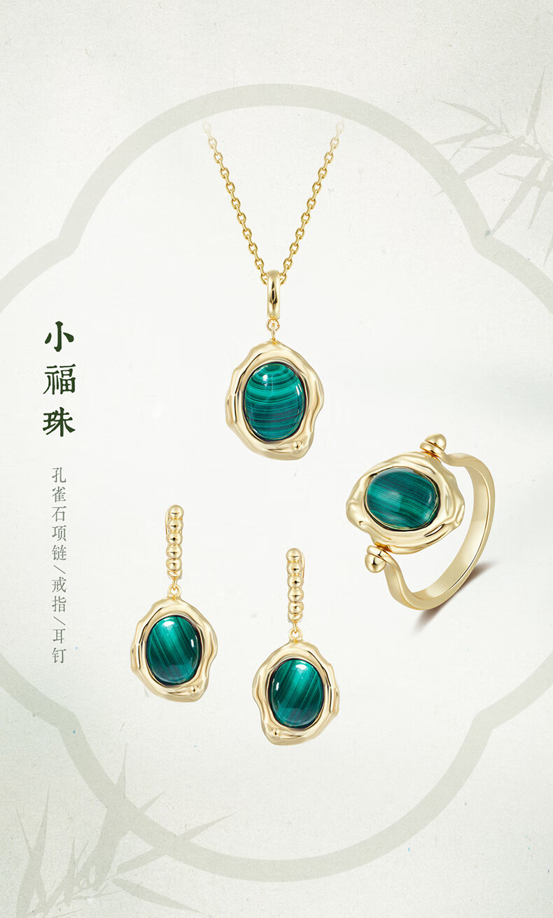CIGA LONG small lucky beads malachite ring earrings necklace S925 Oriental leisurely new Chinese style jewelry small lucky beads malachite necklace