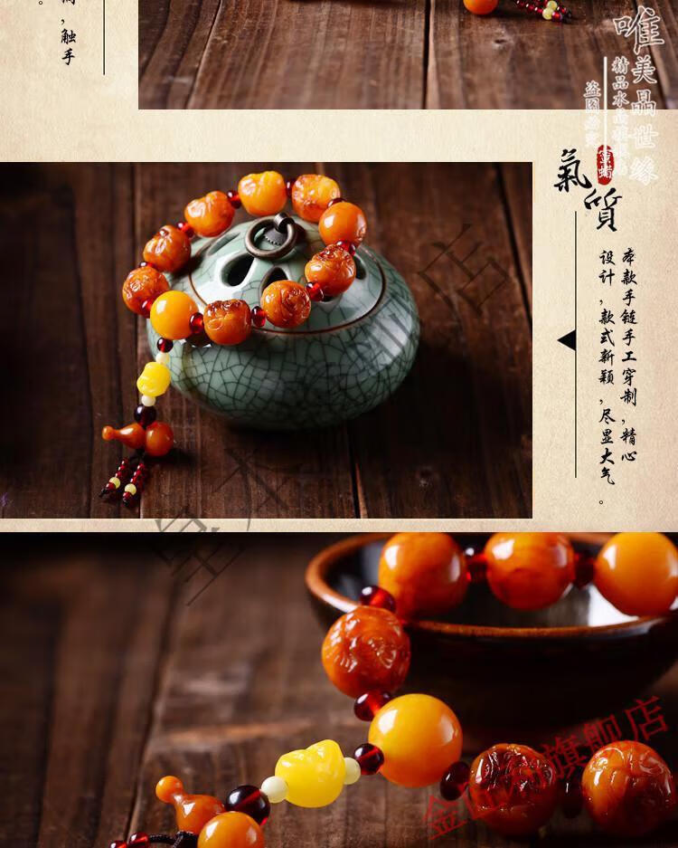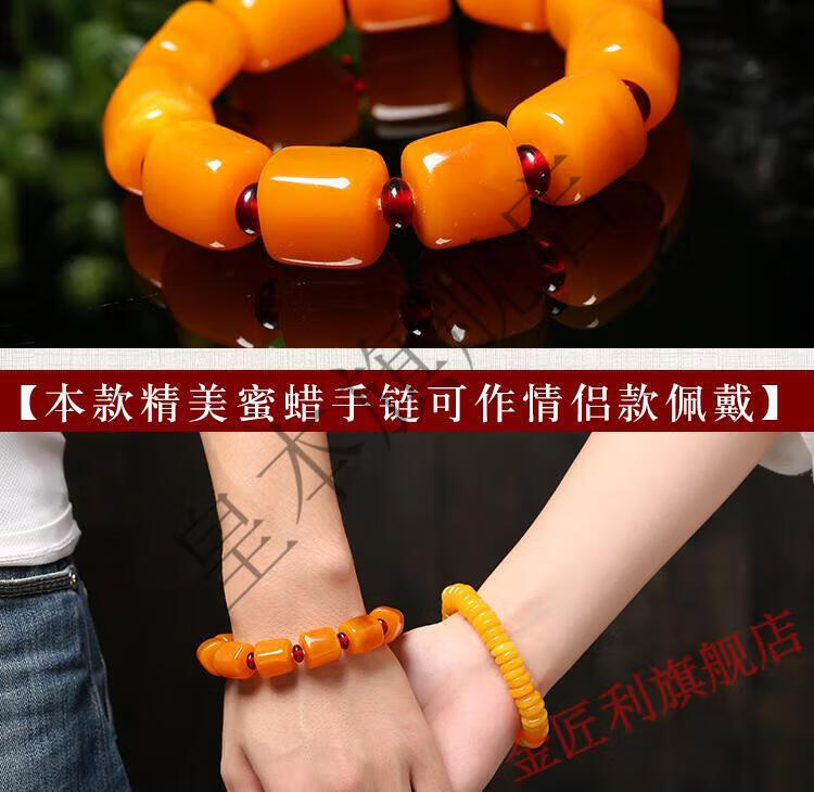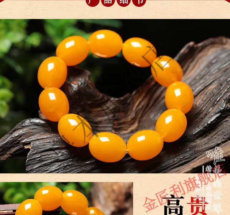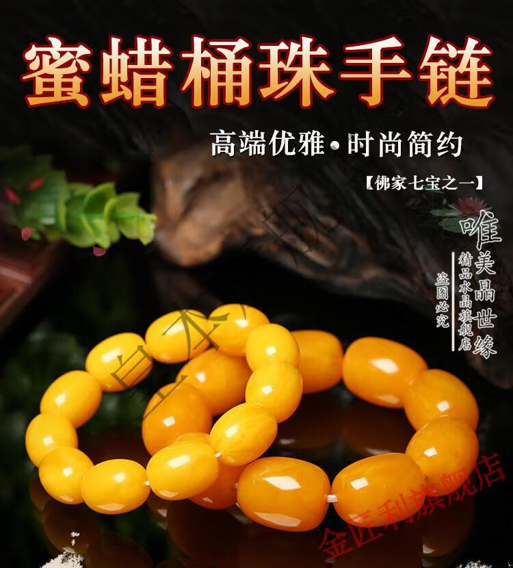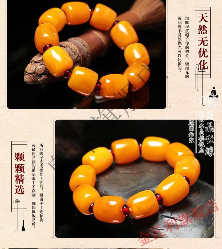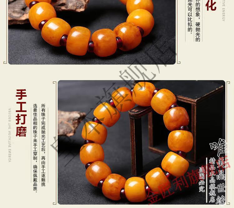 Jinshitong Natural Polish Old Beeswax Bracelet Men's Original Chicken Oil Yellow Amber Bracelet Women's Bucket Beads Style Seven (Men's and Women's Date 0 Carat Beads) Beads