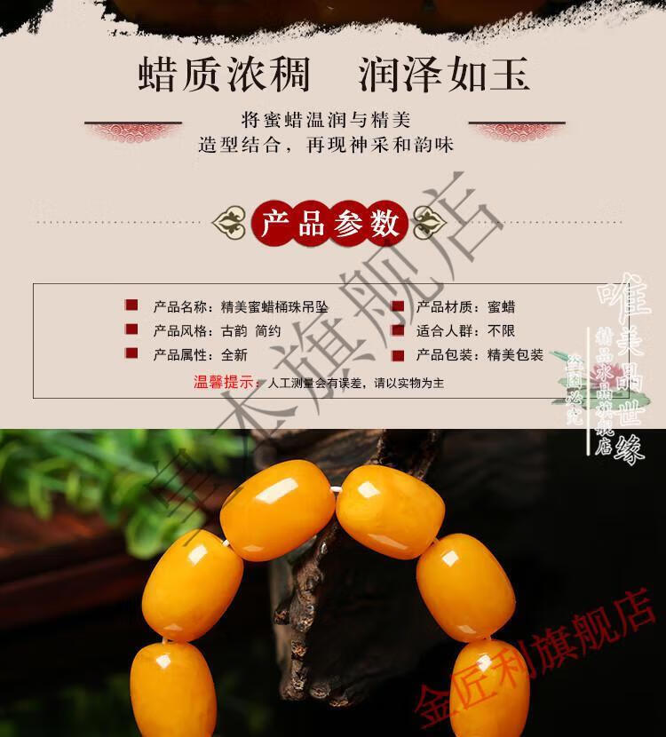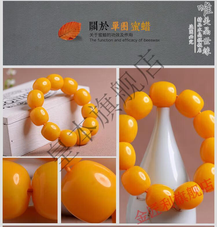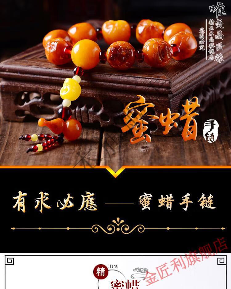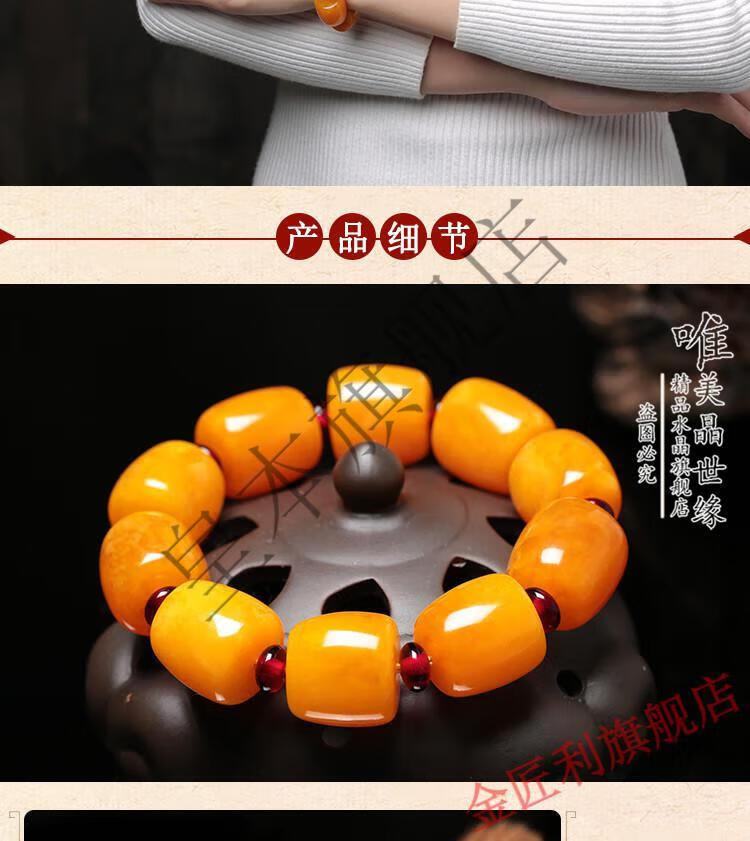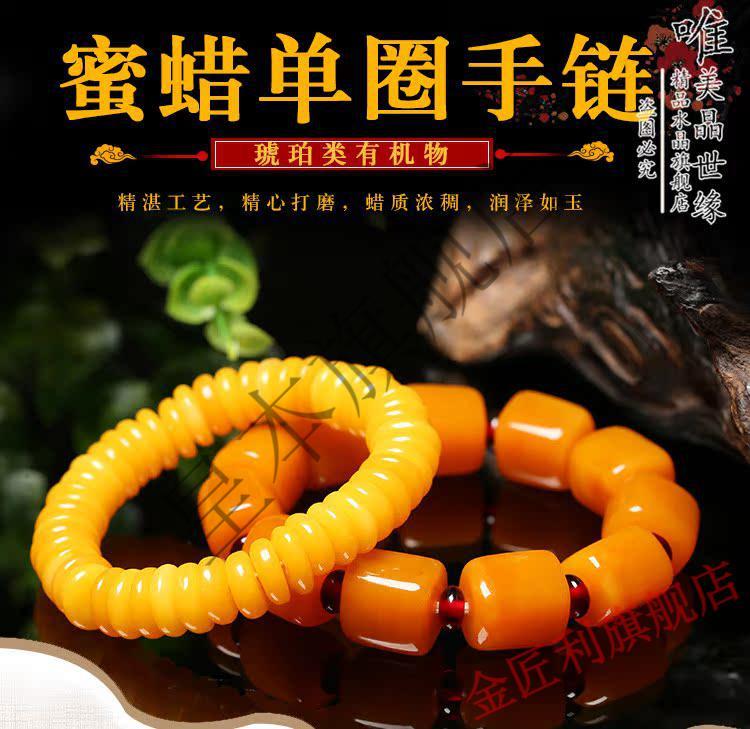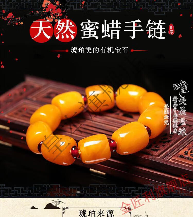 Jinshitong Natural Polish Old Beeswax Bracelet Men's Original Chicken Oil Yellow Amber Bracelet Women's Bucket Beads Style Seven (Men's and Women's Date 0 Carat Beads) Beads
