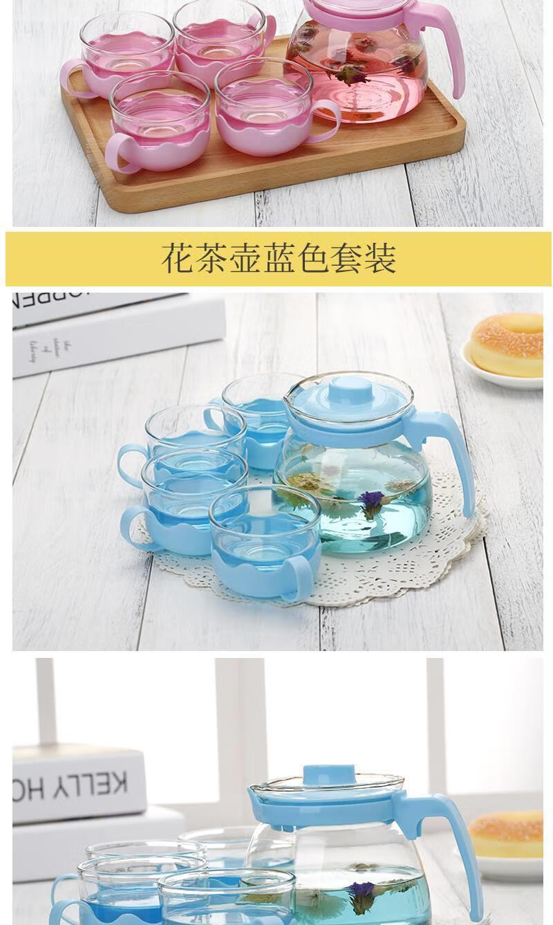 Flower teapot set teapot kettle filter thickened hot water resistant cup tea set durable household tea set elegant black one pot four cups