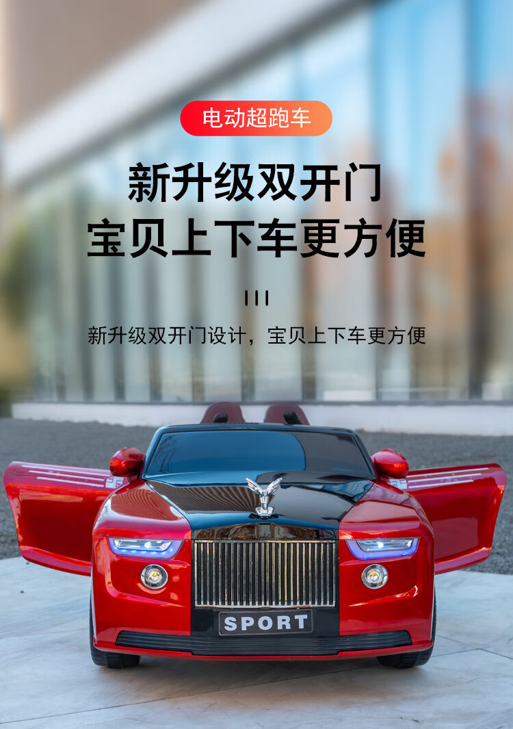 LNGA LANDGRE Rolls-Royce baby electric car four-wheeled baby car that can sit on a child's remote control charging toy car stroller white dual drive + Chaowei 12V7A + remote control + leather seat